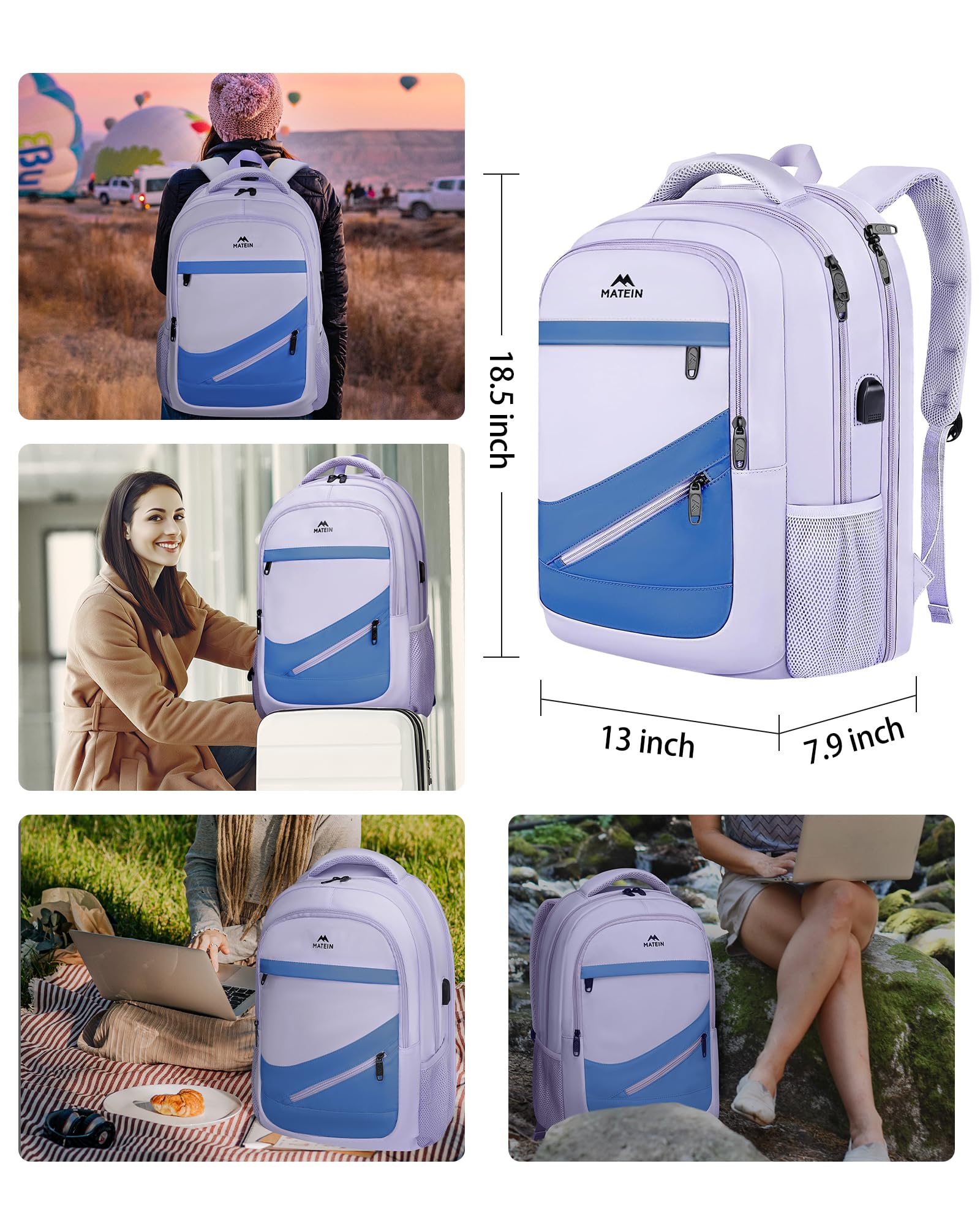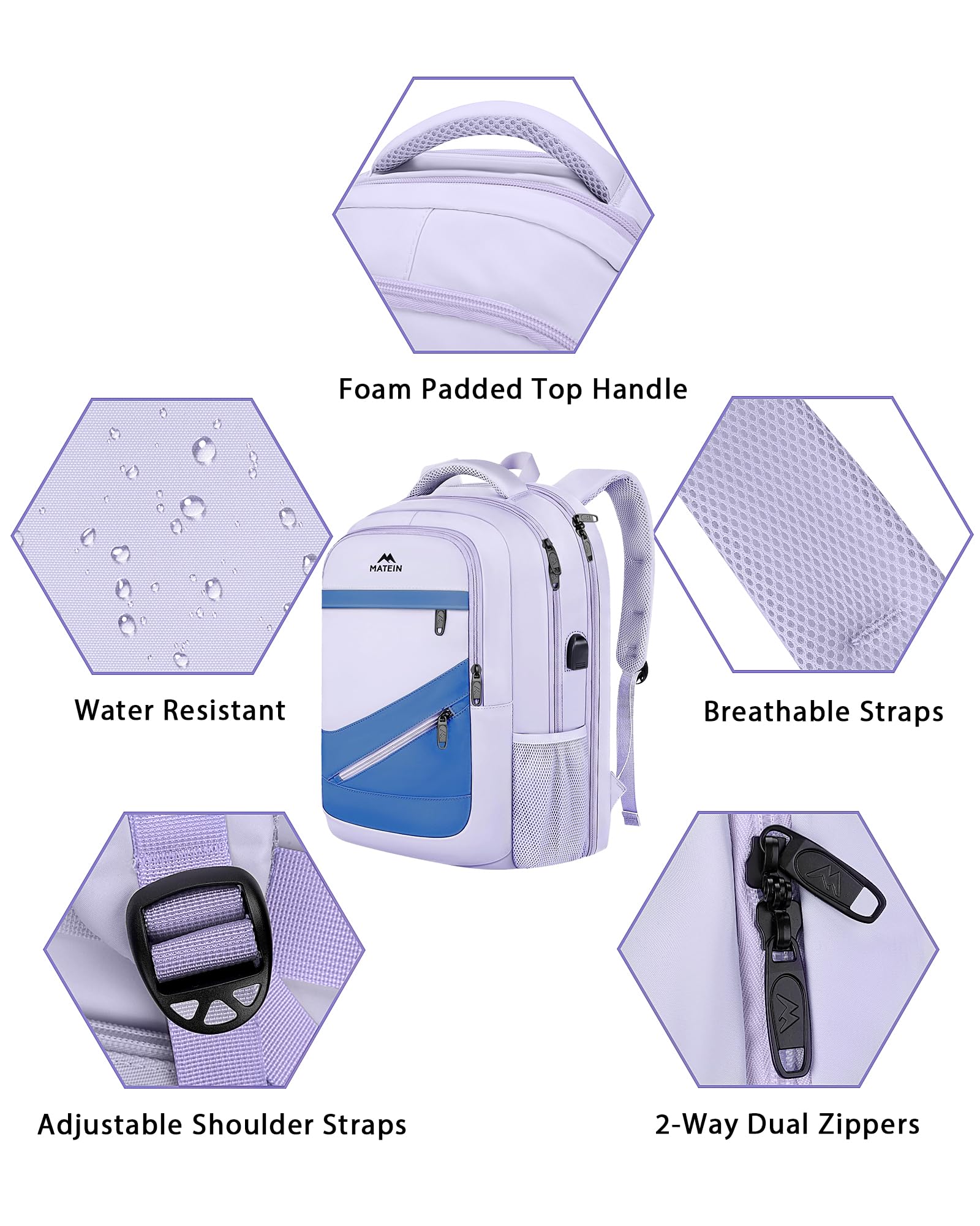 TSA Approved Backpack: At airline checkpoint, the travel backpack tsa approved can unfold to 90-180 degrees, ensures a convenient and quick TSA scan. The 17 in laptop compartment helps you pass through airport security quickly and save your time. Large Capacity and Roomy Compartments. Separate Laptop Compartment: Fits under 17.3 inch laptops or computers. Main Compartment: Suitable for college work commute clothes, files, electronics accessories. Front Compartment: For phone, earphones, wallet, passport, keys, notebooks, pens. Side Pockets: fit water bottles, umbrella. Specifications: Travel laptop backpack for women dimensions: 18.5" x 13" x 7.9" (47 x 33 x 20 cm), Weight: 1.87 LBS (0.85 kg), Capacity: 30 Liters, Fabric: water resistant 600D polyester. Backpack for women Style: business travel, office work, college school. Laptop backpack large capacity occasions: business trip, working commuter, short trip, daily casual use, college school, traveling. Large back pack carry on size: Fit overhead bin. Luggage Strap: large multi-pockets bag for travel features a luggage sleeve on breathable padded back. Its sturdy handle and fits on the suitcase neatly for easy mobility. Padded Shoulder Straps: Adjustable straps and breathable back pannel of the laptop backpack for women 17 inch, less burden on shoulder and back when on the go. The stylish fashion large backpack is suitable for daily use, great for vacation traveling and outdoor activities. Great gifts choice for thanks giving, christmas new year birthday gifts and functional present