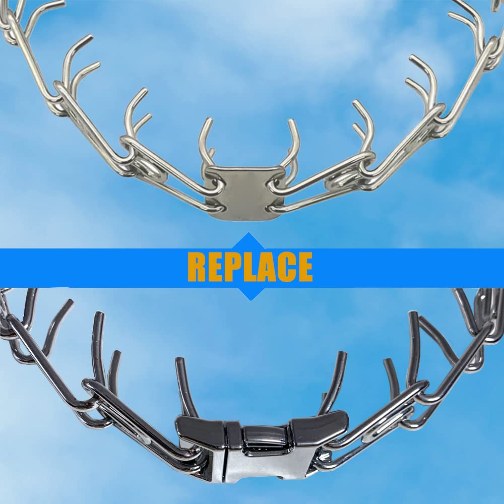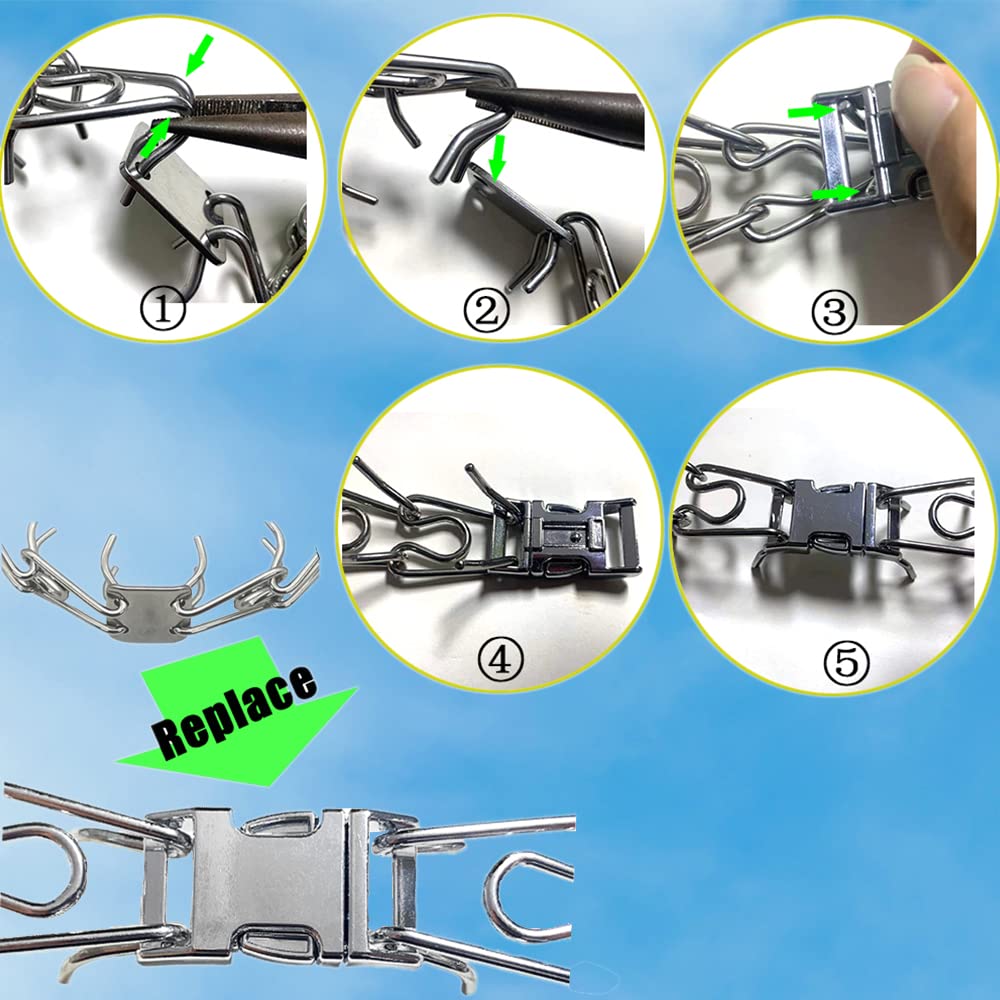 ☑️ SIMPLE INSTALLATION⫸ Just use pliers to remove the front steel sheet of the dog collar, then clamp the link with pliers, install the snap, and the installation is complete. This way you get a quick release dog collar.