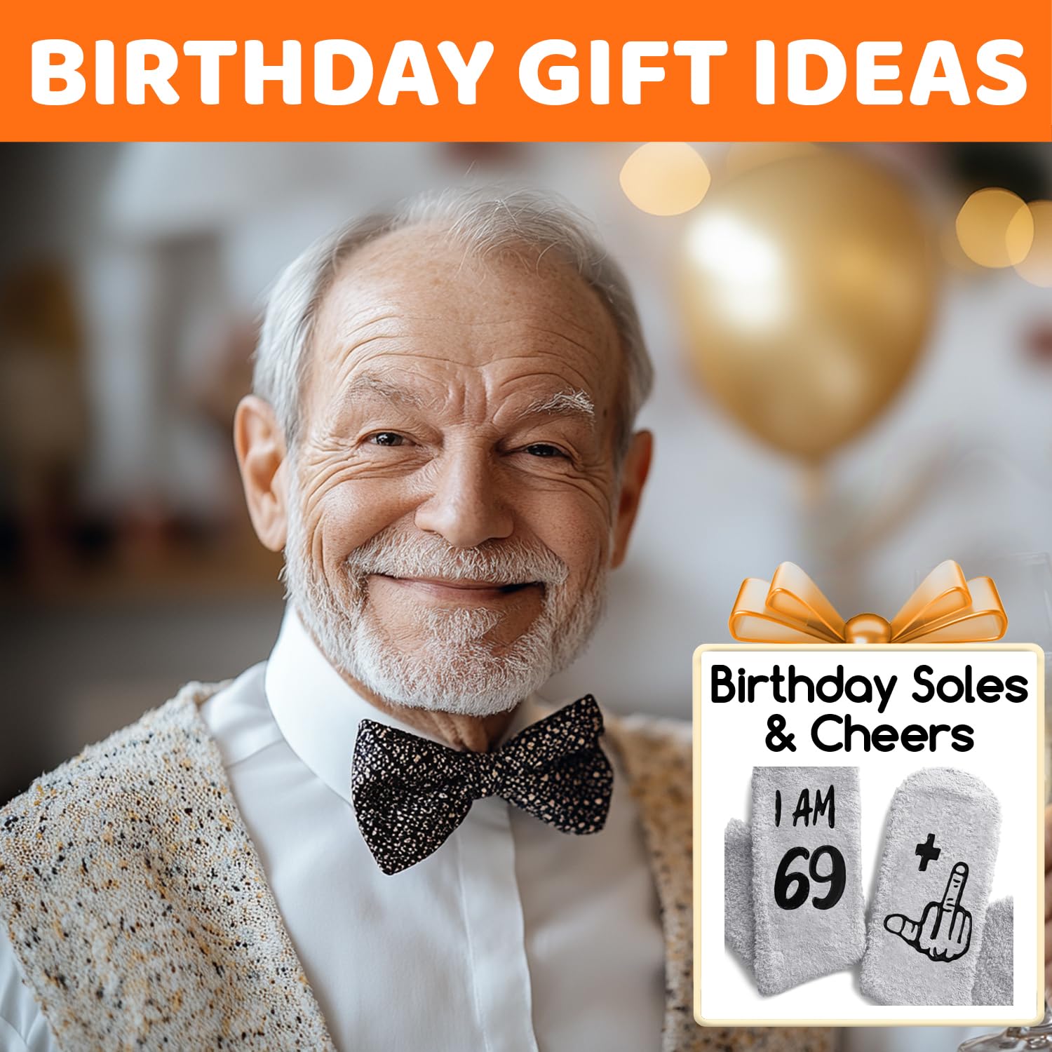 70TH BIRTHDAY GIFT IDEAS: Say it with socks - "I AM 69+1." These are suitable for any holiday gifts, such as Birthday gifts, Christmas gifts, or White Elephant gifts.