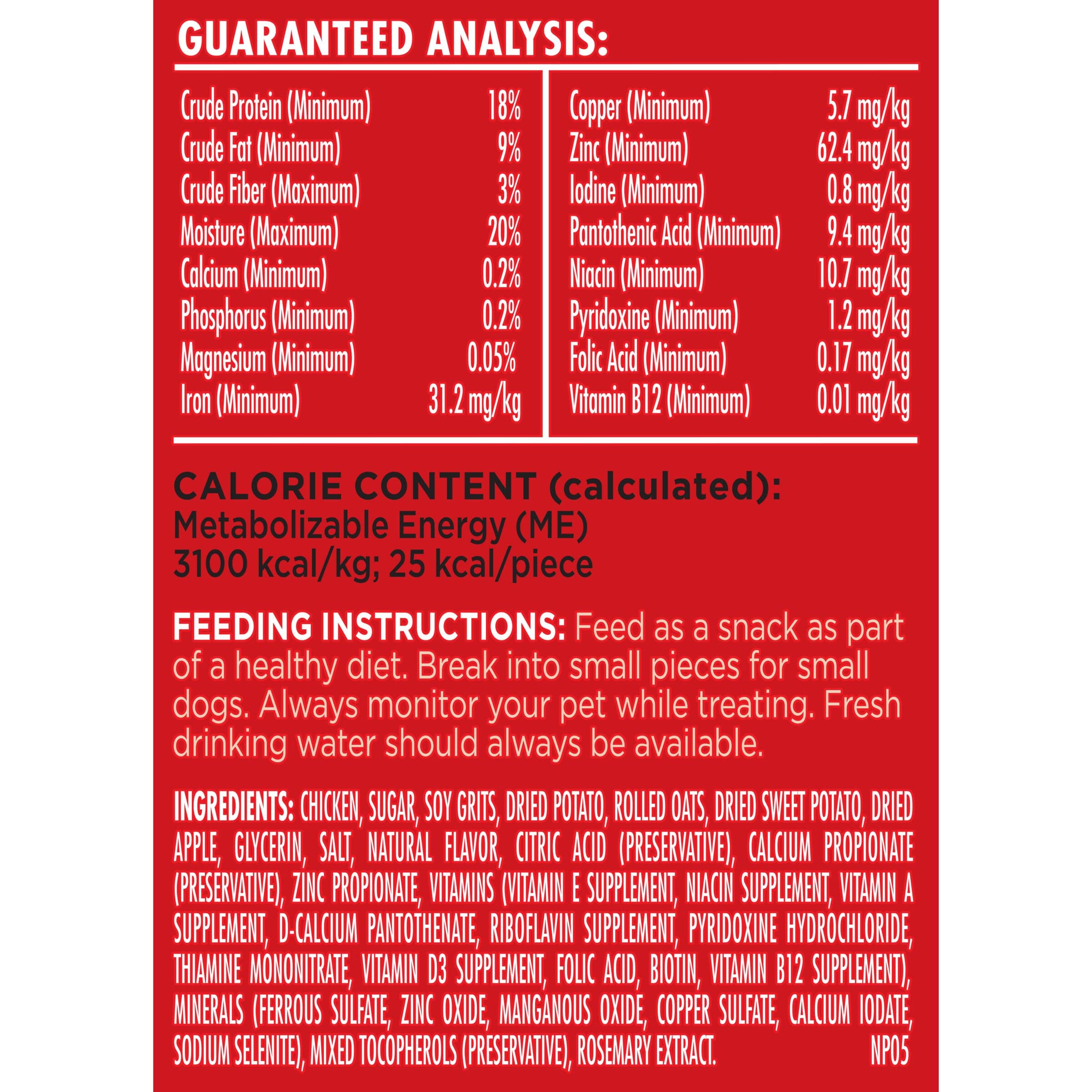 Make your dog’s life even more fun with Milk-Bone Simply Soft & Chewy dog treats. They’re made with wholesome ingredients — real chicken, rolled oats, sweet potato and apples — for a delicious, tender snack your dog can’t resist. These soft dog treats are easy for dogs of all sizes to chew and include vitamins and minerals — 12 to be exact! Plus, there are no artificial colors or flavors, so you can feel good about making them part of your regular treat rotation. Grab a container today and treat your buddy to these tasty dog snacks from their favorite dog treat brand.