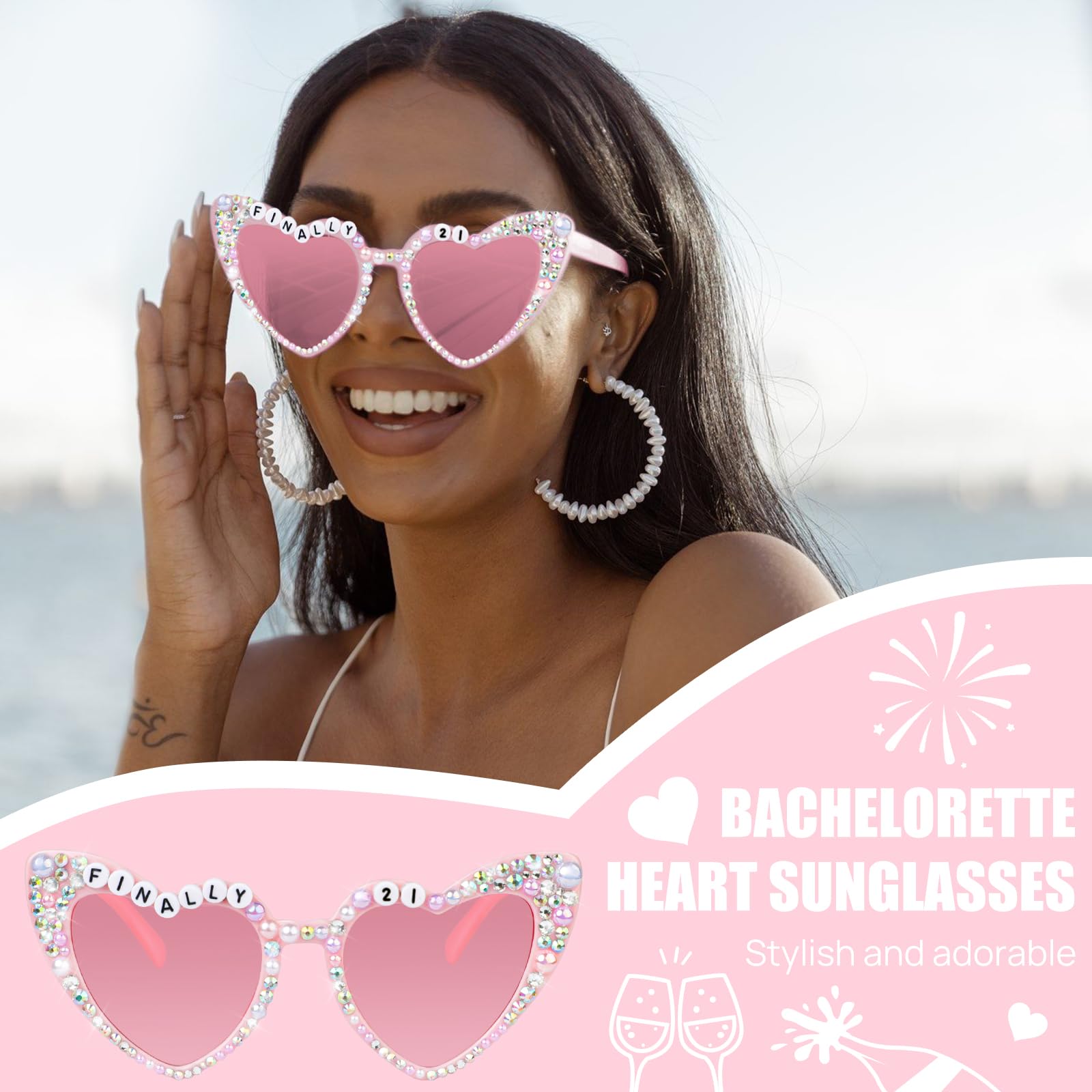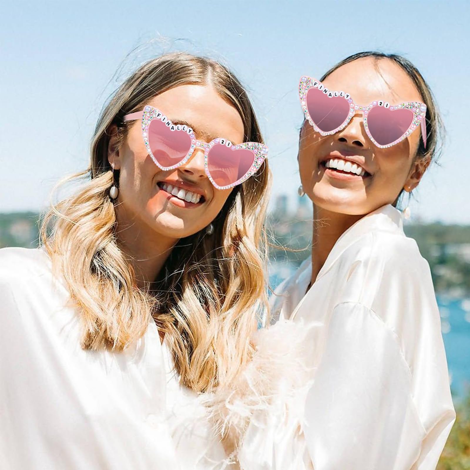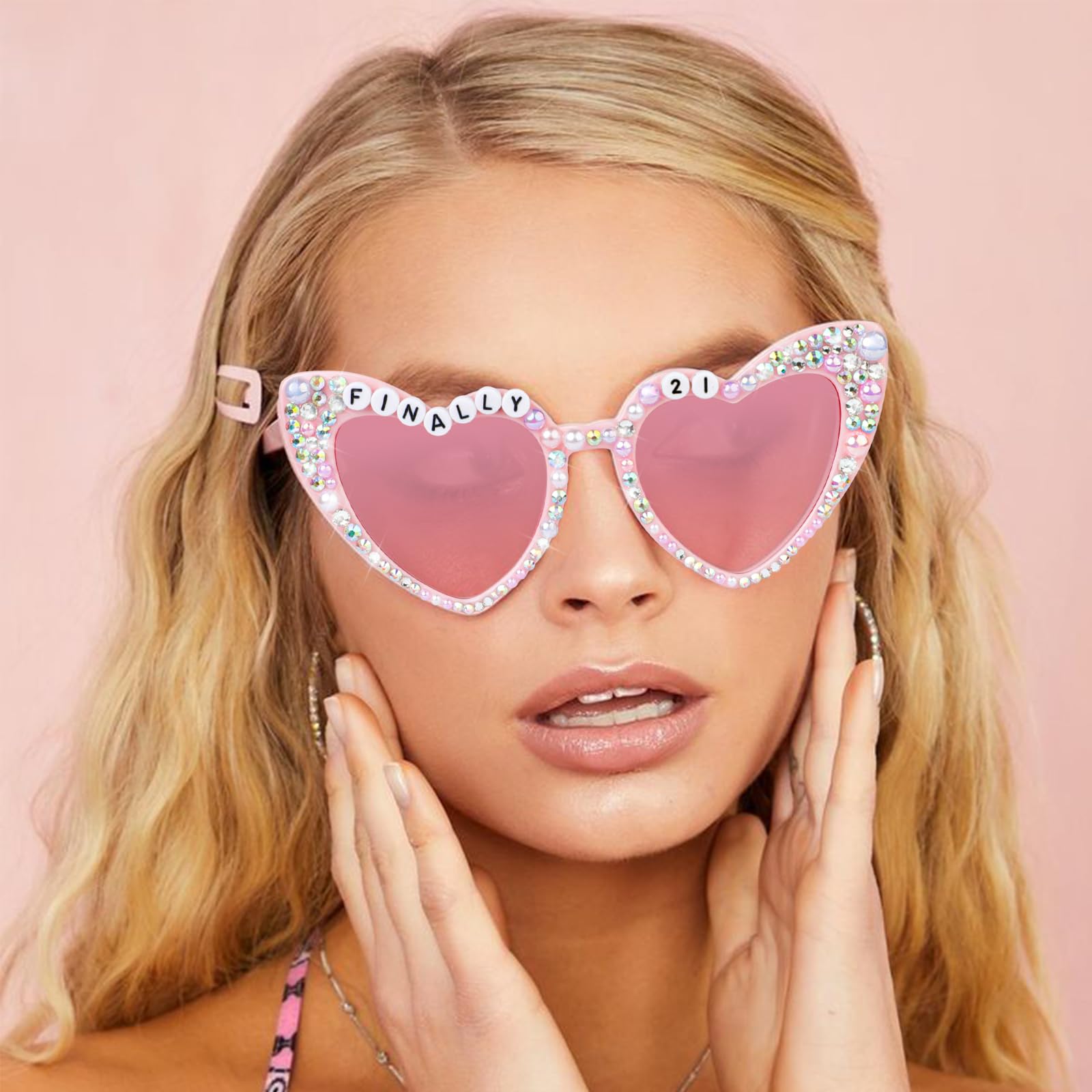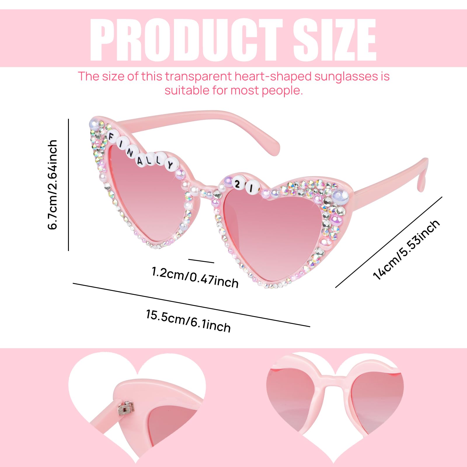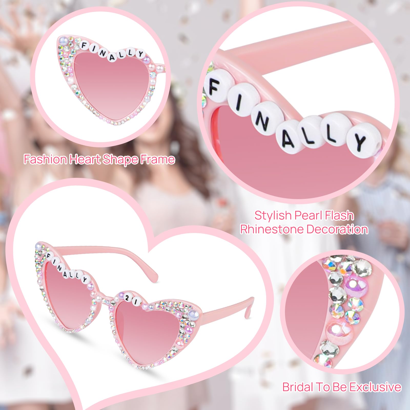 STYLISH FINALLY 21 SUNGLASSES: The delicate pink heart shape 21ST glasses are decorated with dazzling crystals and " FINALLY 21 " . Elegant Birthday sunglasses, once put on, you will be the center of attention in party