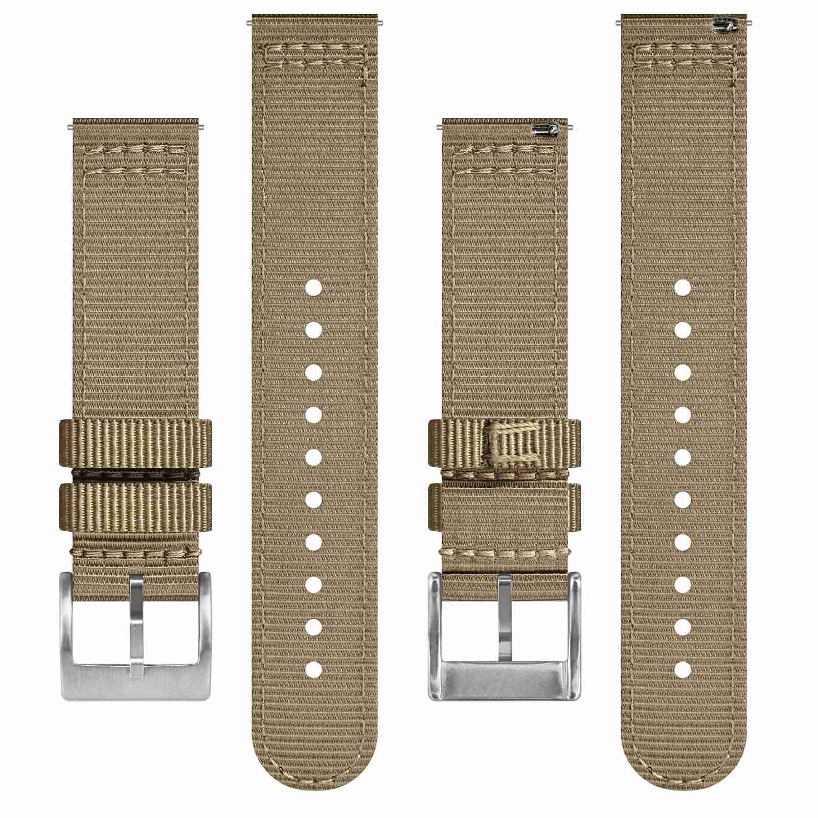 Sturdy and Durable: The double-layer nylon is sewn, and the neat stitching enhances its aesthetic appeal and makes the strap more durable. The strap features laser cut holes to resist fraying and won't scratch your skin