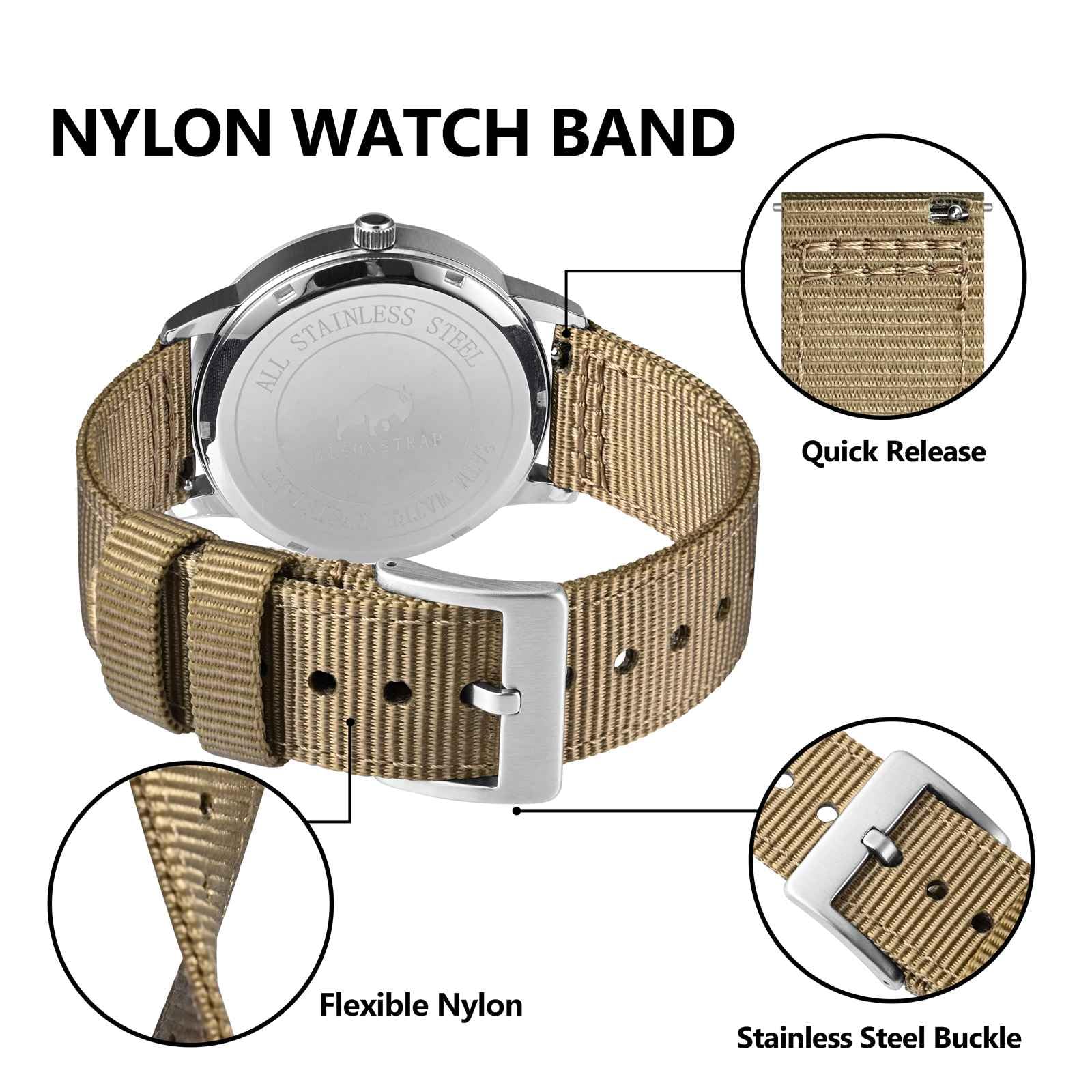 Flexible and Comfortable: Made of tightly weave nylon fabric, this watch strap is soft, breathable, lightweight, washable and quick drying, paired with a sturdy brushed stainless steel buckle, suitable for various occasions