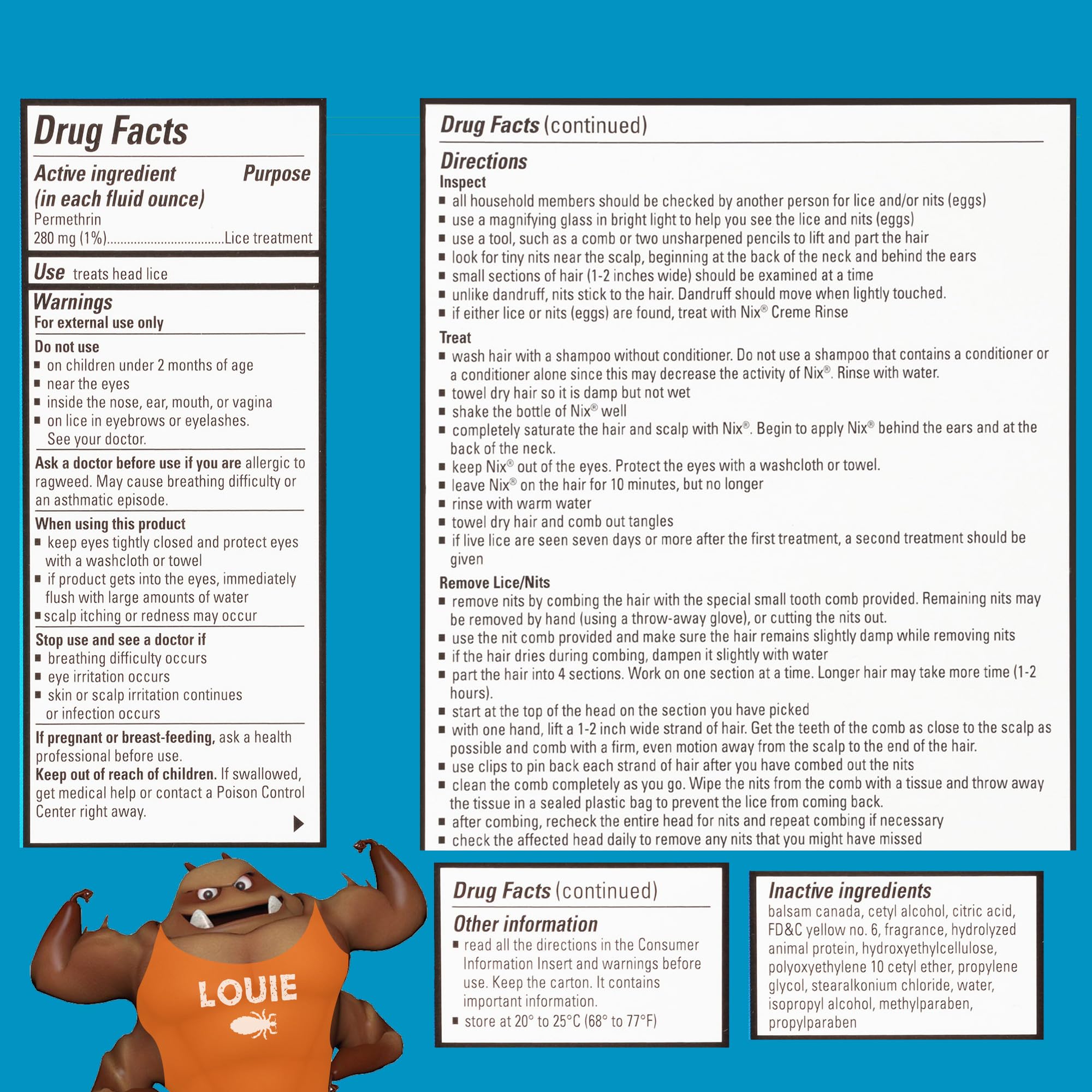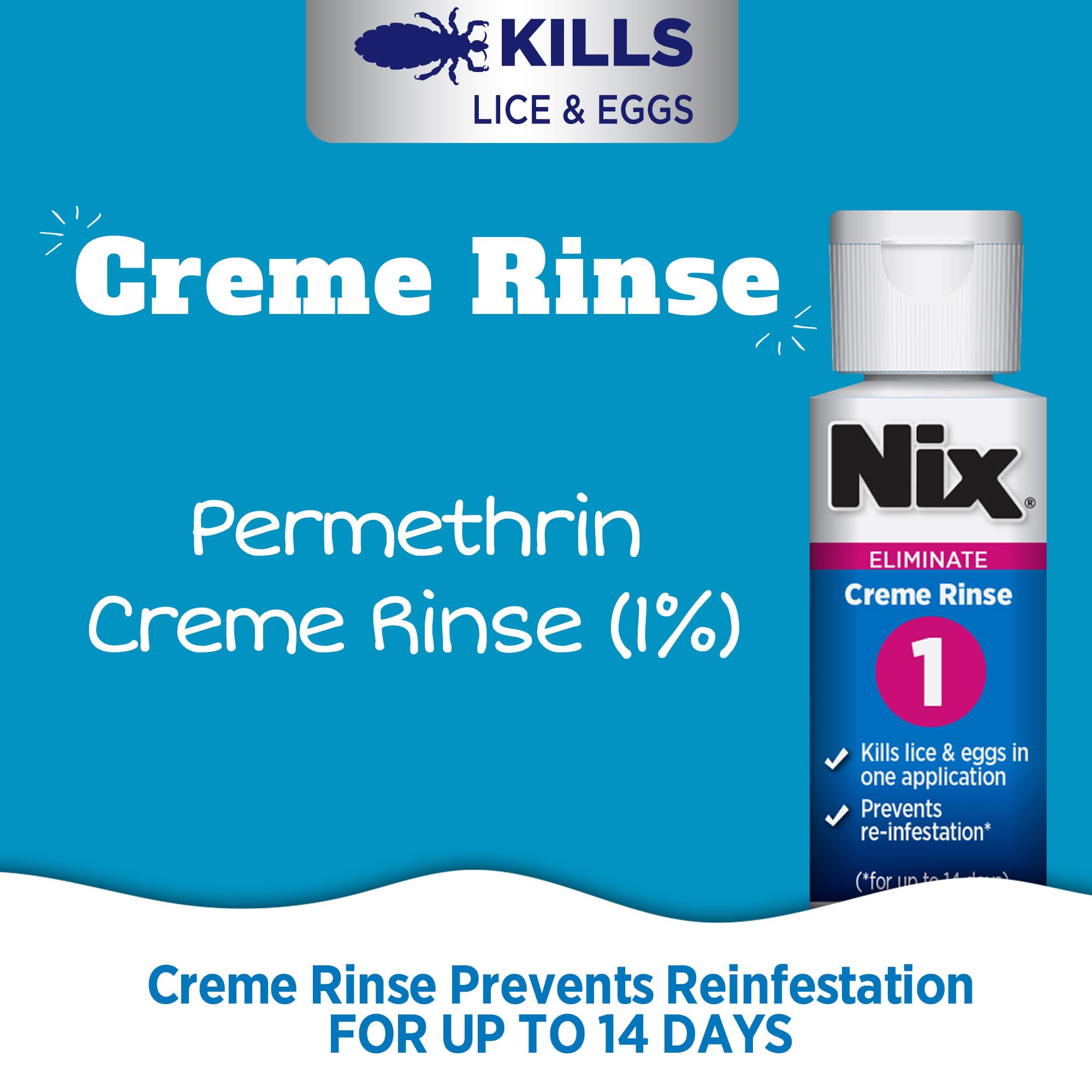 From the number one pediatrician-recommended lice removal brand.* Nix Creme Rinse will kill head lice and eggs (nits) for kids or adults through the use of permethrin, an insecticide that kills lice. First, apply Nix Creme Rinse to head hair to kill lice and eggs (nits) and to prevent reinfestation for up to 14 days after the initial application. Next, remove lice and eggs (nits) from head hair with the Nix Lice Removal Comb. Nix Lice & Bed Bug Killing Spray for Home will kill lice and bed bugs in your home. The bed bug and lice spray is effective for up to 4 weeks and easy to use. Nix lice treatment is trusted by parents and feared by lice. Nix offers a variety of lice combs, shampoos, treatment kits, hair prevention spray and lice spray for furniture and bedding to nix out lice in your home. *Based on Pediatrician Survey December 6, 2022.