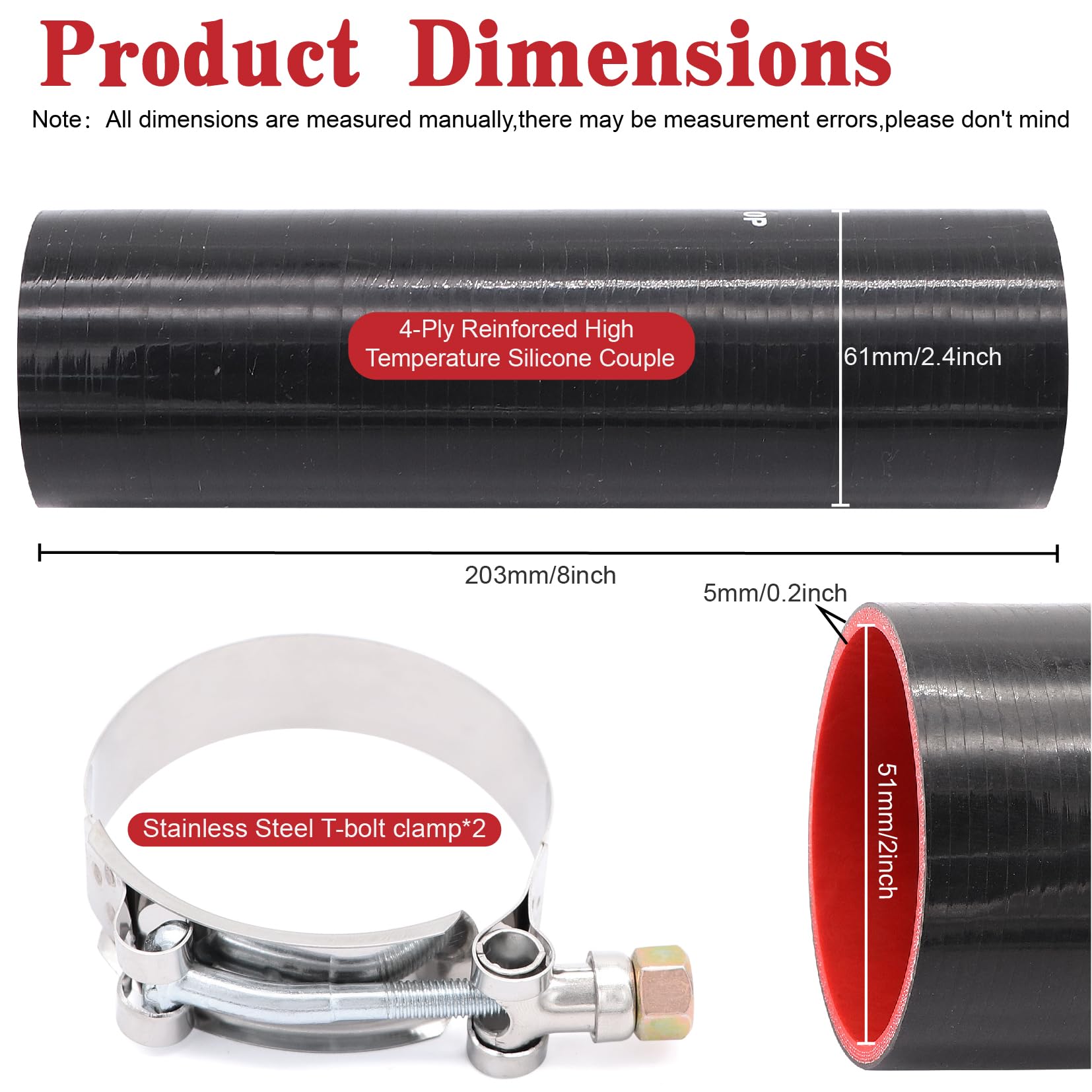 ID: 2" (51mm); Overall Length: 8-inch (203mm),4-Ply 5MM thickness