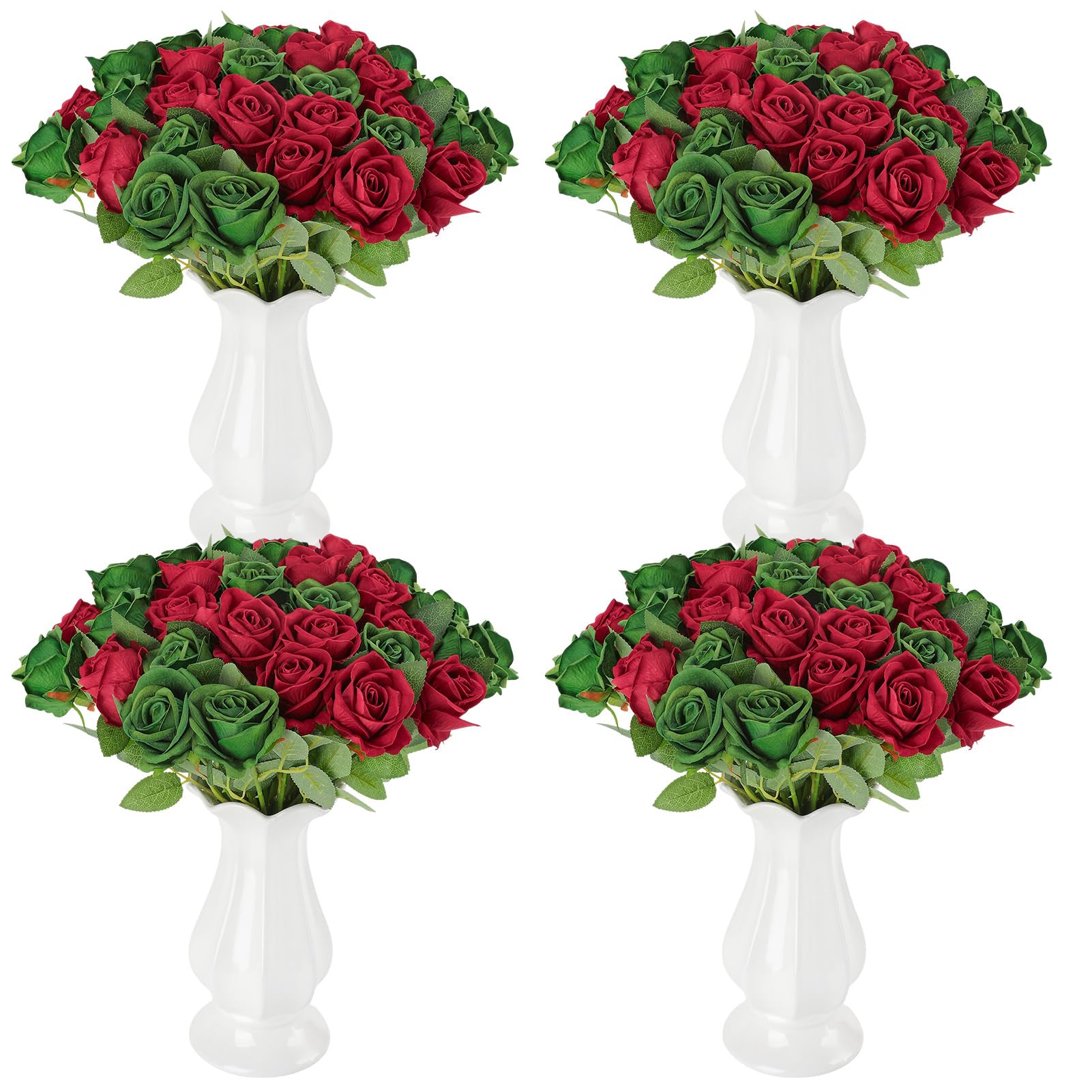 Effortless Elegance: These green red faux artificial rose need no water or sun, just a light dusting. Ideal for grand weddings, they rival real blooms in charm. Note: If stems are bent, flowers squished, had white glue, adjust and use a hairdryer for a lifelike look