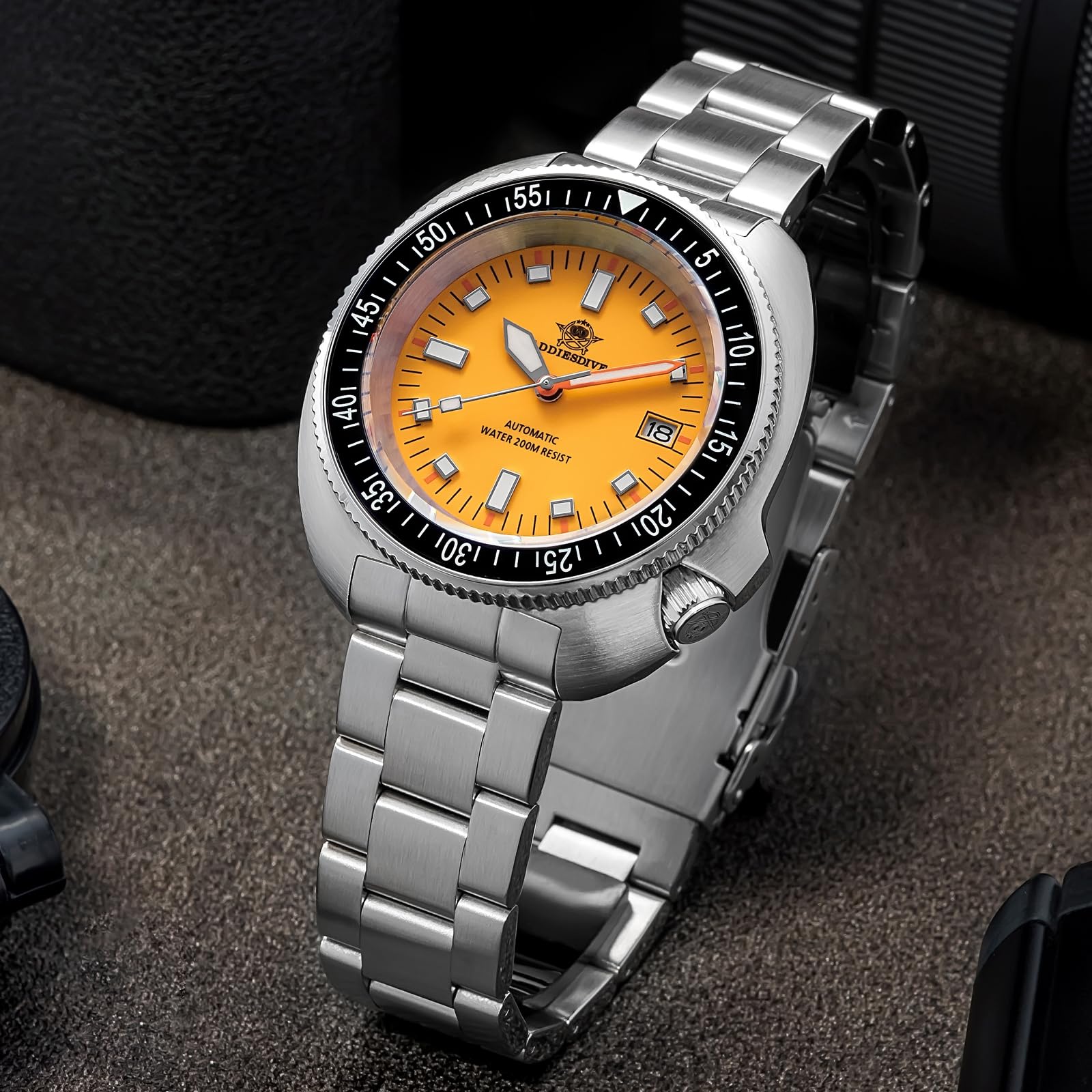 Classy Vintage Design: Inspired by iconic dive watches from the 1970s, this timepiece features a vibrant orange sports dial and stainless steel case with a combination of brushed and polished finishes for a timeless look