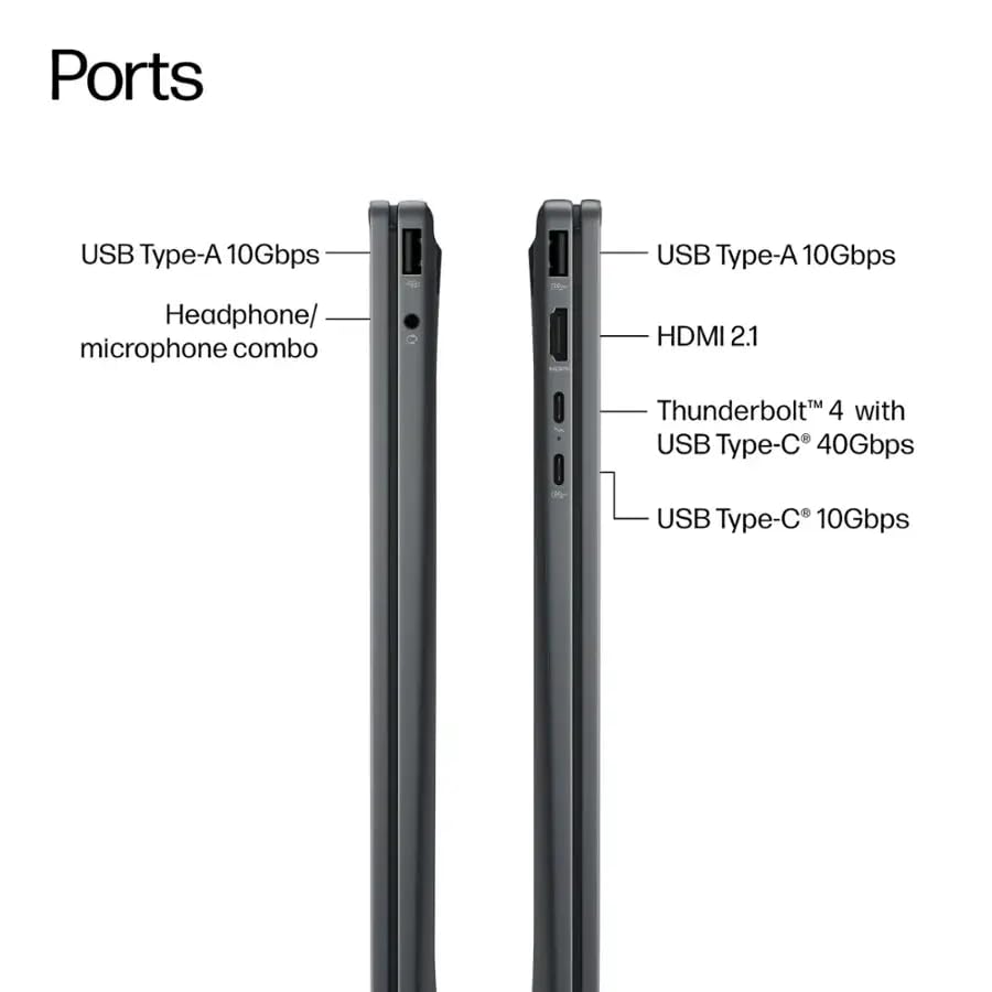 1x Thunderbolt 4, 2x SuperSpeed USB-A, 1x SuperSpeed USB-C, 1x HDMI 2.1