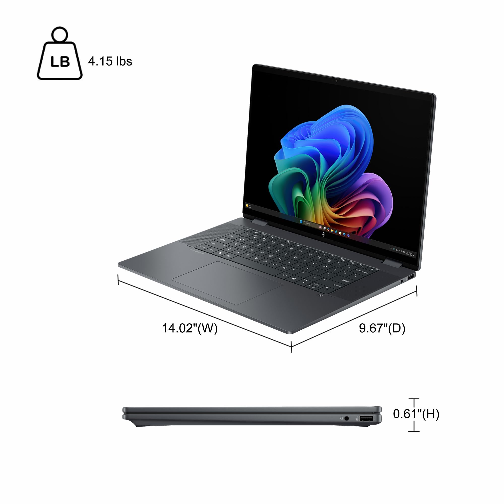 PRODUCT OVERVIEW: Product Details: Microprocessor: Intel 8-core Ultra 9 288V Processor Memory: 32GB RAM Storage: 2TB SSD Operating system: Microsoft Windows 11 Home Graphics & Video: Integrated Intel Arc 140V GPU 16" 3K (2880x1800) OLED Touchscreen (500nits HDR, 100% DCI-P3, 120Hz) Key Features: Backlit Keyboard: Yes Poly Studio: Yes DTS:X Ultra: Yes 5MP IR HDR Privacy Camera: Yes Wi-Fi 6E: Yes Ports: 1x Thunderbolt 4, 2x SuperSpeed USB-A, 1x SuperSpeed USB-C, 1x HDMI 2.1 Battery: 68Wh Additional Information: Dimension: 9.67" x 14.02" x 0.61" Weight: 4.15 lbs.
