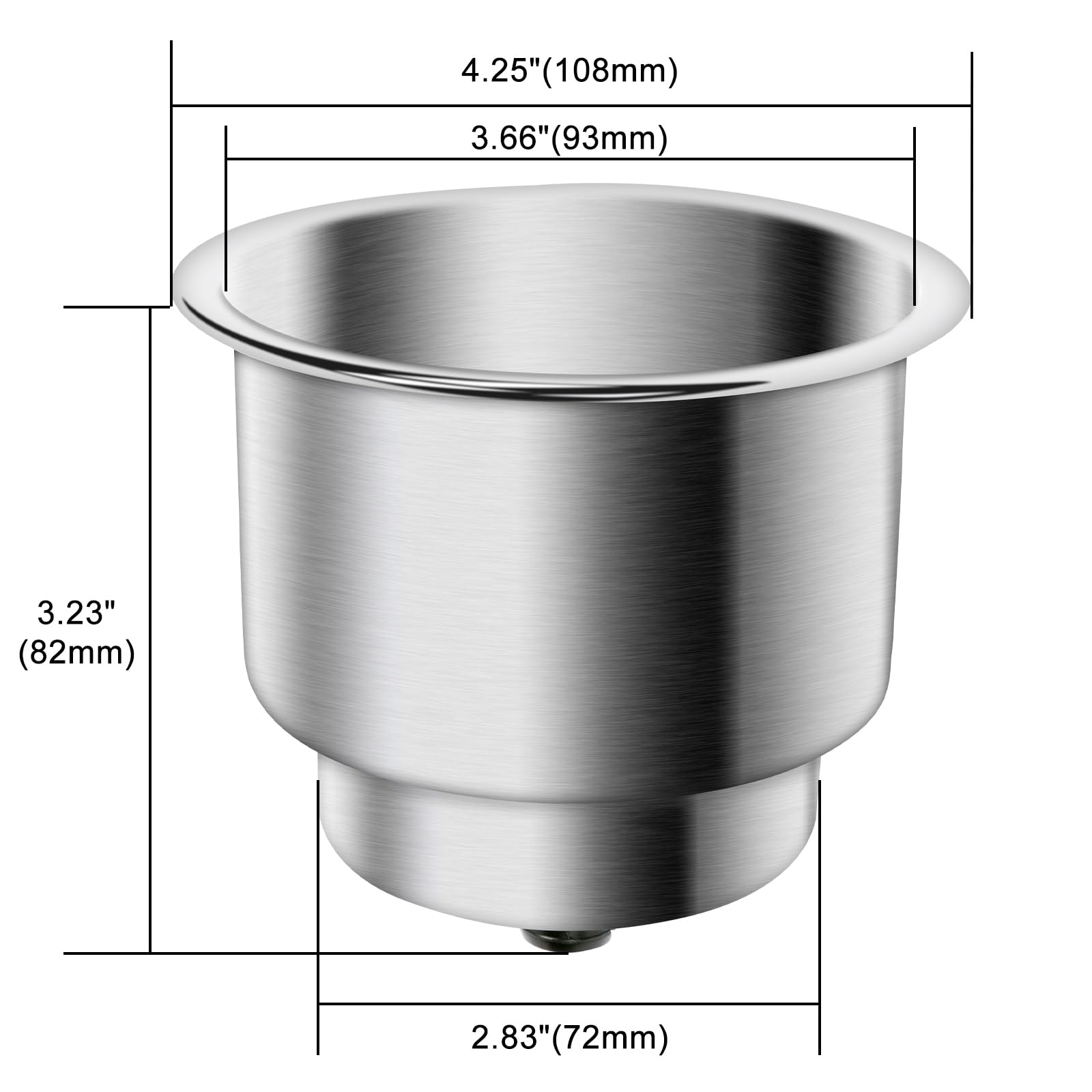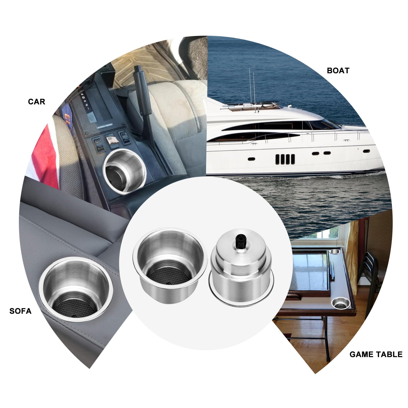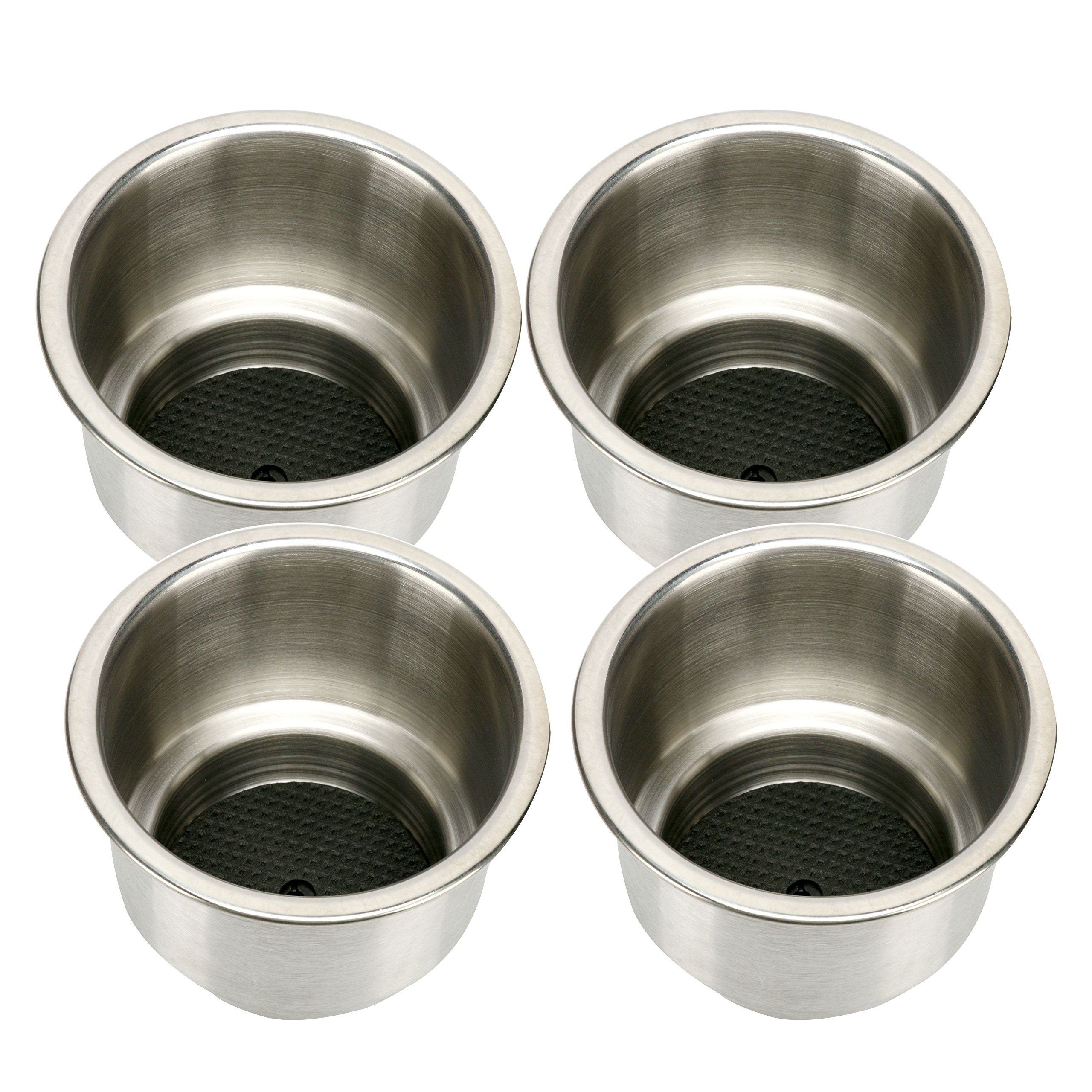Amarine Made Stainless steel self draining recessed cup holder ;Install almost anywhere; table, counter top, dashboard, seatback, etc.