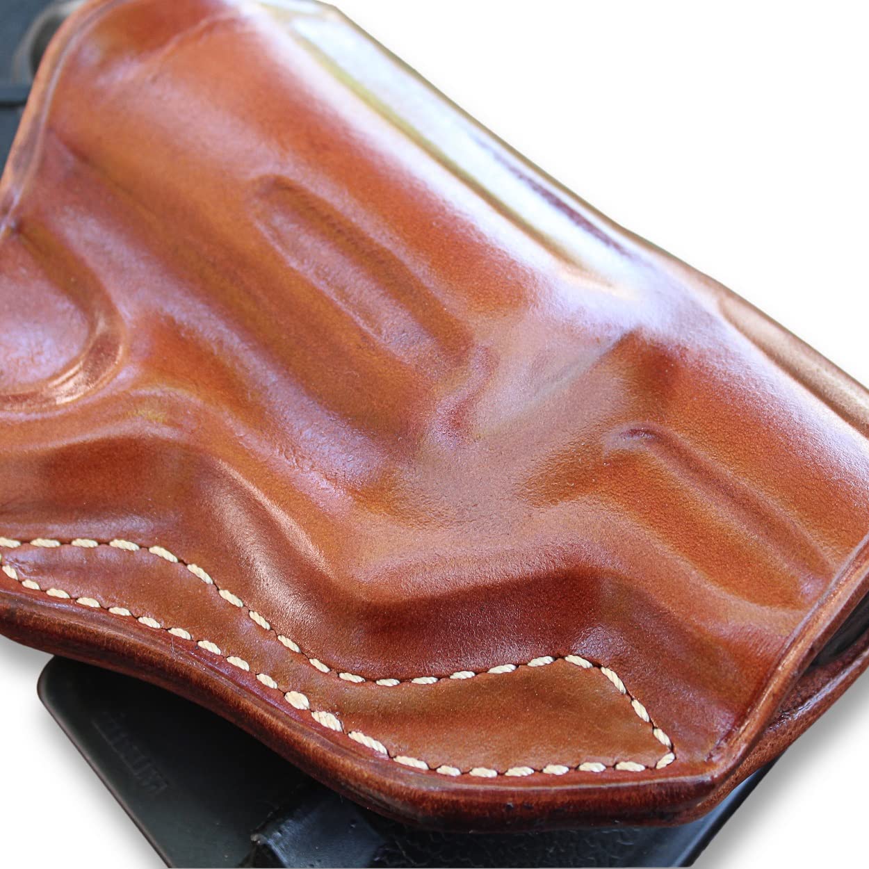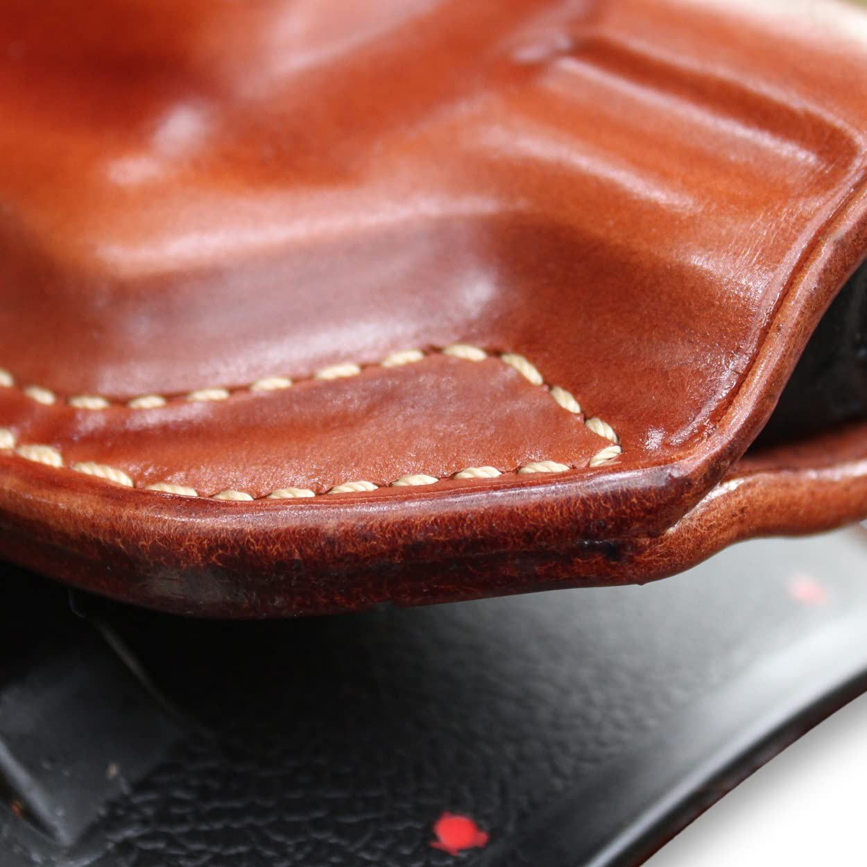 PLEASE NOTE: The holster may appear to fit too tight at first and when holstering your gun the first time. This is for long usage of your holster, considering the fact that the leather will relax with use.