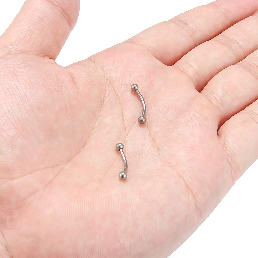 You will receive 2PCS 16G G23 titanium curved barbell eyebrow tragus helix ear belly lip nipple tongue ring body piercing jewelry.