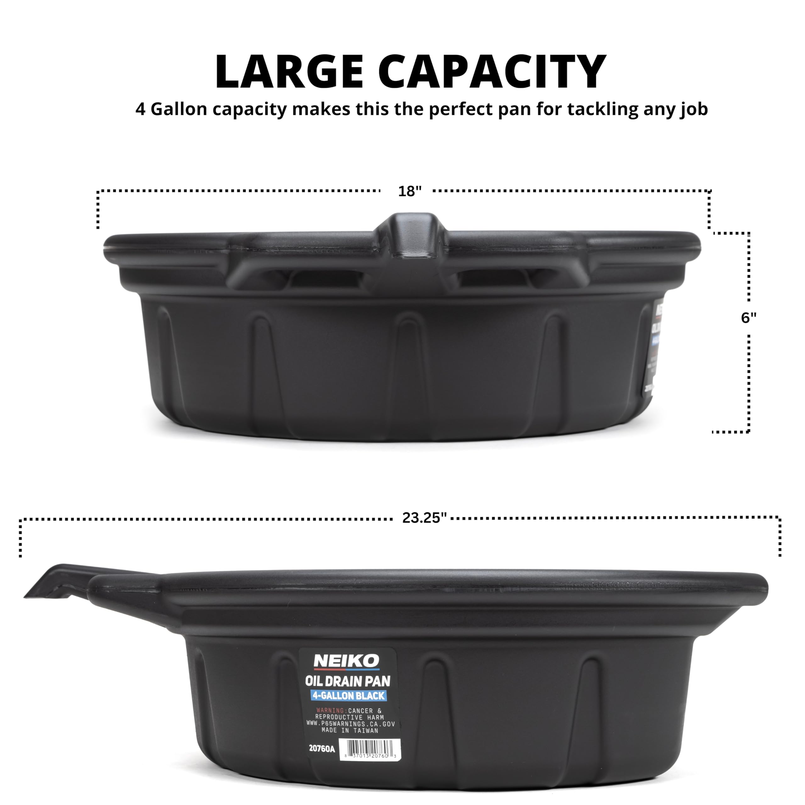 LARGE OIL CONTAINER: Deep 6" x 18" pan can hold a high capacity up to four gallons /16 liters making it the perfect oil pan for oil changes for all vehicles, motorcycles and heavy equipment.