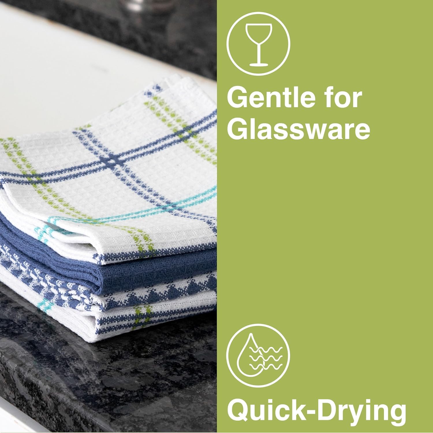 "Elevate your kitchen cleanup routine with the T-fal Flat Waffle Dish Cloths. Designed to tackle spills, messes, and everyday cleaning tasks with ease, these dish cloths are a must-have addition to any home. Crafted from premium materials and reinforced stitching, these dish cloths are built to withstand daily use and frequent washing. They'll hold up to tough cleaning tasks and maintain their quality wash after wash. No ordinary dish rag, these highly absorbent kitchen dish cloths are well-crafted from 100% high-quality waffle-weave cotton, allowing you to quickly and efficiently soak up spills and dry dishes with ease. Say goodbye to soggy messes and hello to sparkling clean surfaces. Each textured dish cloth is highlighted by a wondrous waffle weave that allows water to wick along the surface and enables proper airflow that results in quick drying. If you're looking for the perfect dish wash cloths for wiping down countertops, drying dishes, or cleaning up spills, these versatile dish cloths are up to the task. Each waffle weave dish cloth measures 12 in. by 13 in. (30 cm by 33 cm). This snazzy dish cloth set comes with 2 checked dish cloths, 1 striped kitchen dish cloth, and 1 solid dish cloth, all in your choice of color that is complementary to your style. With their compact size, these dish cloths are easy to store in any kitchen drawer or cabinet. Keep them close at hand for whenever you need them, without taking up valuable storage space. The all-purpose all-star of any household, this set of four T-fal Flat Waffle Dish Cloths ensures a dependable resource is always close at hand."