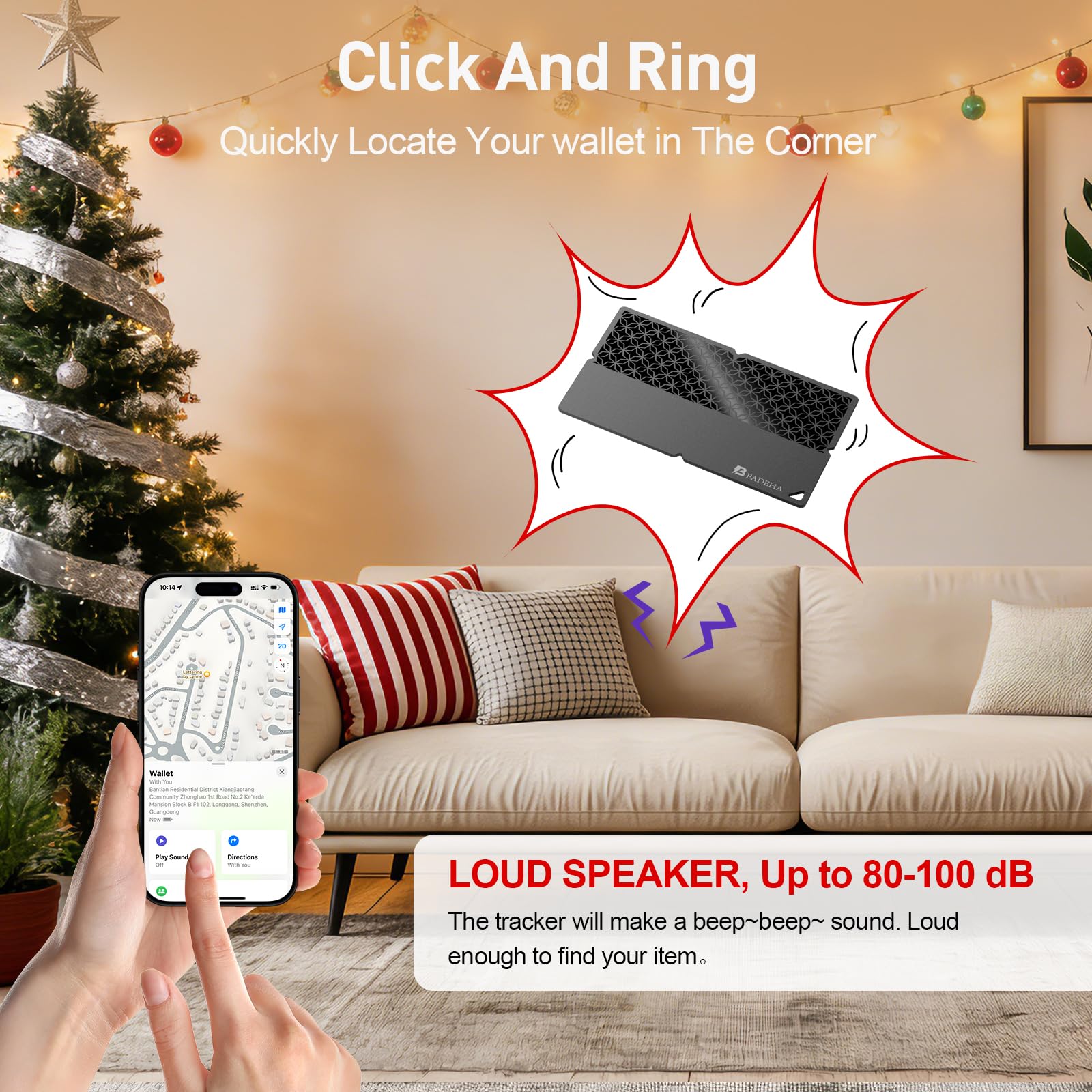 【Super-Loud Alarm】Open the Find My APP on your iPhone, tap the Play Sound button, and the tracker card will beep as long as it is within Bluetooth range.Its beeps are up to 100db,which can be heard clearly even when held down by thick blankets.