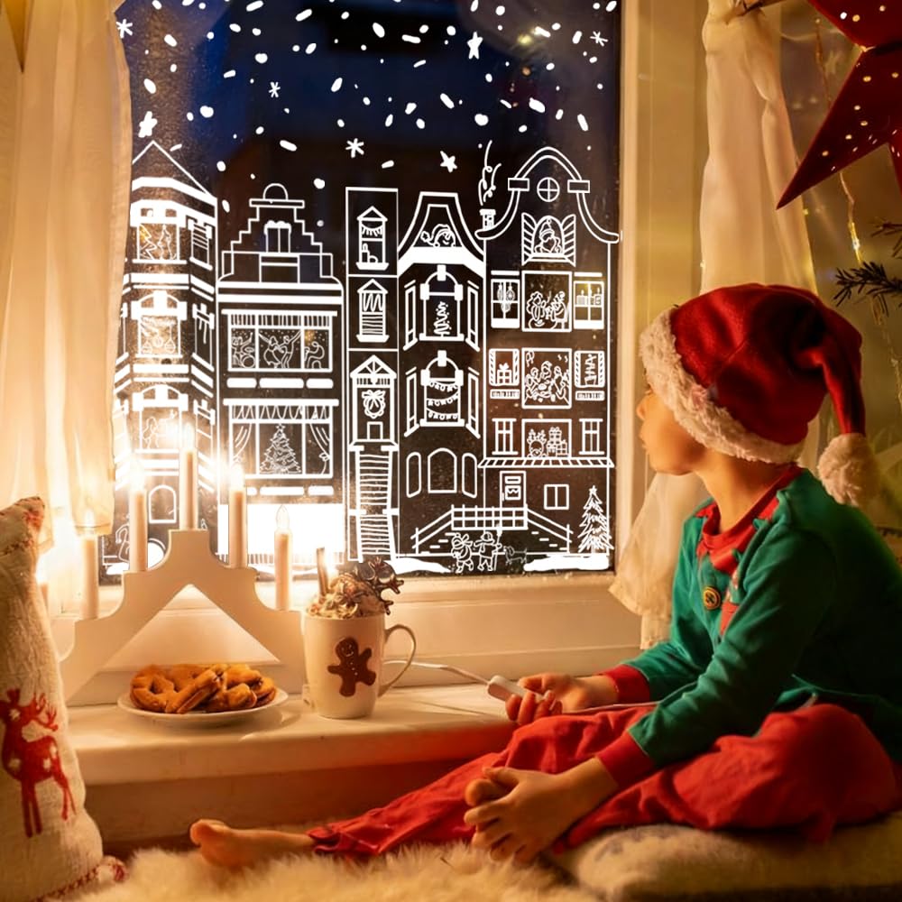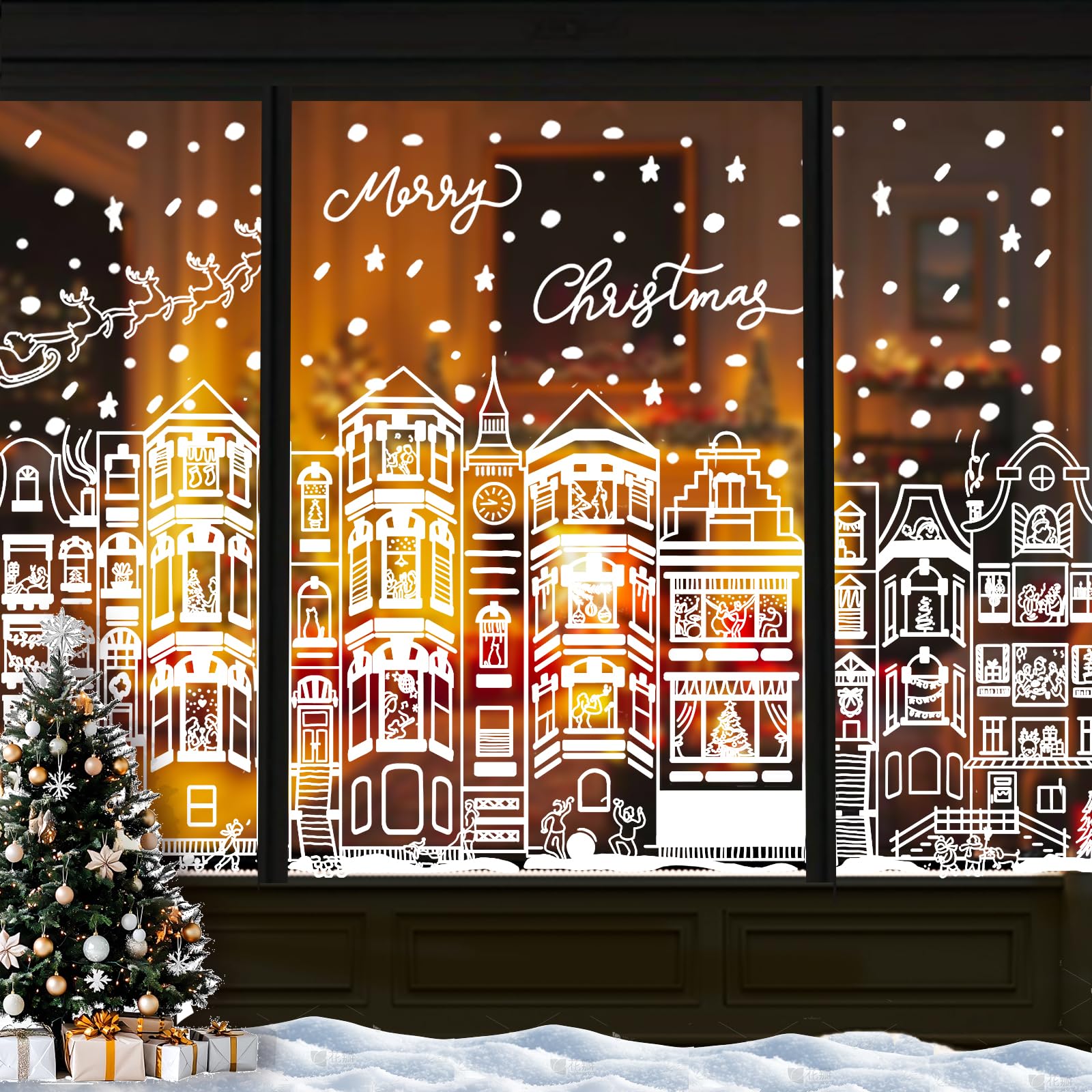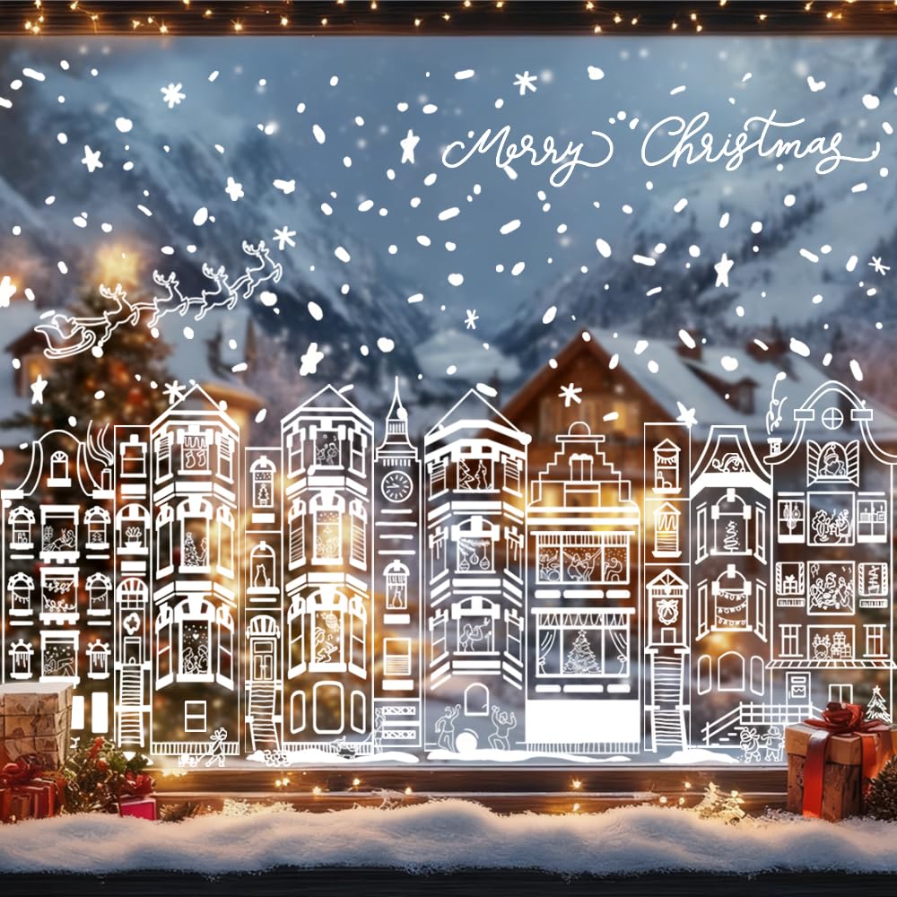 Valuable Packages: You will get 4sheets Christmas window stickers, large size 38.5*69.5cm/15.1*27.4IN, 4 different styles of house, as well as snowflakes, a variety of styles to meet your different needs, can decorate your home well, create a romantic atmosphere for the festival.