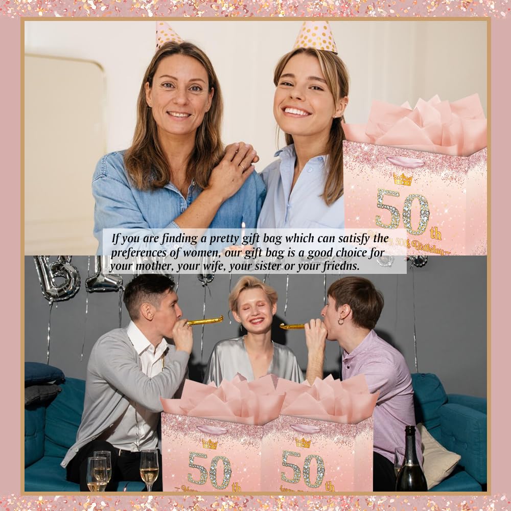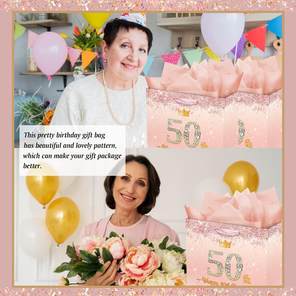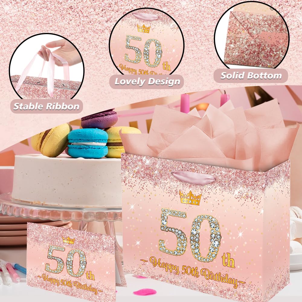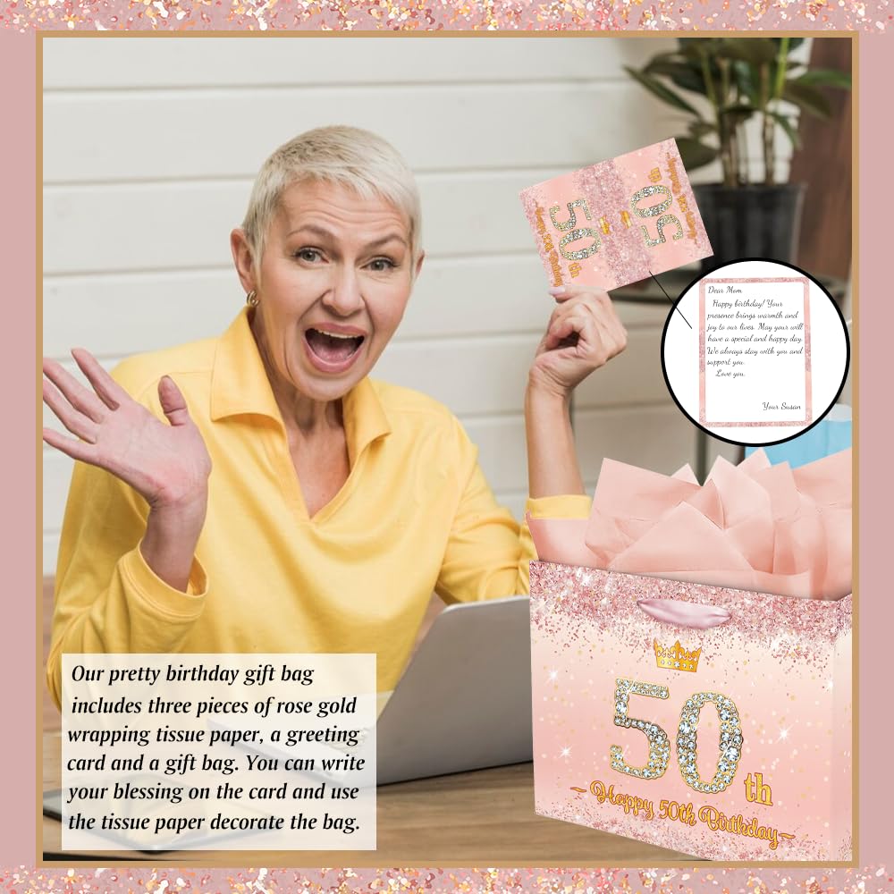 Product Include: Our sweet 50th birthday gift bag includes 3 pieces of rose gold wrapping tissue paper, a beautiful greeting card and a large gift bag. It can be a suitable and great 50th birthday decorations for women.