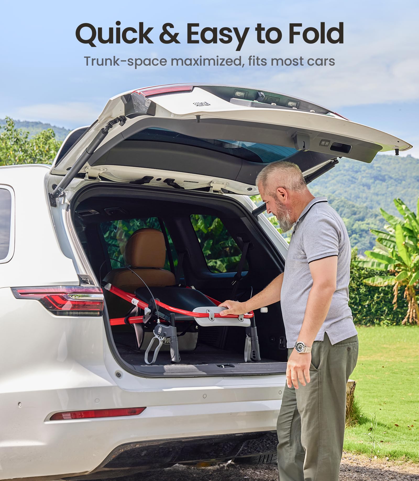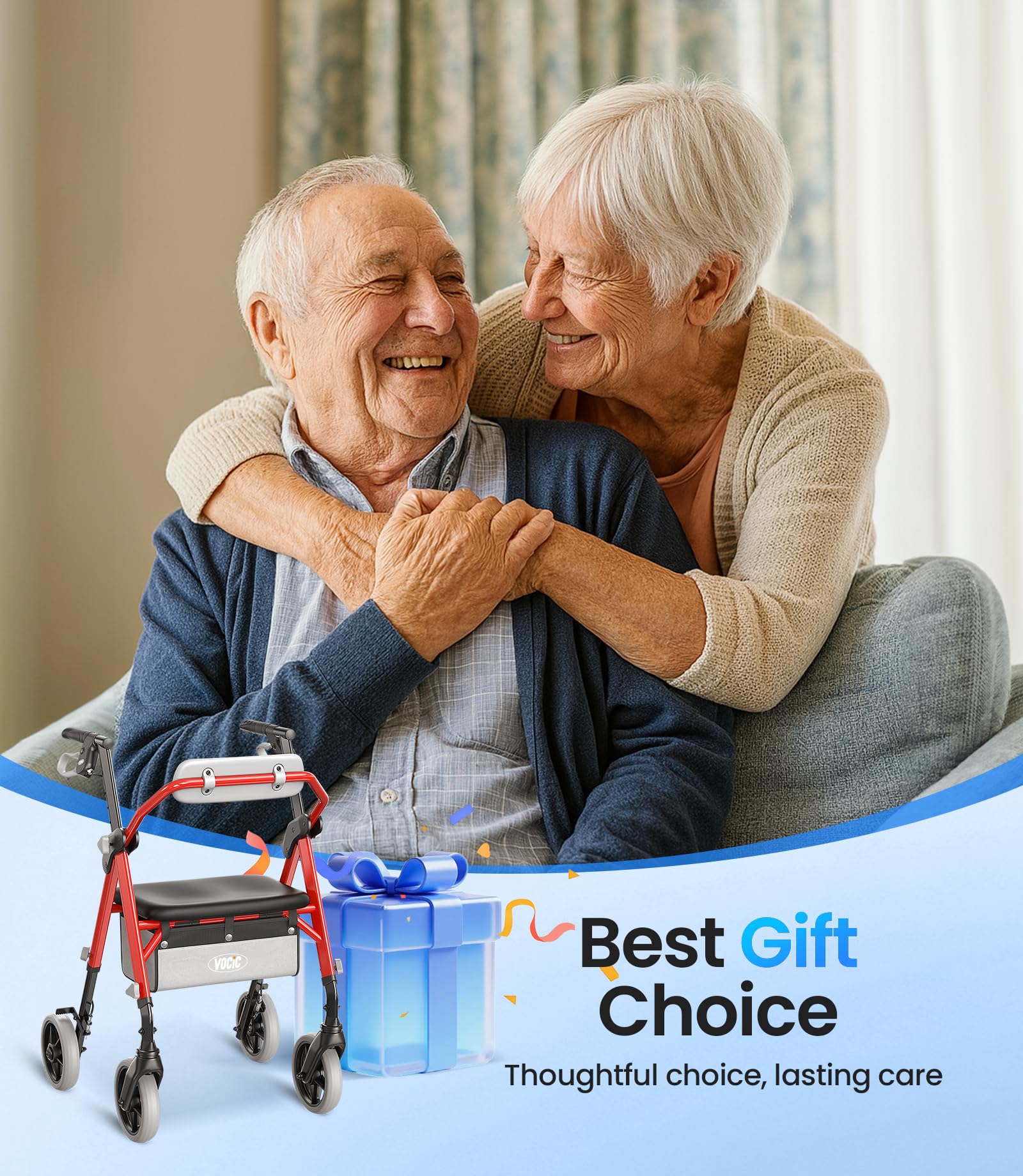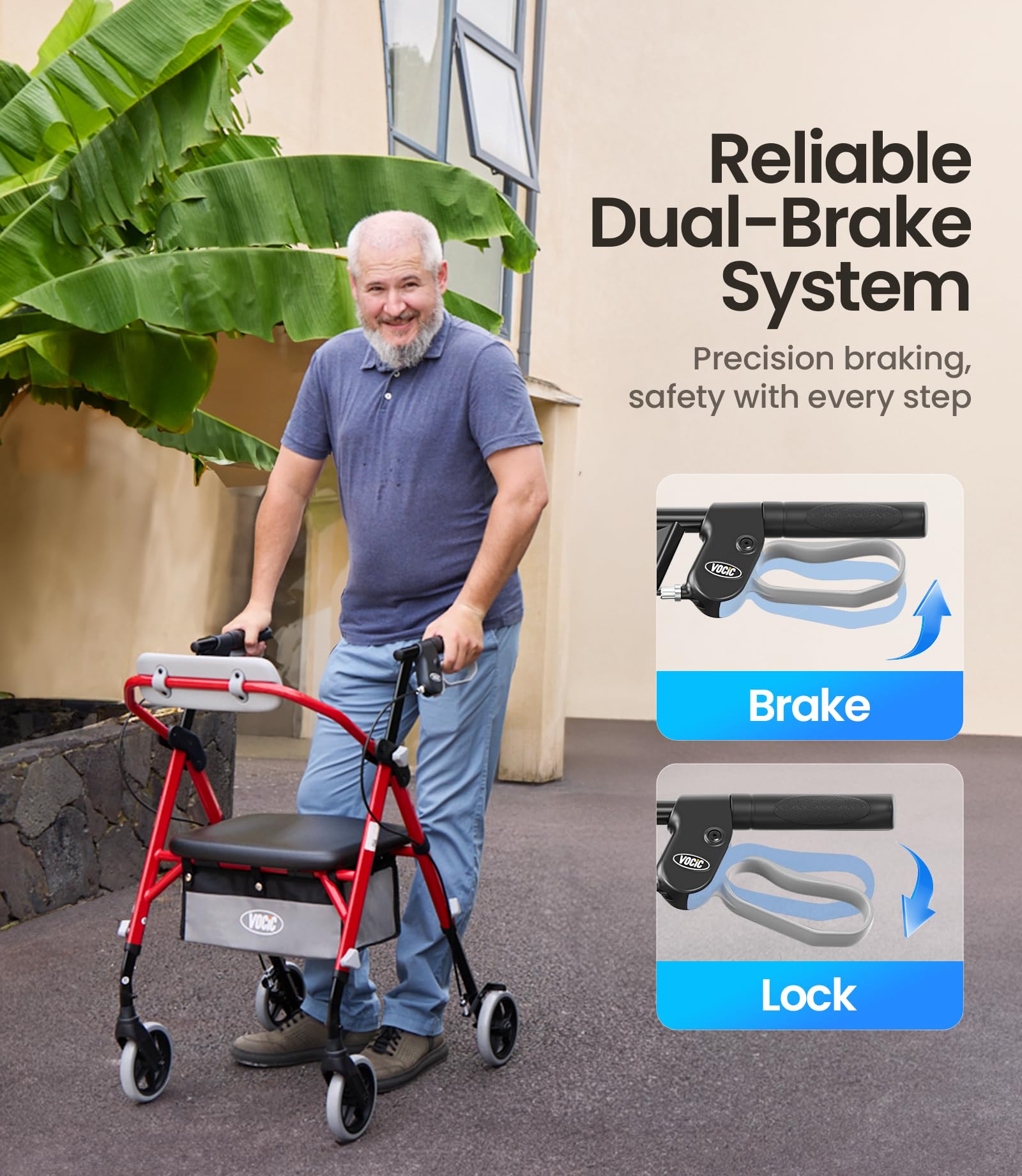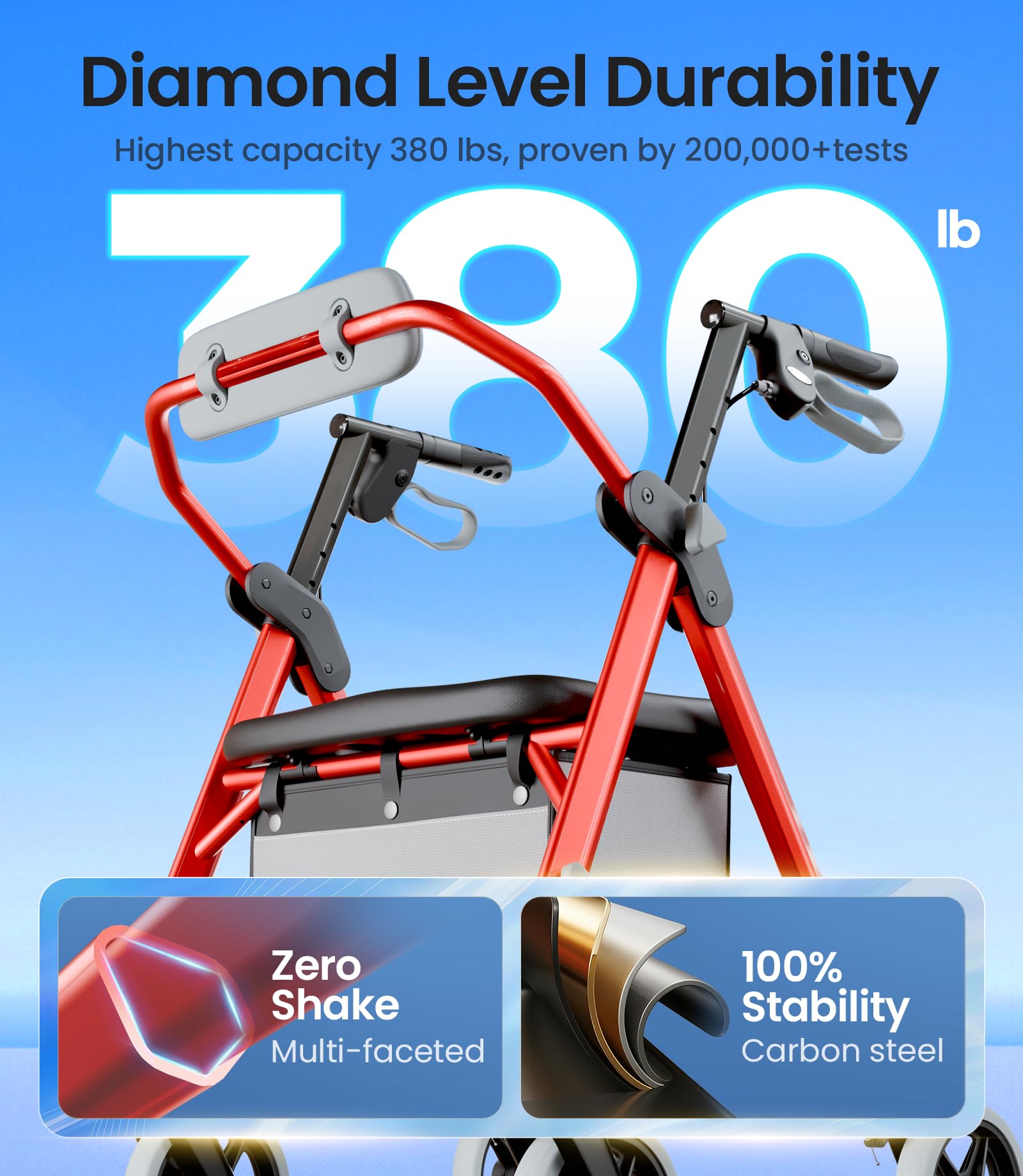 【380lbs Highest Stability】Engineered with Multi-faceted cut tubing locks firmly in place, paired with a carbon steel mult-triangular frame structure that withstands over 200,000 high-impact tests. Zero Shake,100% Stability.Supports up to 380lbs, far outclassing similar rollator walker on the market.