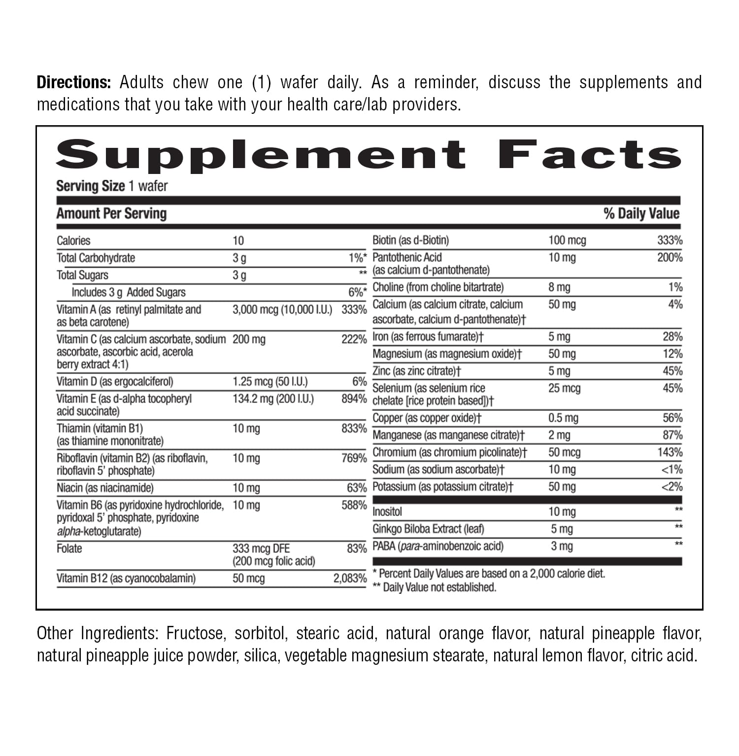 Delicious Pineapple-Orange Flavor - Enjoy the benefits of this multivitamin in a tasty, chewable wafer with a delightful pineapple-orange flavor, making it a pleasant addition to your daily routine.