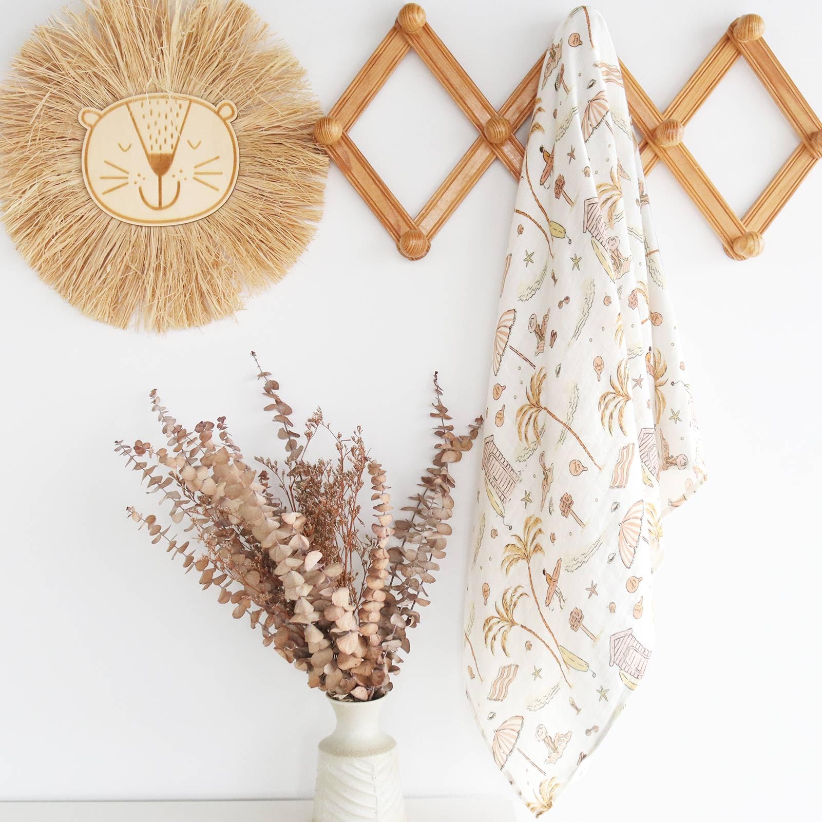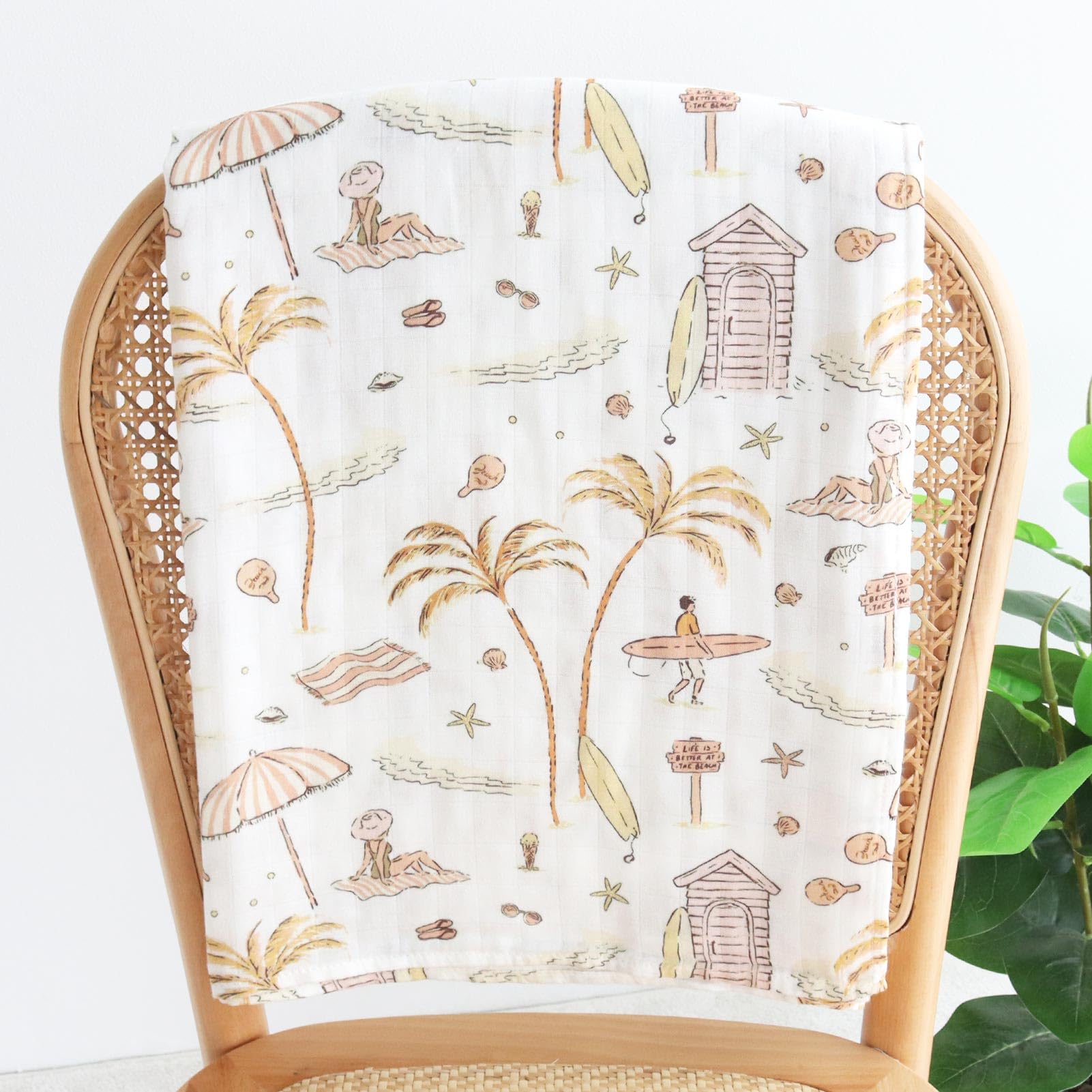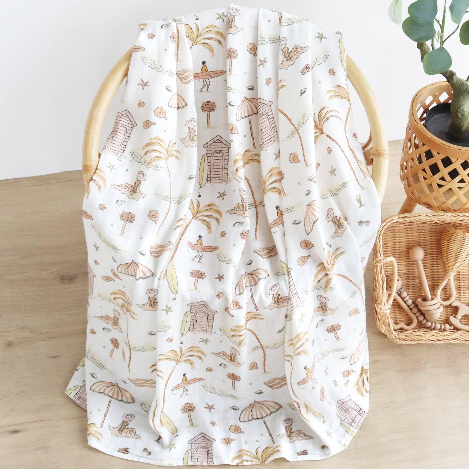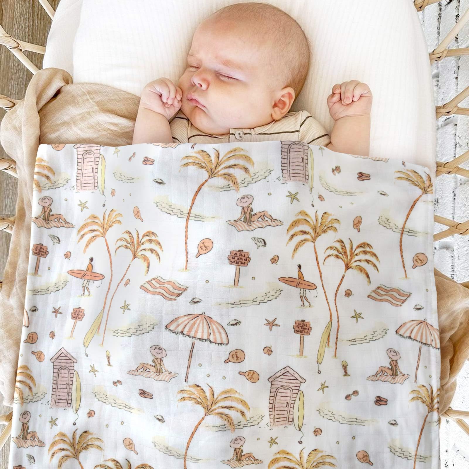 Our Design - Our baby swaddle blankets are printed in bright colors with yellow sandy beach pattern. Beach Vacation add the perfect pop of color and instantly upgrades any nursery decor. The perfect addition to any baby registry!
