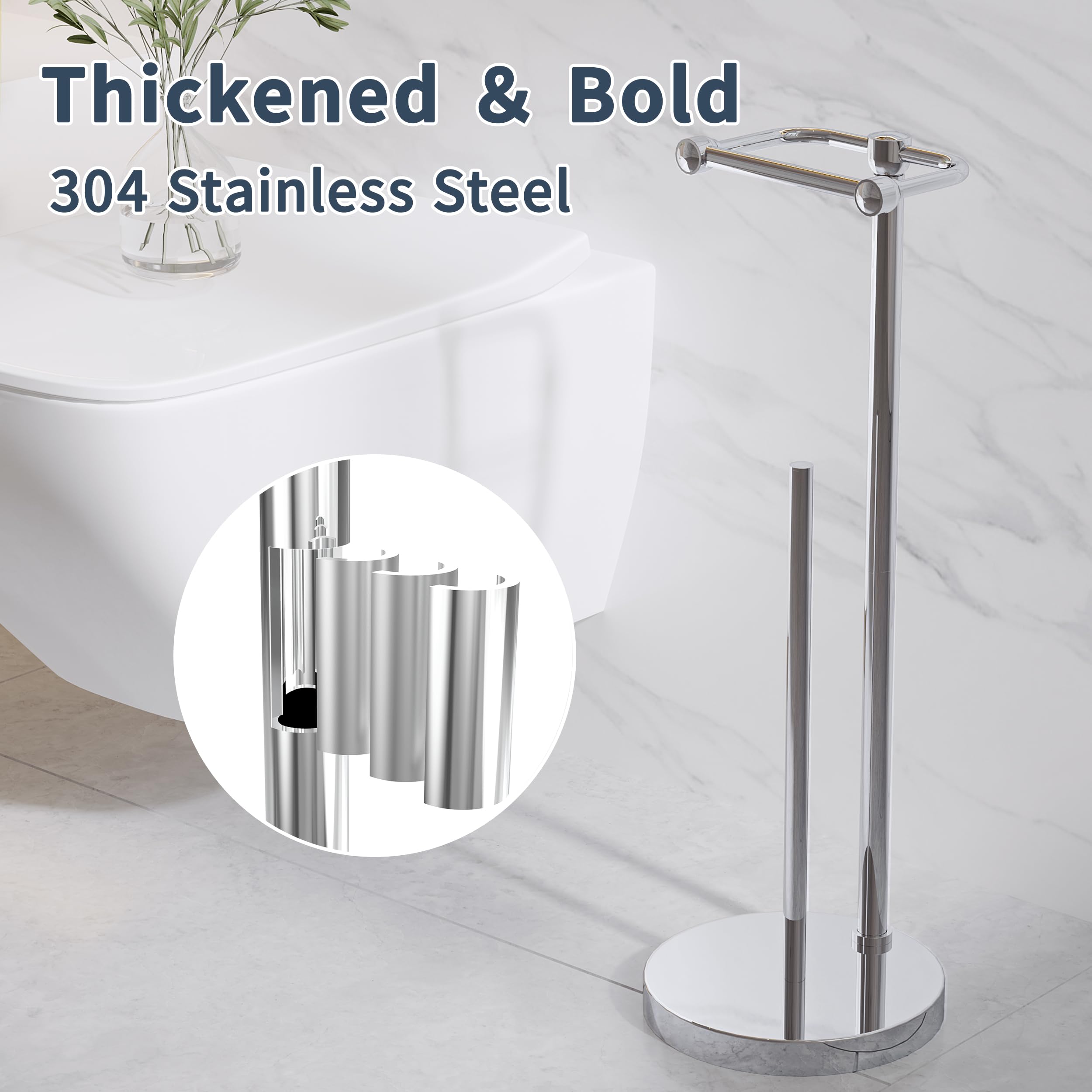 [SUS304 Stainless Steel] Bathroom toilet paper holder stand is made of sus304 stainless steel, toilet roll holder stand not only has smooth surface that is easy to clean, but also can resist water, rust and scratches, toilet paper standing holder be used for a long time in humid environments
