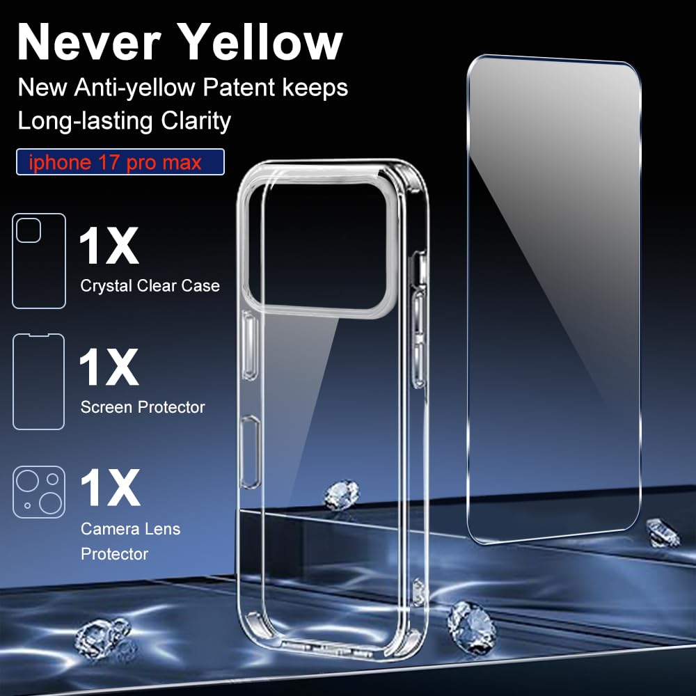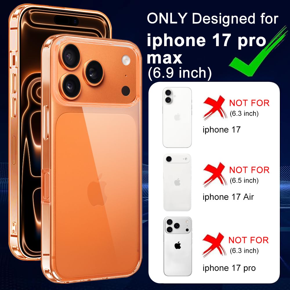 👍【Compatibility】Only Perfectly fits your iphone 17 Pro Max 6.9-inch. Supports wireless charging. it comes with 1 x High-Quality 9H tempered glass screen protectors and 1 x camera lens protectors.