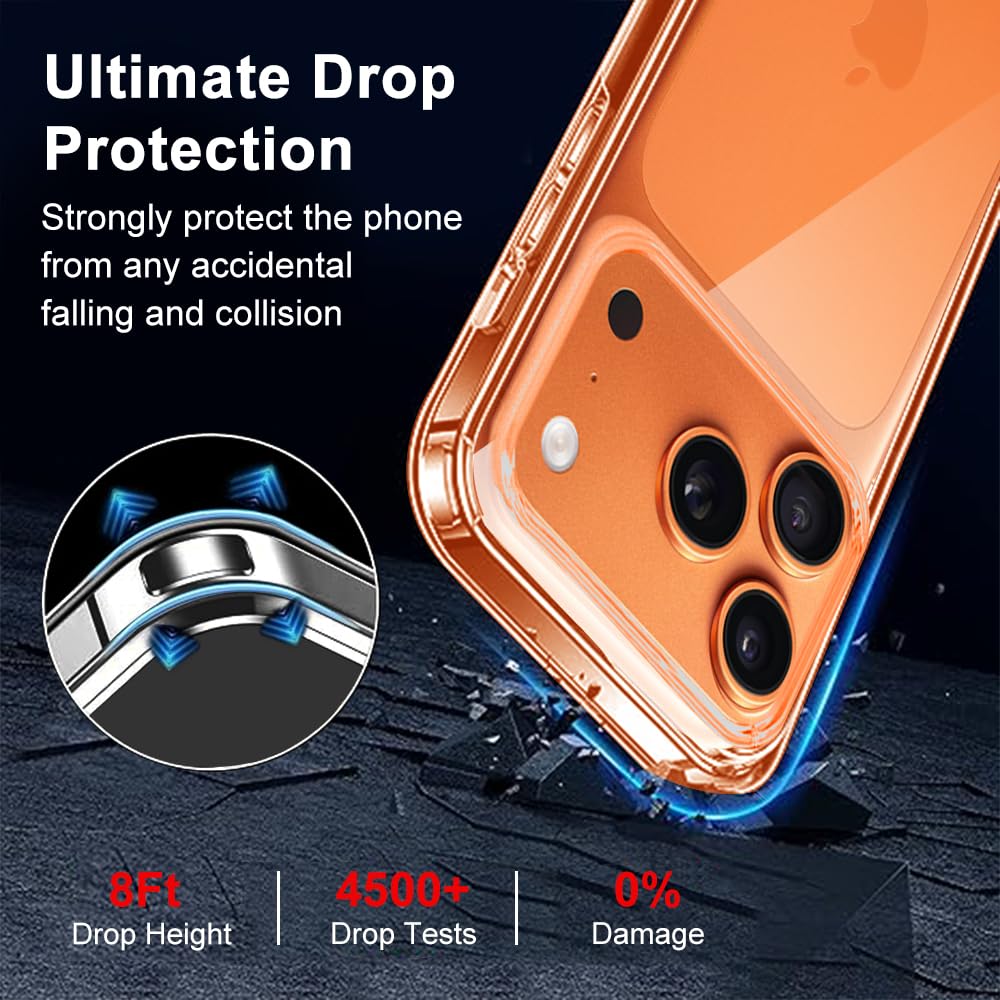 👍【Designed for iphone 17 Pro Max】Millimeter-precise cutouts ensure easy access to all buttons and ports, while wrapping your phone tightly to keep dust out.