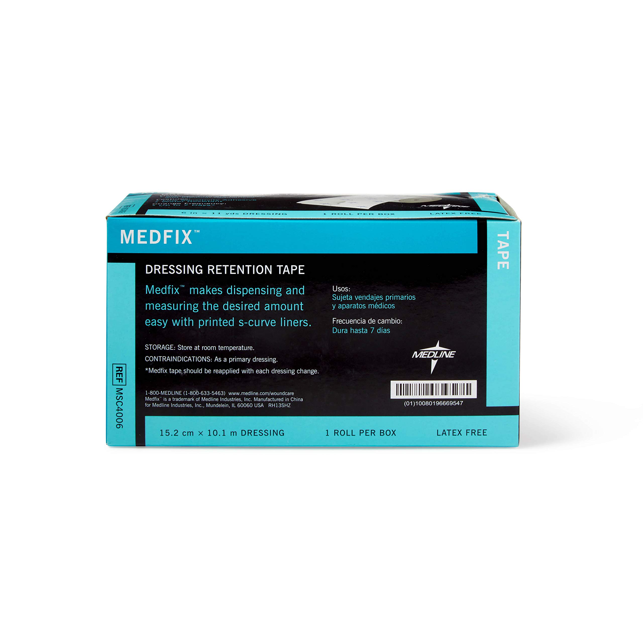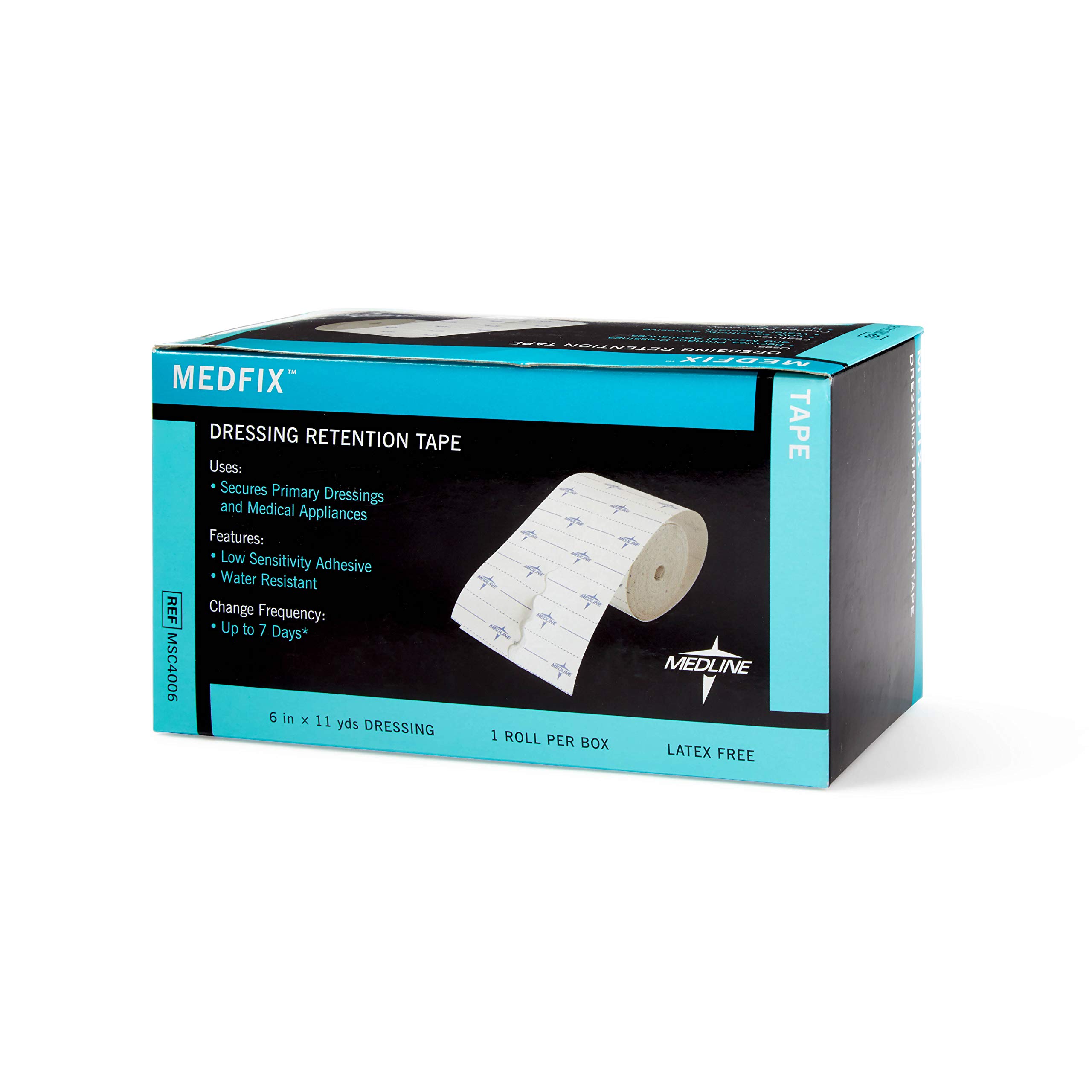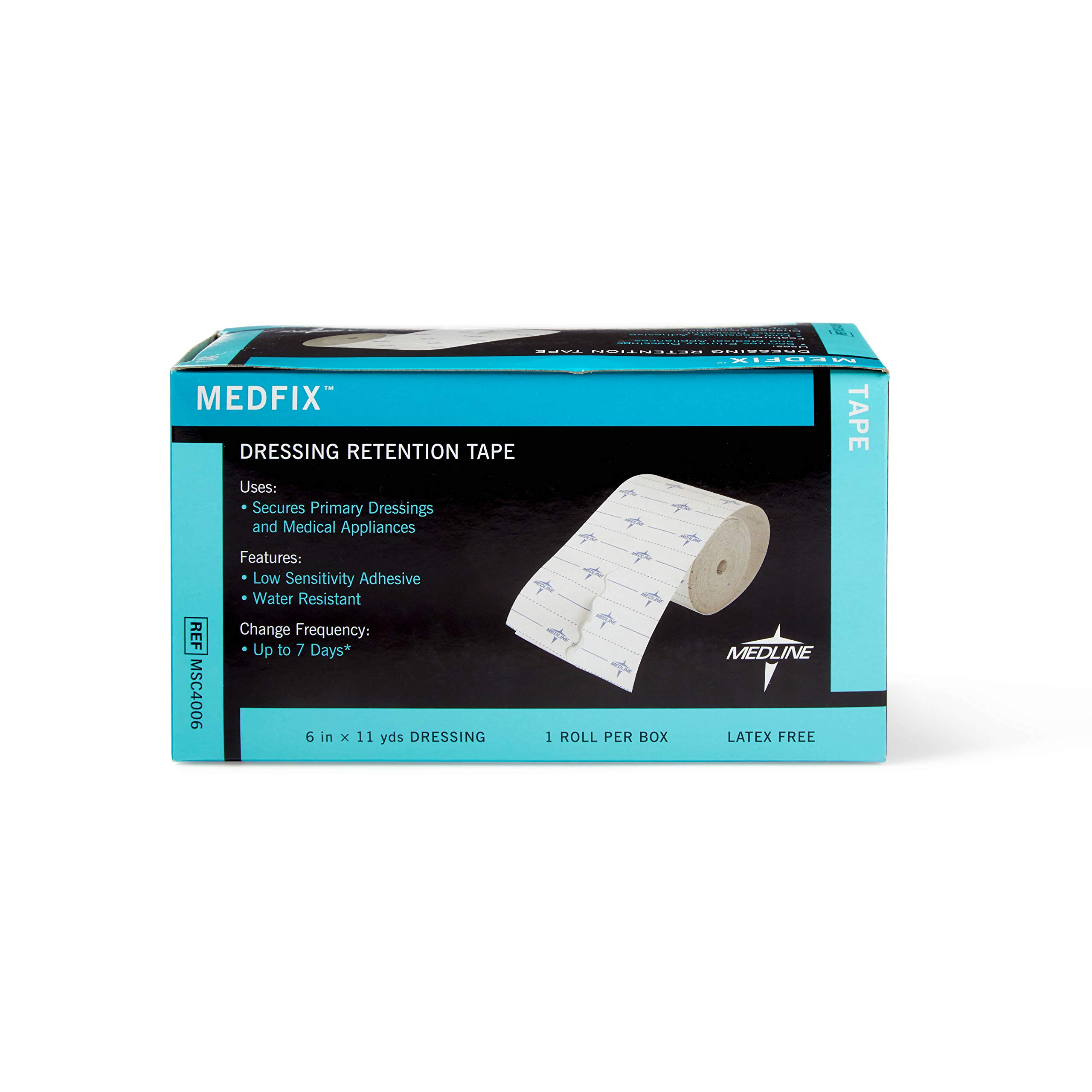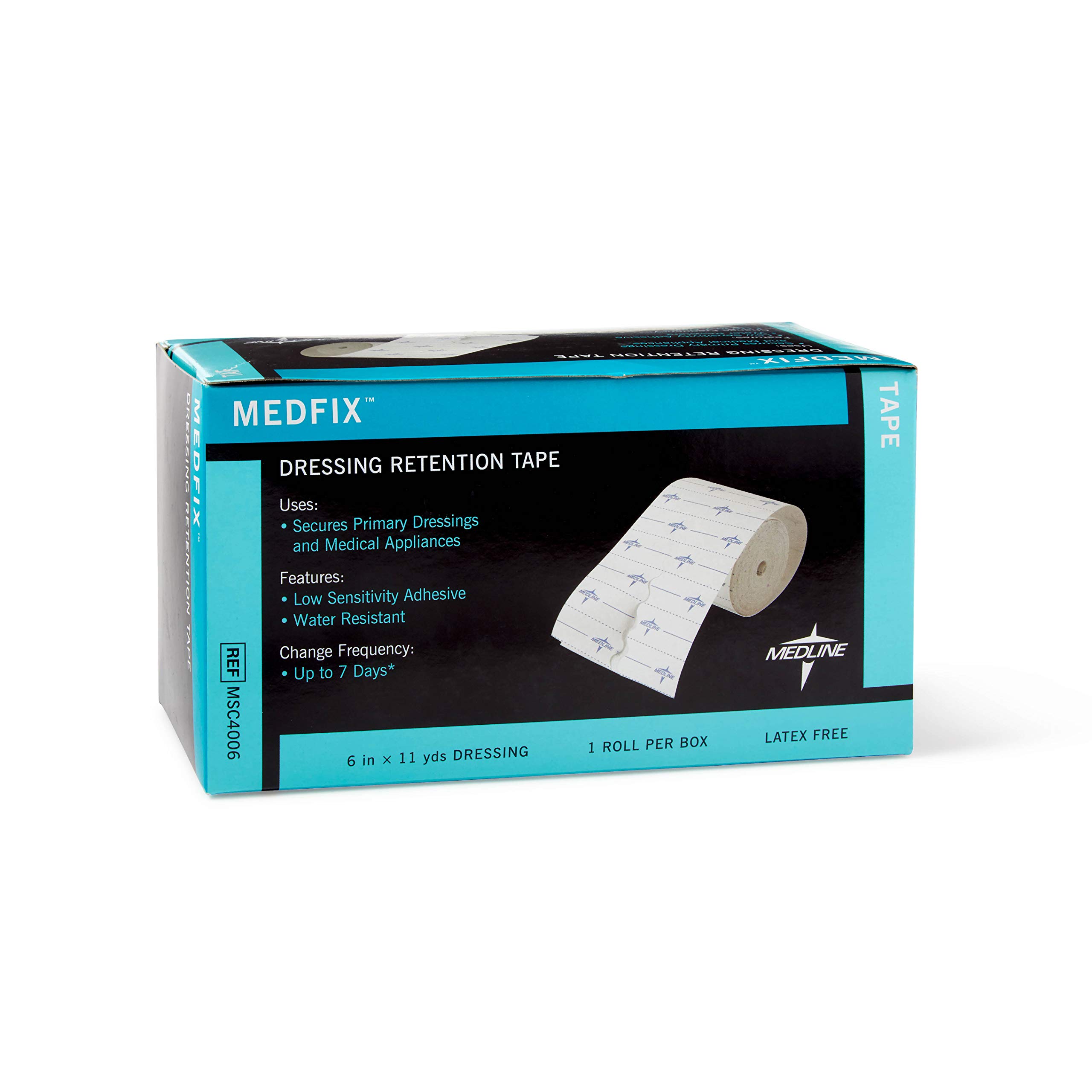 Product Description MedFix retention dressing tape secures primary dressings as well as gastrostomy tubes and other feeding tubes. Low sensitivity adhesive is gentle for the patient. May be left in place for up to 7 days. Dressing change frequency will depend on amount of drainage. Manufacturer Contact Information 800-633-5463
