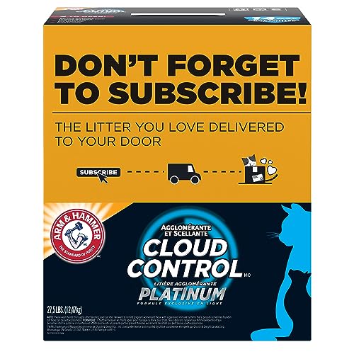 ARM & HAMMER Cloud Control Platinum Clumping Cat Litter controls the cloud of nasties so what happens in the litter box stays in the litter box. ARM & HAMMER Cloud Control Platinum features Dander Shield Technology to help reduce airborne dander when scooping this clumping cat litter, with a hypoallergenic light scent that excludes 26 known scent allergens based on Annex III of EU Cosmetic Regulation 1223/2009. Plus, the Platinum formula has 10% more odor eliminators than our regular version. For 14 days of odor control, guaranteed. The cat litter odor eliminators ensures urine and feces odors are sealed and destroyed. Powerful odor eliminators and ARM & HAMMER Baking Soda work together in this best cat litter to keep litter box odors under control. Perfect for multi cat litter needs, it's an effective arm and hammer cat litter deodorizer and essential for pet care & grooming.