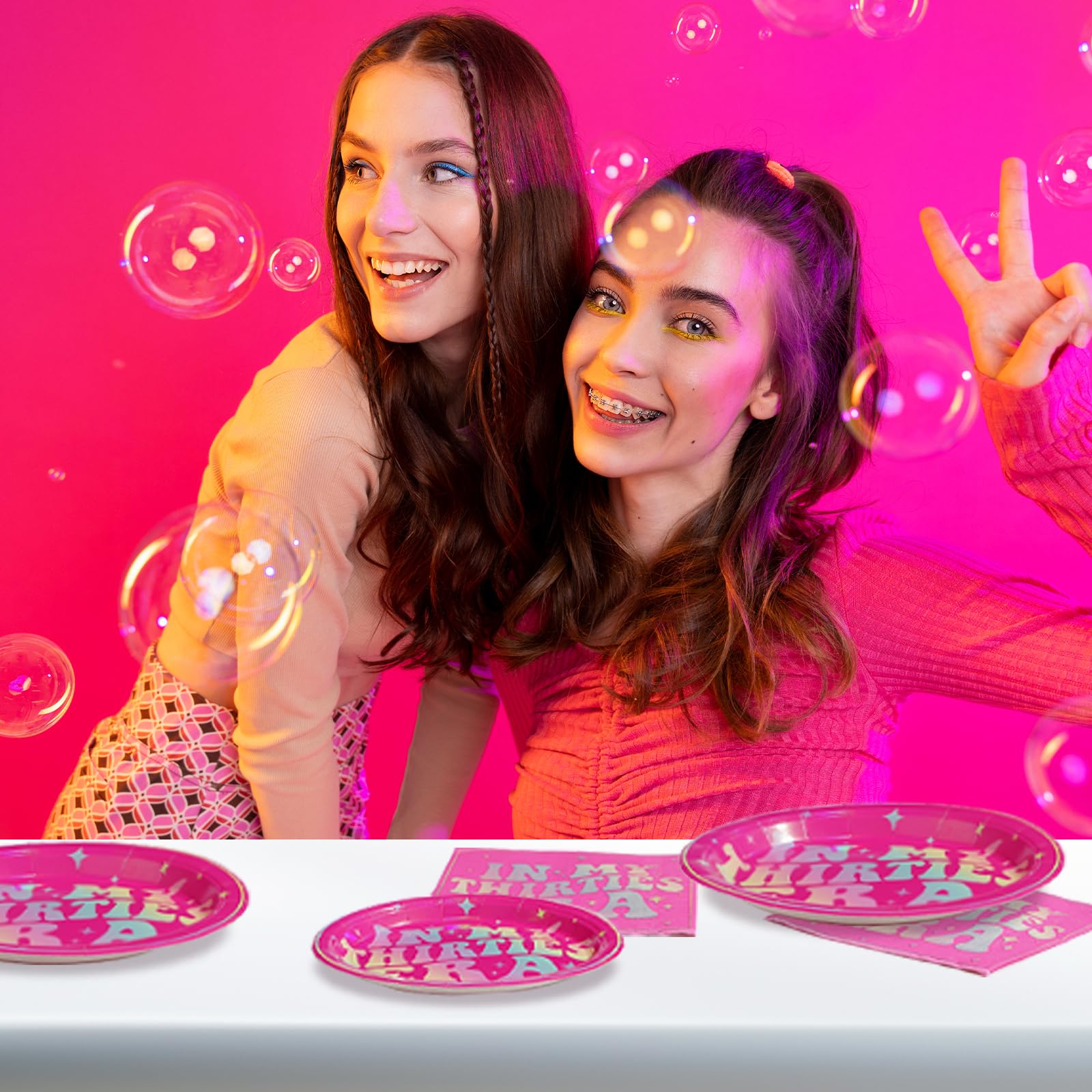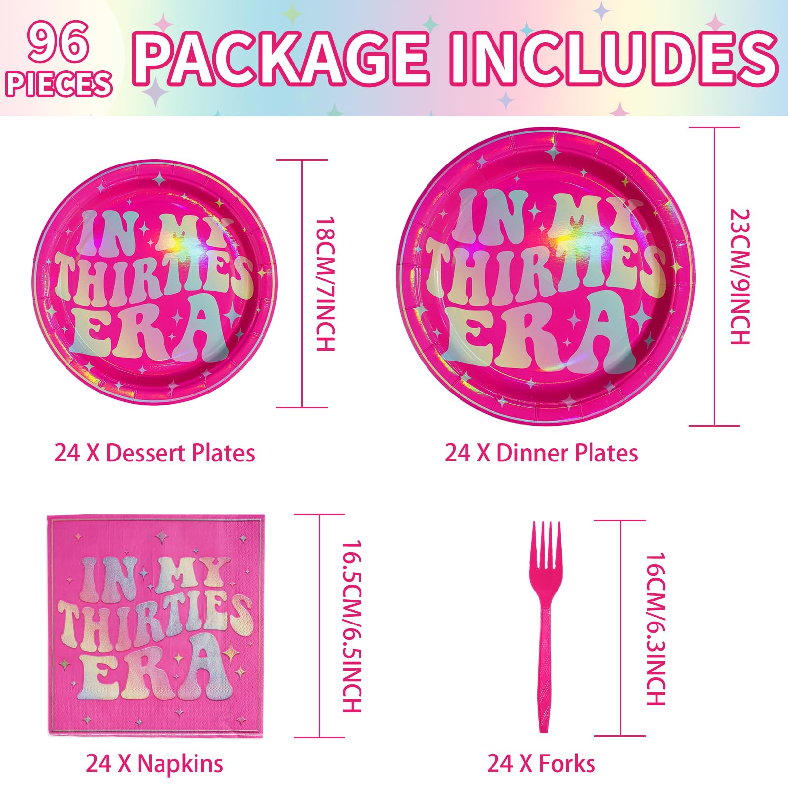 In My Thirties Era Birthday Decorations: Girl's thirties birthday decorations tableware set can serve 24 guests, includes 24*9 inches plates, 24*7inches paper plates, 24 forks and 24 napkins. Make your party more interesting and more attractive
