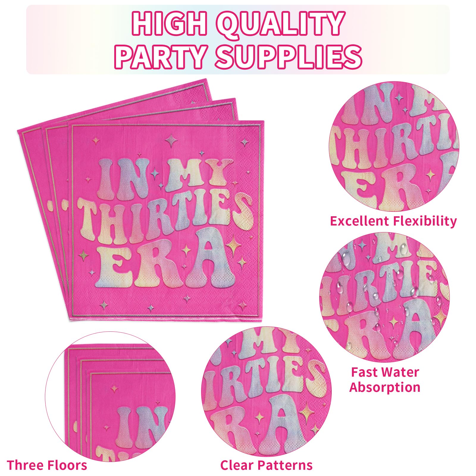 Reliable material: Our thirties birthday tableware set are sturdy, upgraded 350g weight is more sturdy and not easy to bend, and napkins are made of quality paper, no smell and well-printed. (Tips: Please do not microwave these products.)
