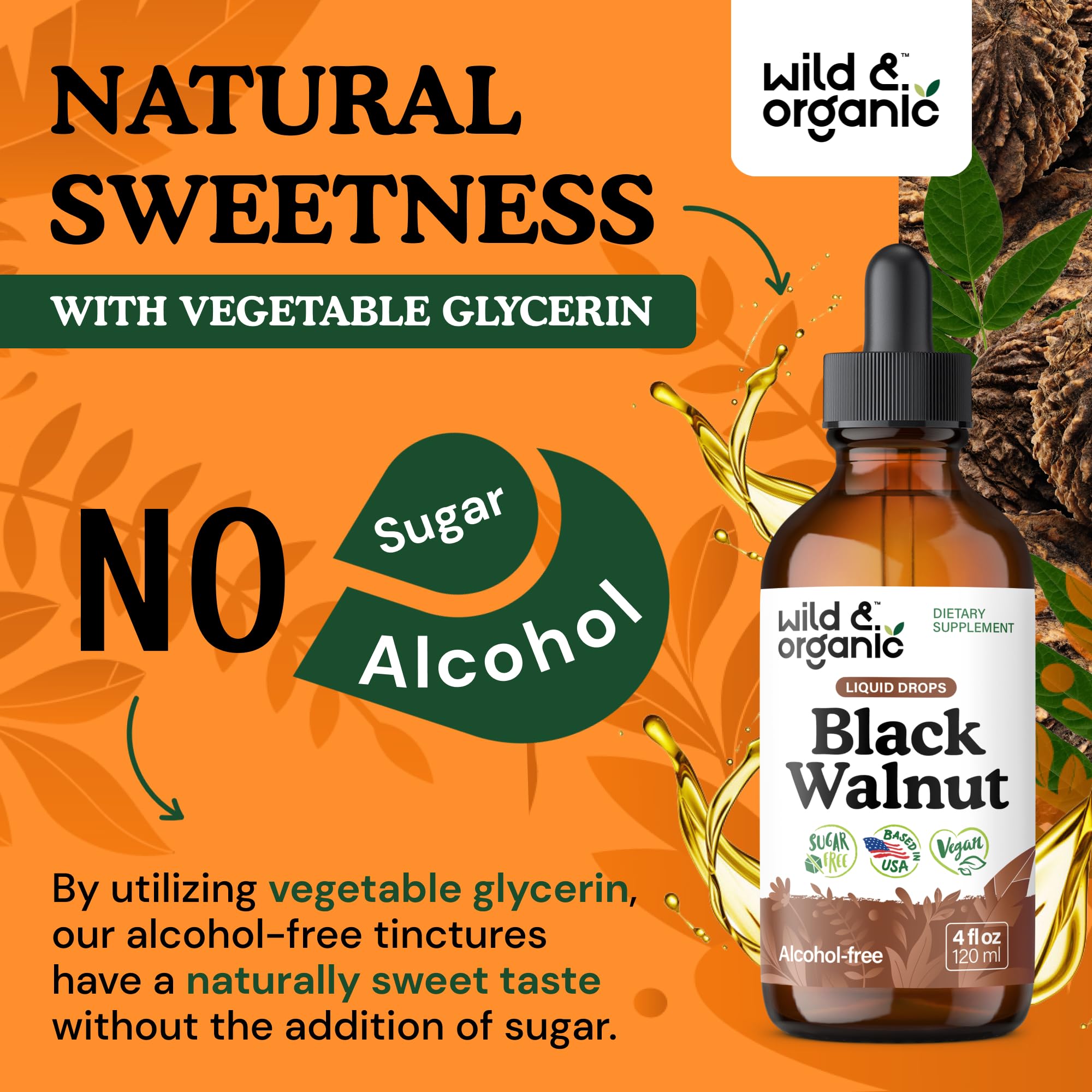 Sweetness Without Sugar: Enjoy a pleasant supplement experience with Wild & Organic black walnut extract, which features a naturally sweet taste. Our detox drops with black walnut hull powder use glycerin for natural sweetness, with no added sugar.