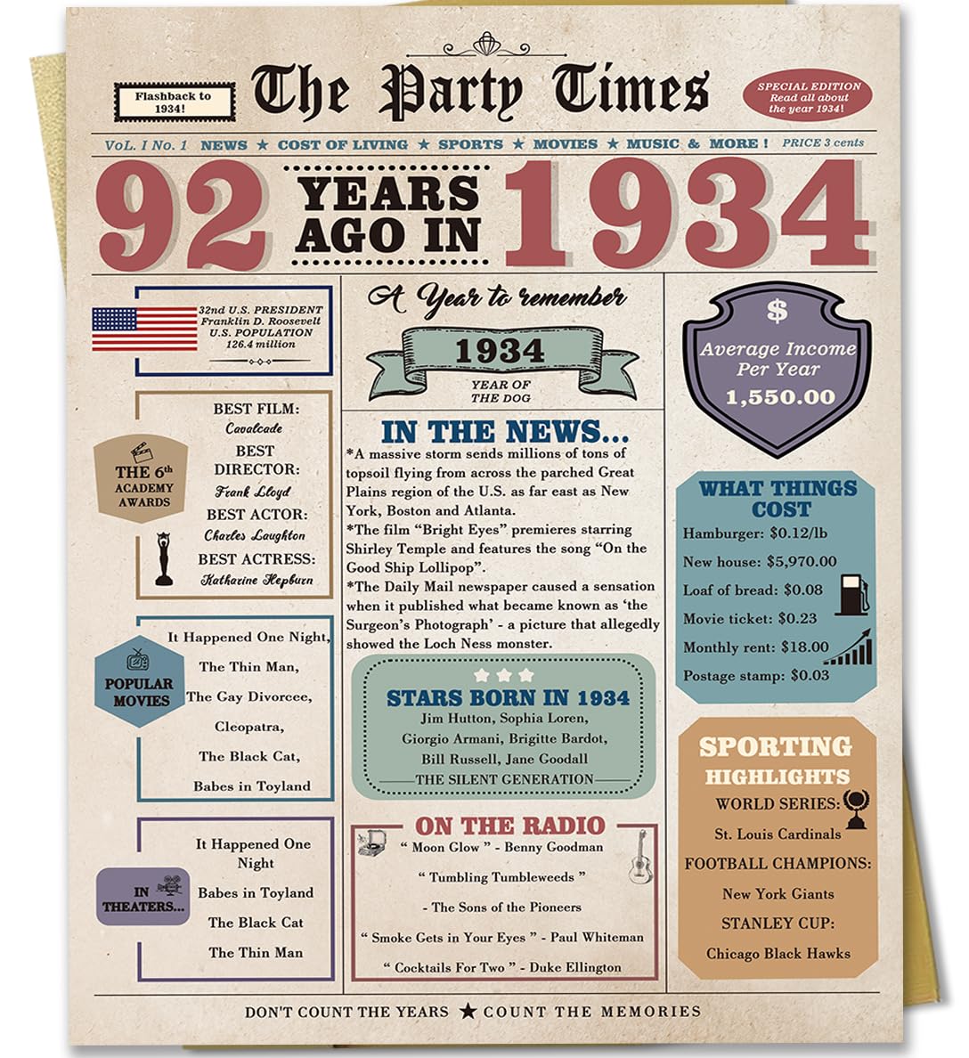 【Product Features】The 92 bday card is printed on high quality, smooth, heavy cardboard