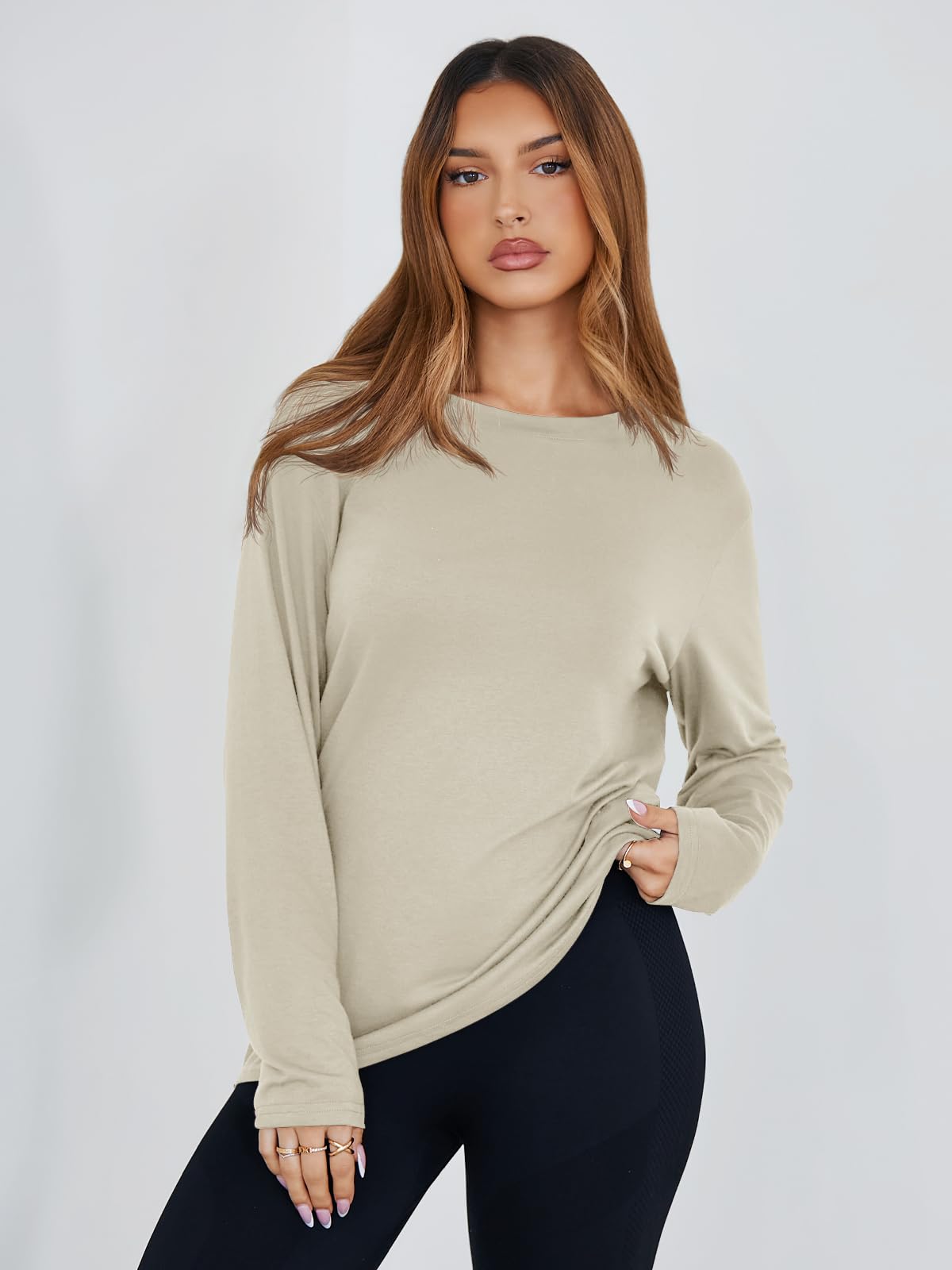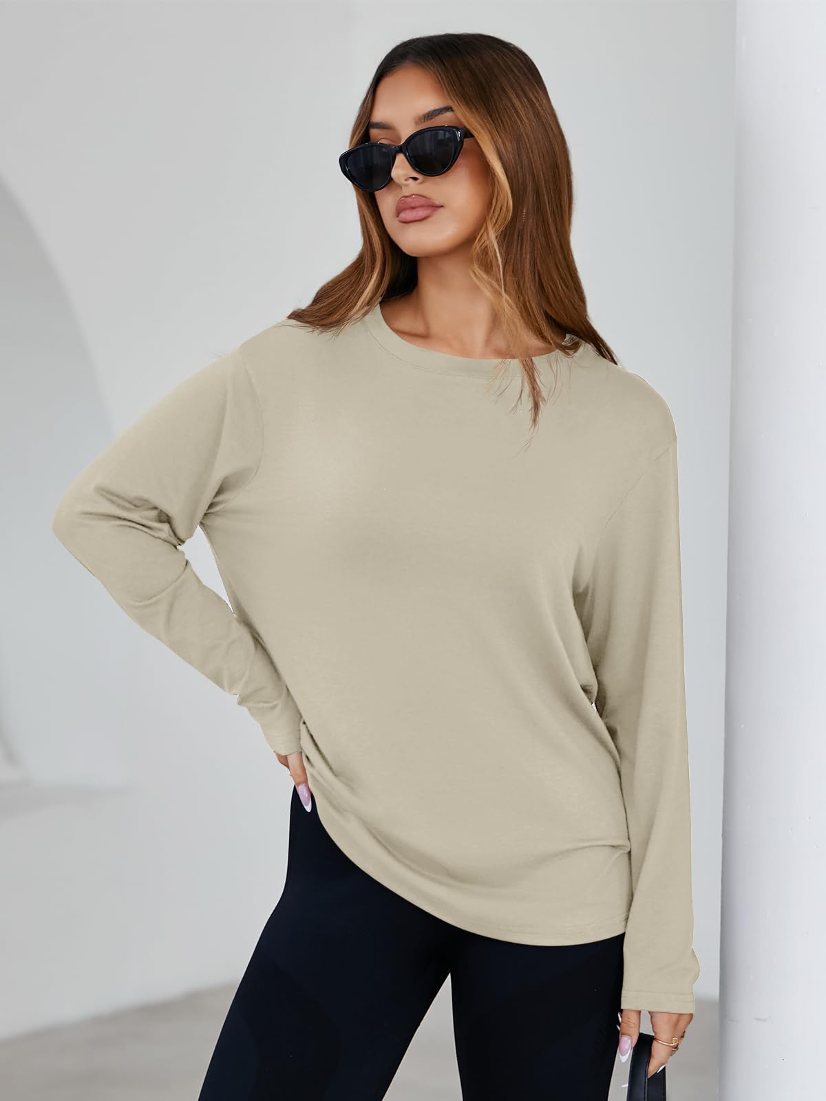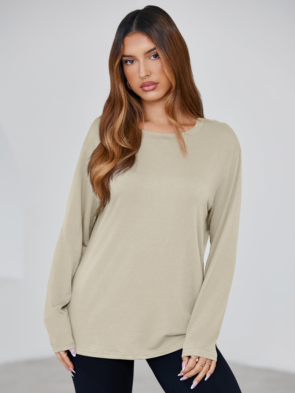 Basic Design: This oversized tee tops features a long sleeve, classic crewneck, drop shoulders, solid colors, and a loose fit for a relaxed yet trendy silhouette. The minimal design nods to Y2K fashion while offering a timeless, casual vibe that's easy to style for any day