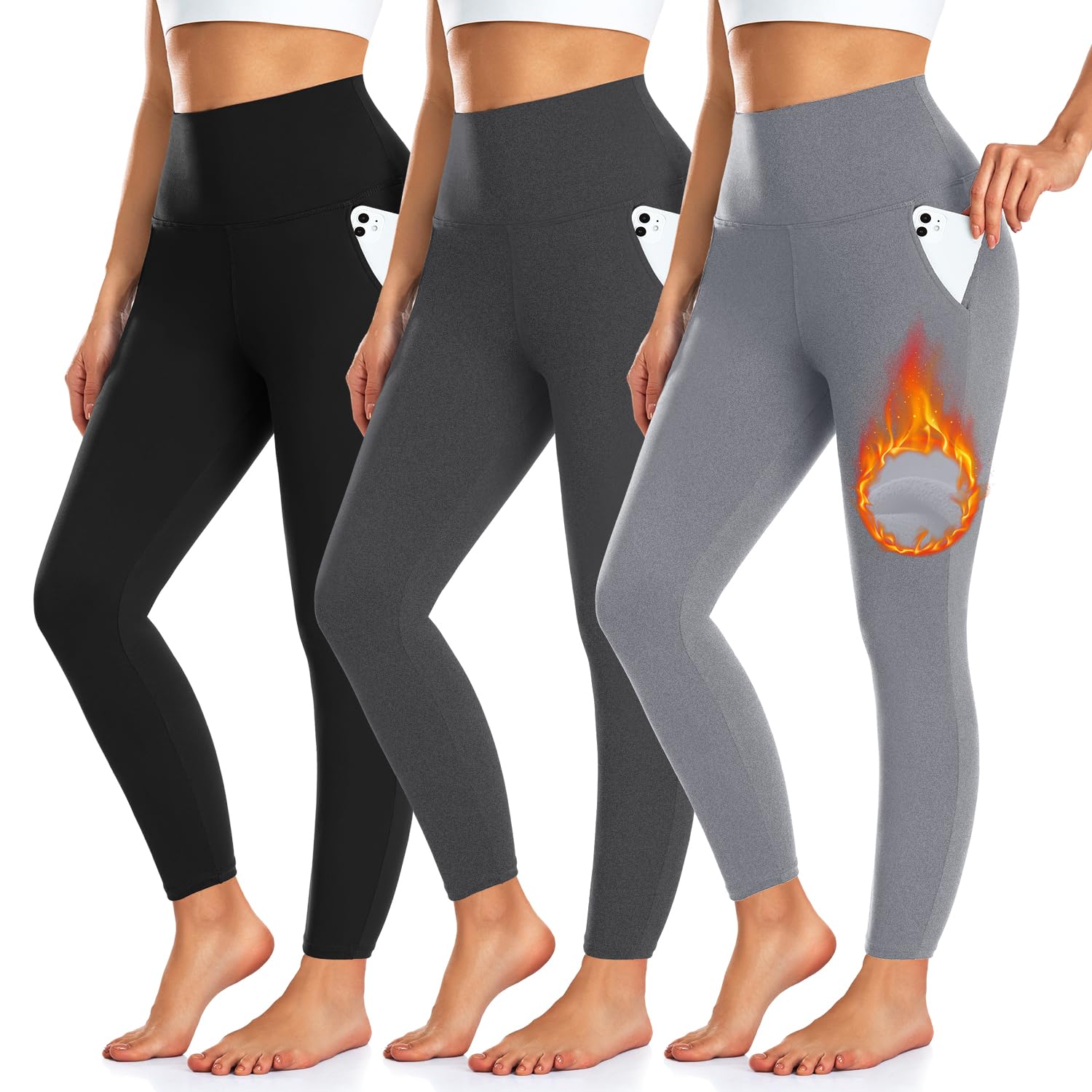 2 OUTER POCKETS - WE FLEECE LEGGINGS have upgraded the crafting of pockets that can reduce the deformation, without wrinkles and stick out.Front pockets do not move and are very flat,even if you put something in your pocket, it won’t look bloated and your pocket won’t sink. womens workout leggings have two large front pockets for your cell phone,credit cards, keys and coin purse.