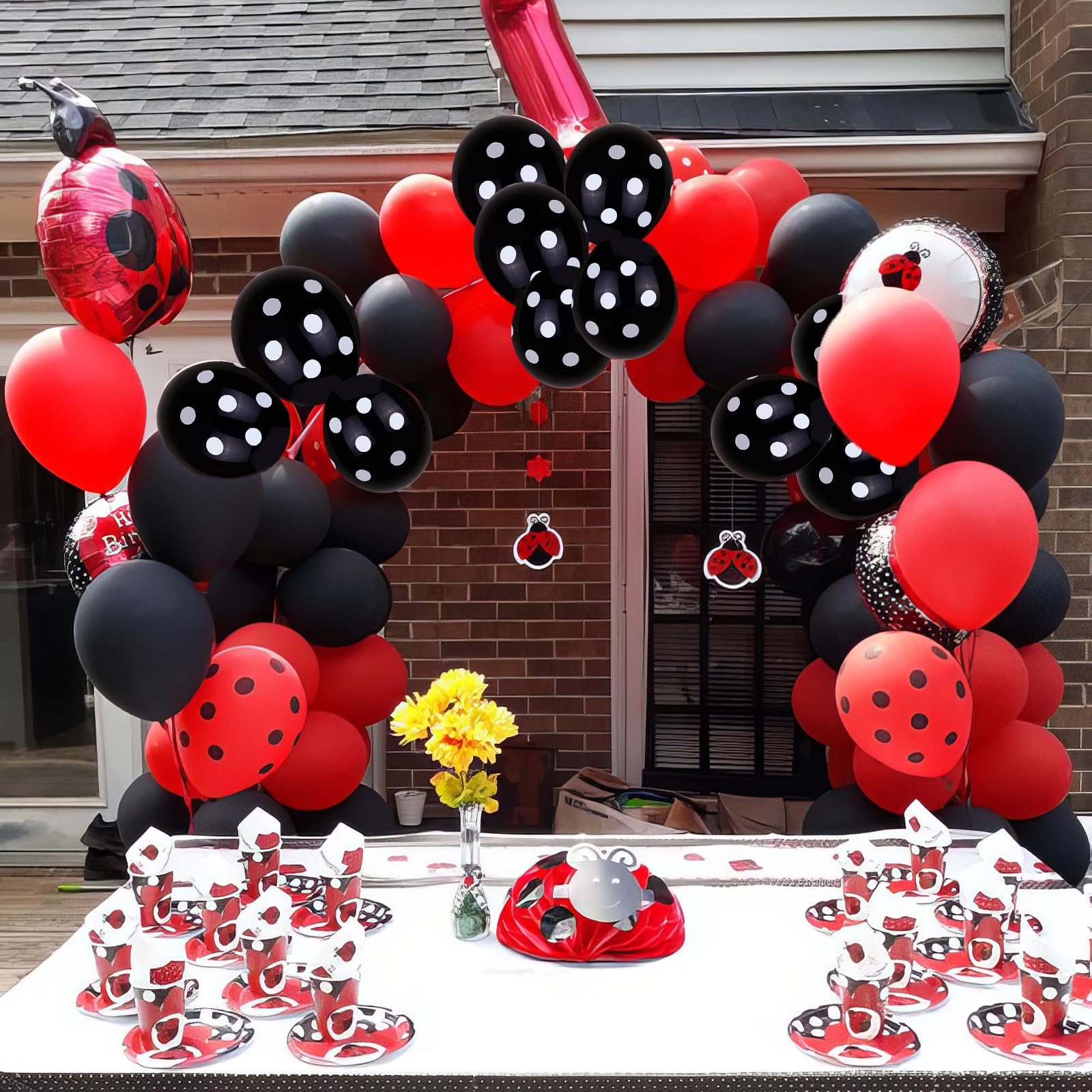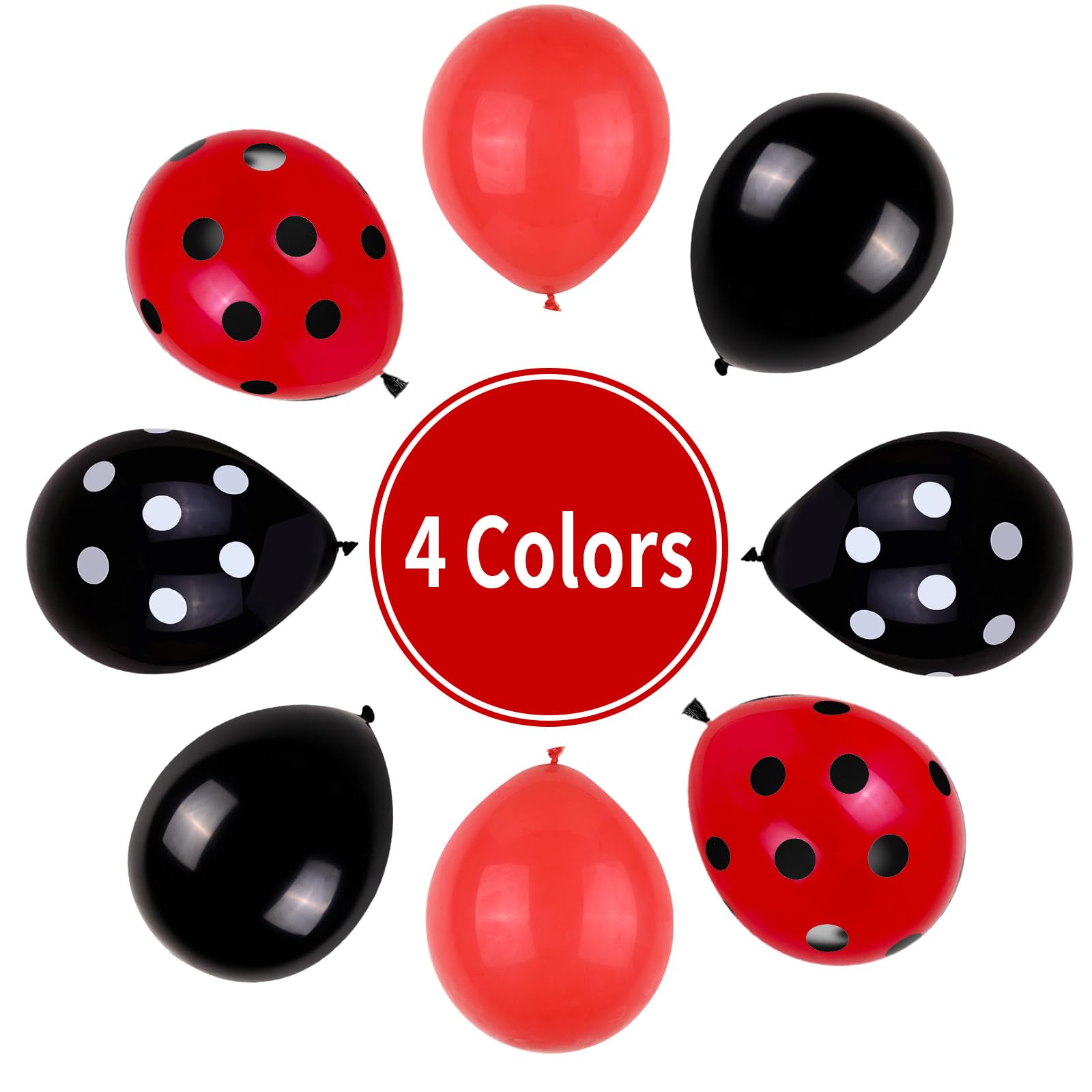【12Inch Party Balloons Set】: The ladybug balloons set includes 20pcs matte red balloons, 20pcs matte black balloons, 10pcs red black polka dot balloons, 10pcs black white polka dot balloons, 1pc silver ribbon. 61pcs in total. Elevate your celebrations with our birthday party balloons!