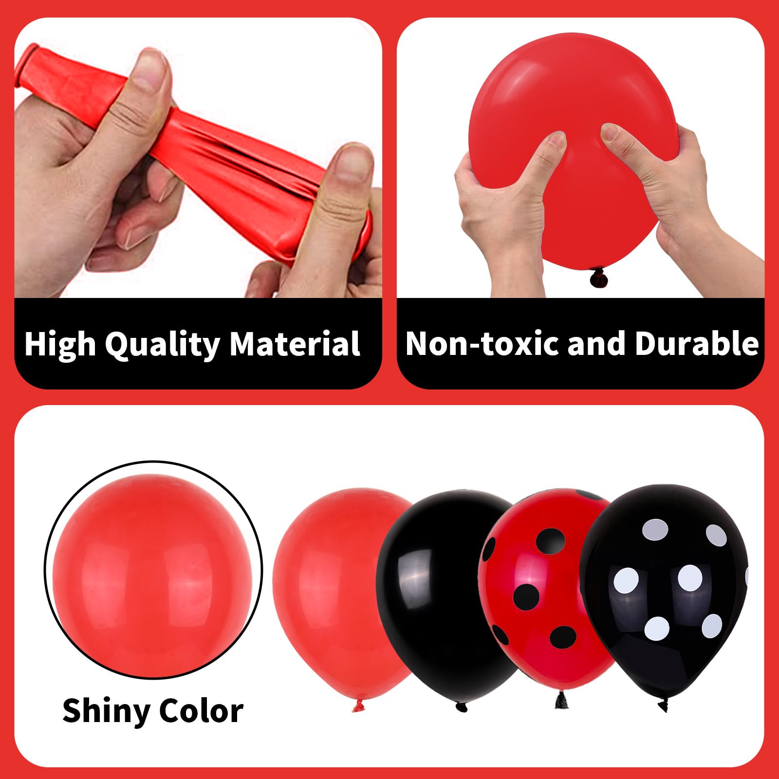 【Versatile Applications】: These red and black balloons offer multi-functional applications, suitable for kids adults birthday, ladybug theme party, wedding, graduation, red and black theme party decorations, baby shower, engagements, anniversary, bridal shower, and more. Our eye-catching balloons provide the good embellishment for every celebration.