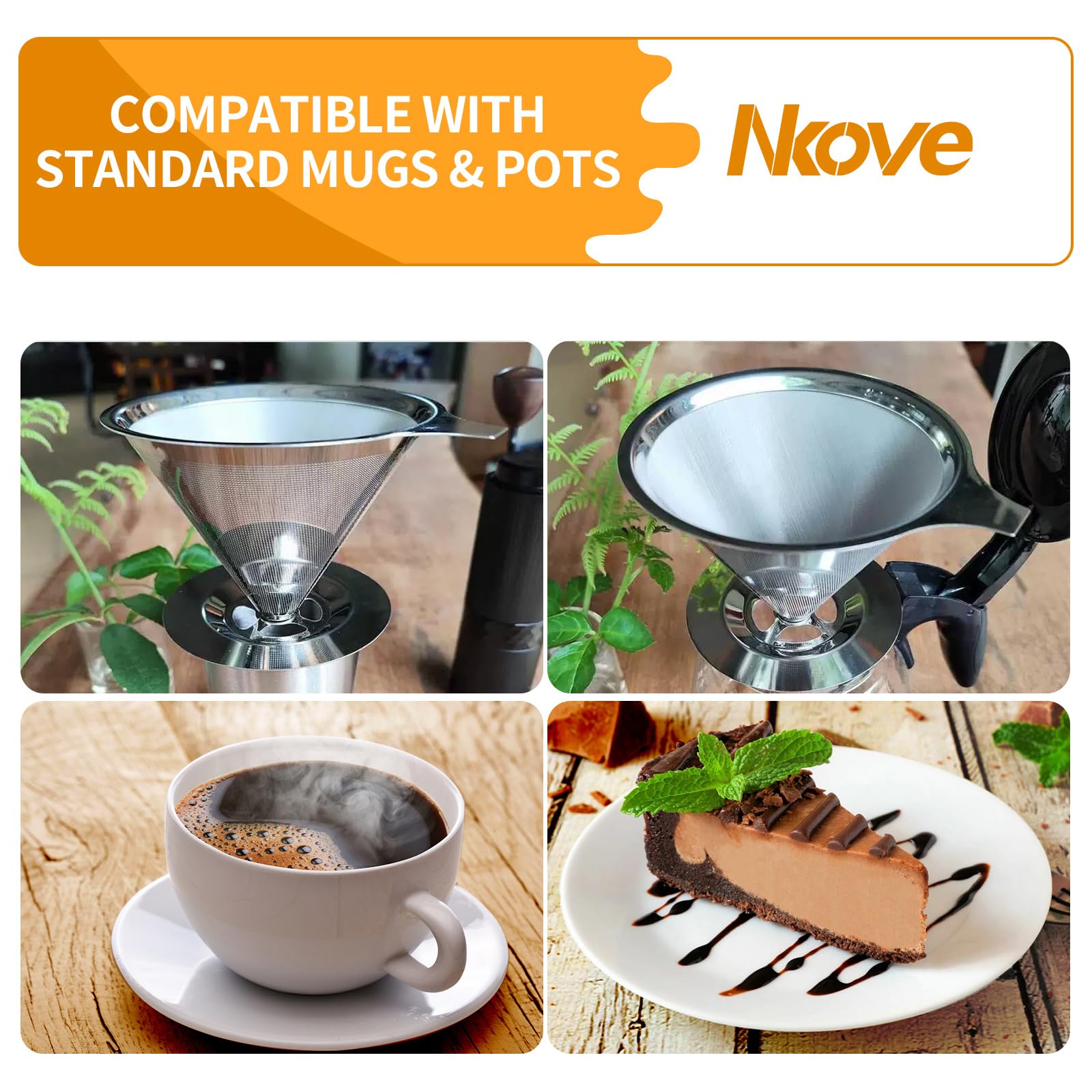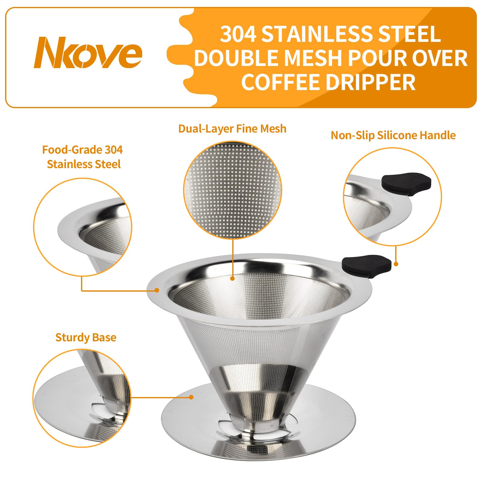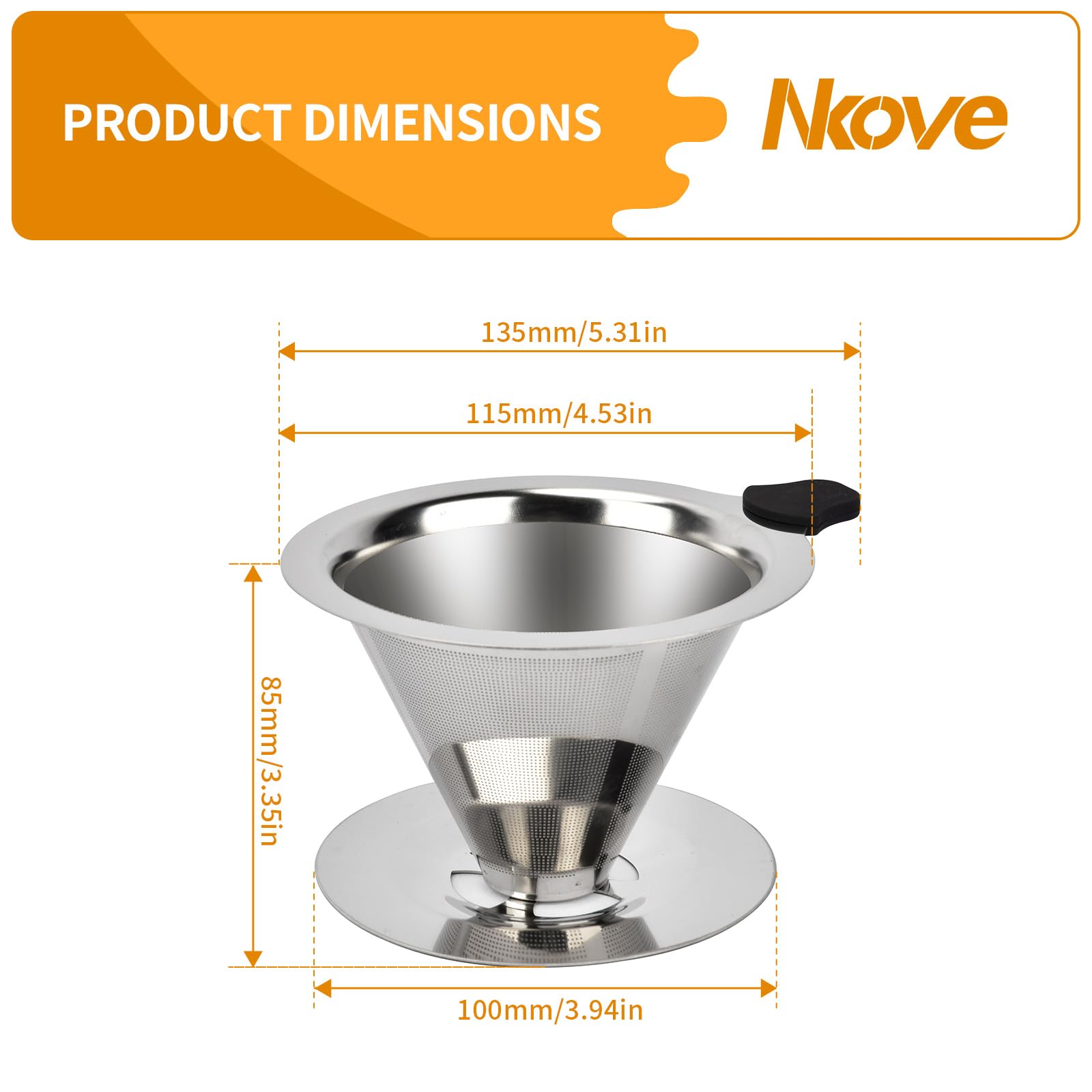 ✅Stable Base with Non-Slip Grips: Designed for safety and convenience, the NKOVE Pour Over Coffee Dripper features a wide 4-inch diameter base that fits perfectly on most cups and pots. The non-slip, anti-scald silicone grips ensure a stable brewing experience, preventing spills and accidents.