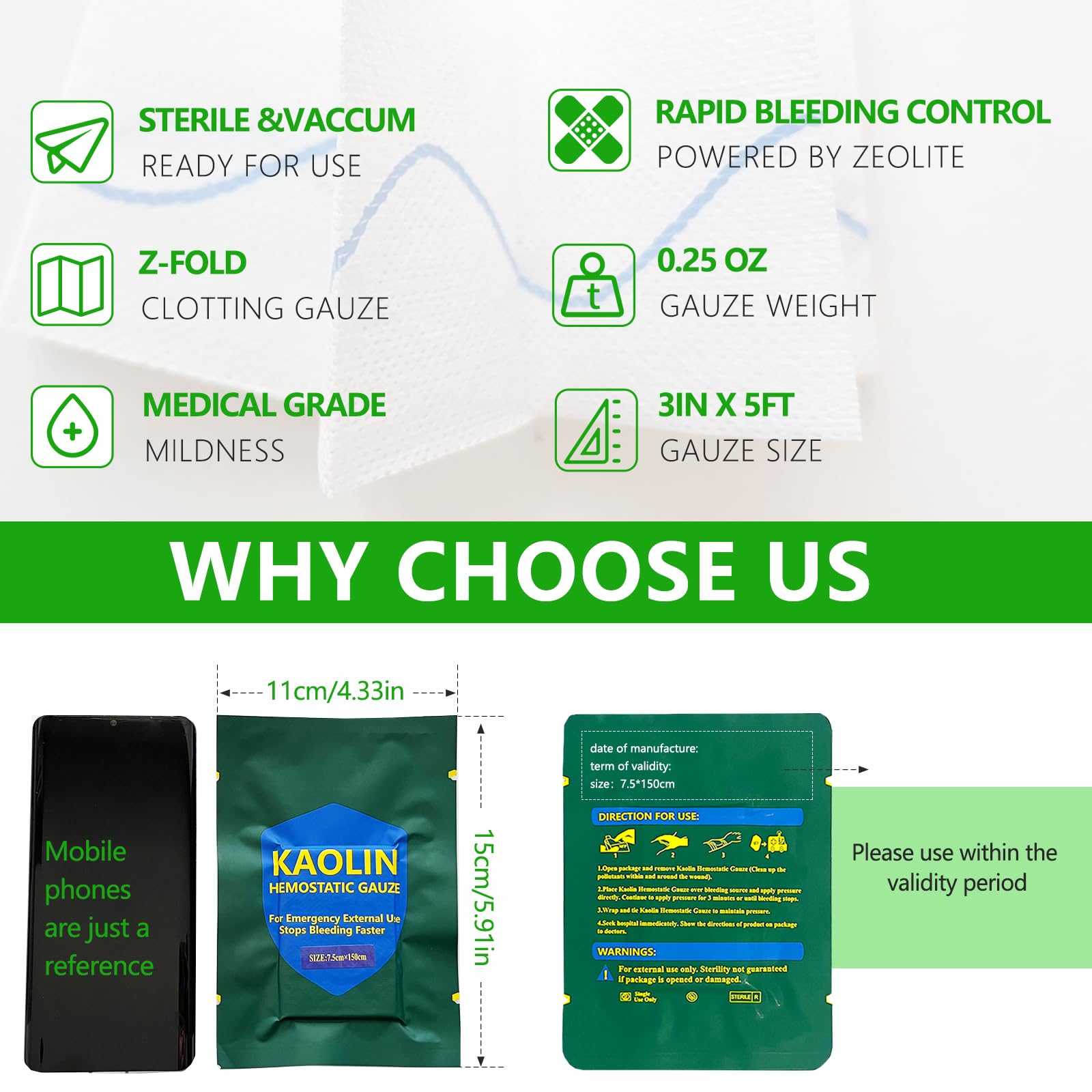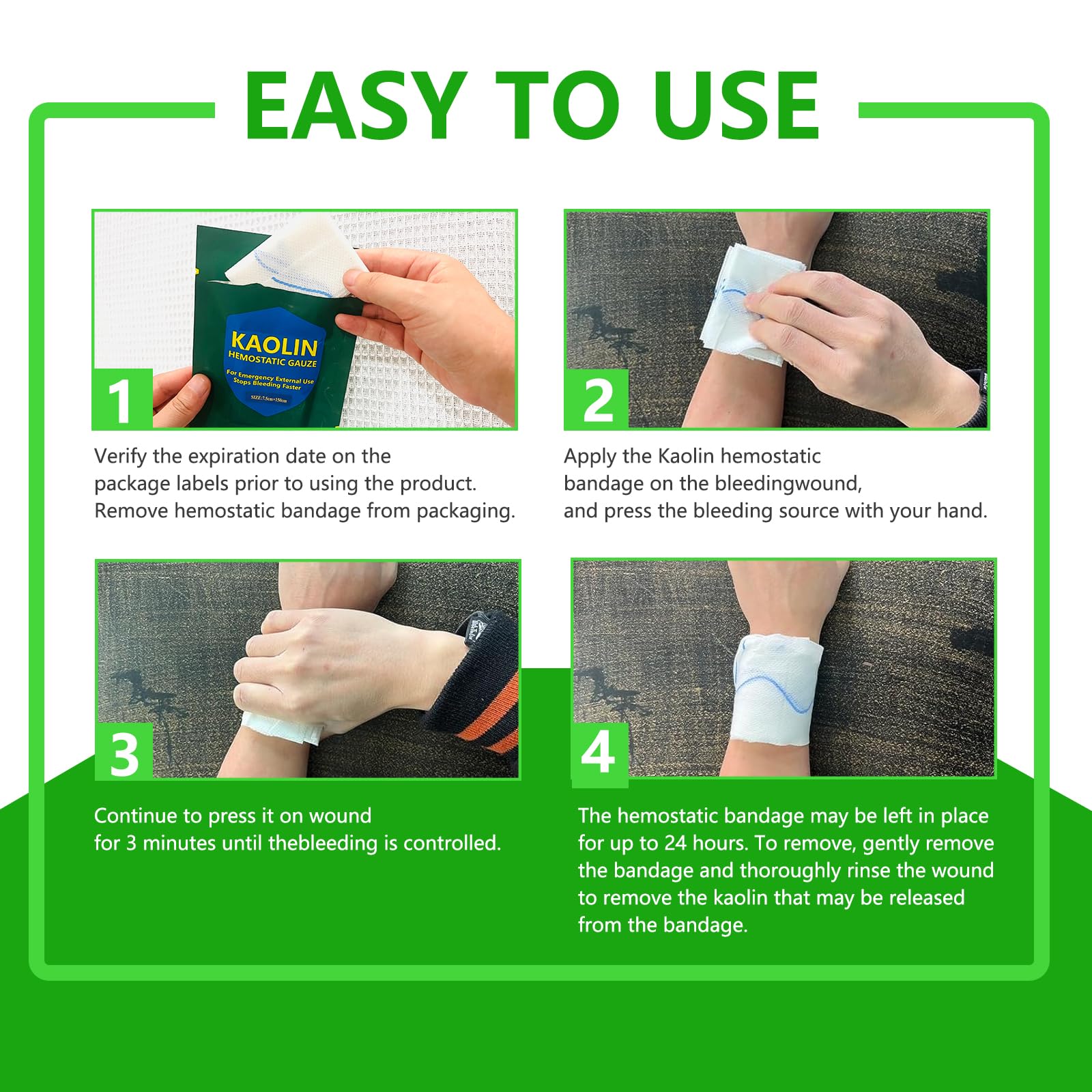 ⚡️【INSTANT BLEED STOP】 - Stops severe, life-threatening bleeding in seconds! Our advanced hemostatic gauze uses [Mention Your Specific Technology, e.g., Kaolin Mineral to rapidly accelerate the body's natural clotting process, forming a strong clot FAST. Essential for traumatic wounds, arterial bleeds, and uncontrollable hemorrhage.