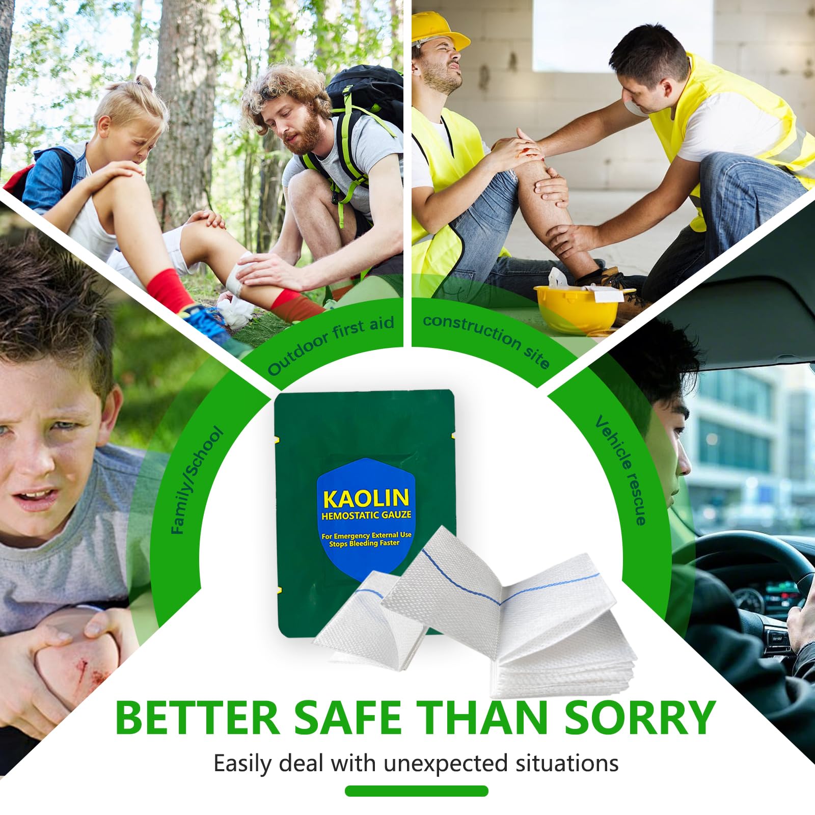 🧼【SAFE, STERILE & EASY TO USE】 - Ready when seconds count. Individually sterile packaged for immediate use on wounds. Simply open, pack the wound firmly, and apply pressure. No mixing or preparation needed. Safe for direct contact with tissue.