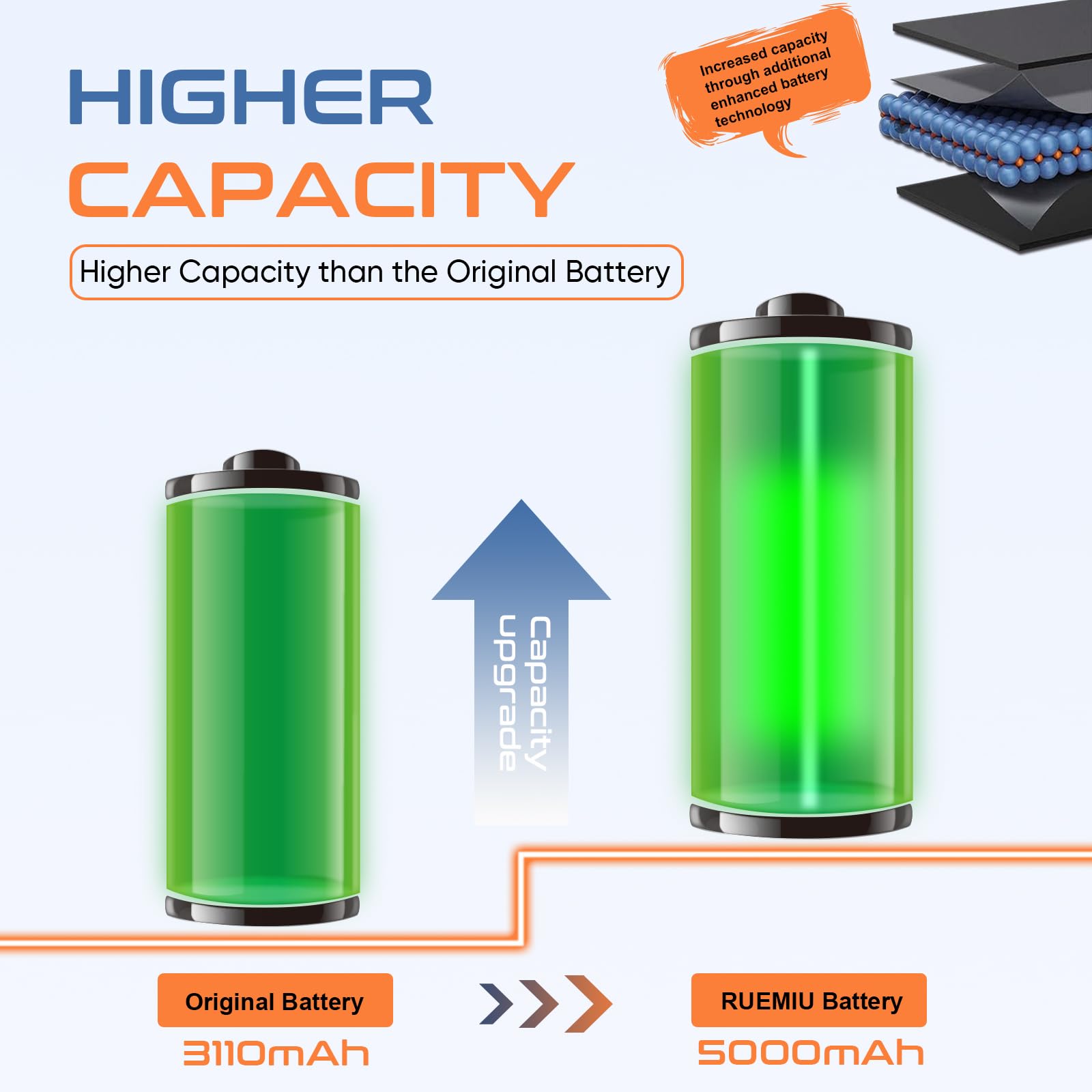 Durable Performance: Equipped with brand-new A+ grade cells and a 5000mAh capacity for efficient power use and long-lasting durability