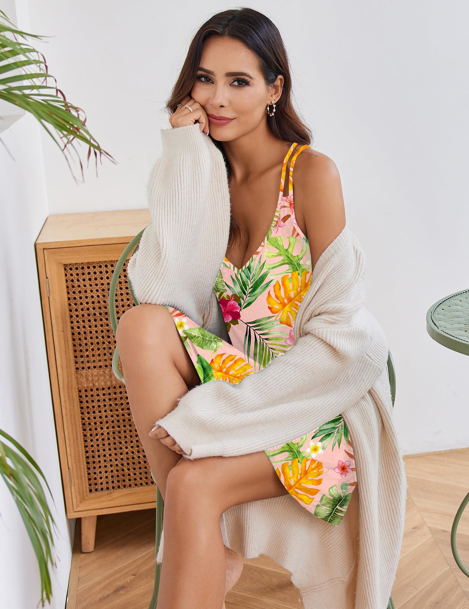 【Special Designs】 The sleepwear with regular A-line hem,v-neck and the special point is the double straps design the cross-line of back, free smart, charming and elegant.