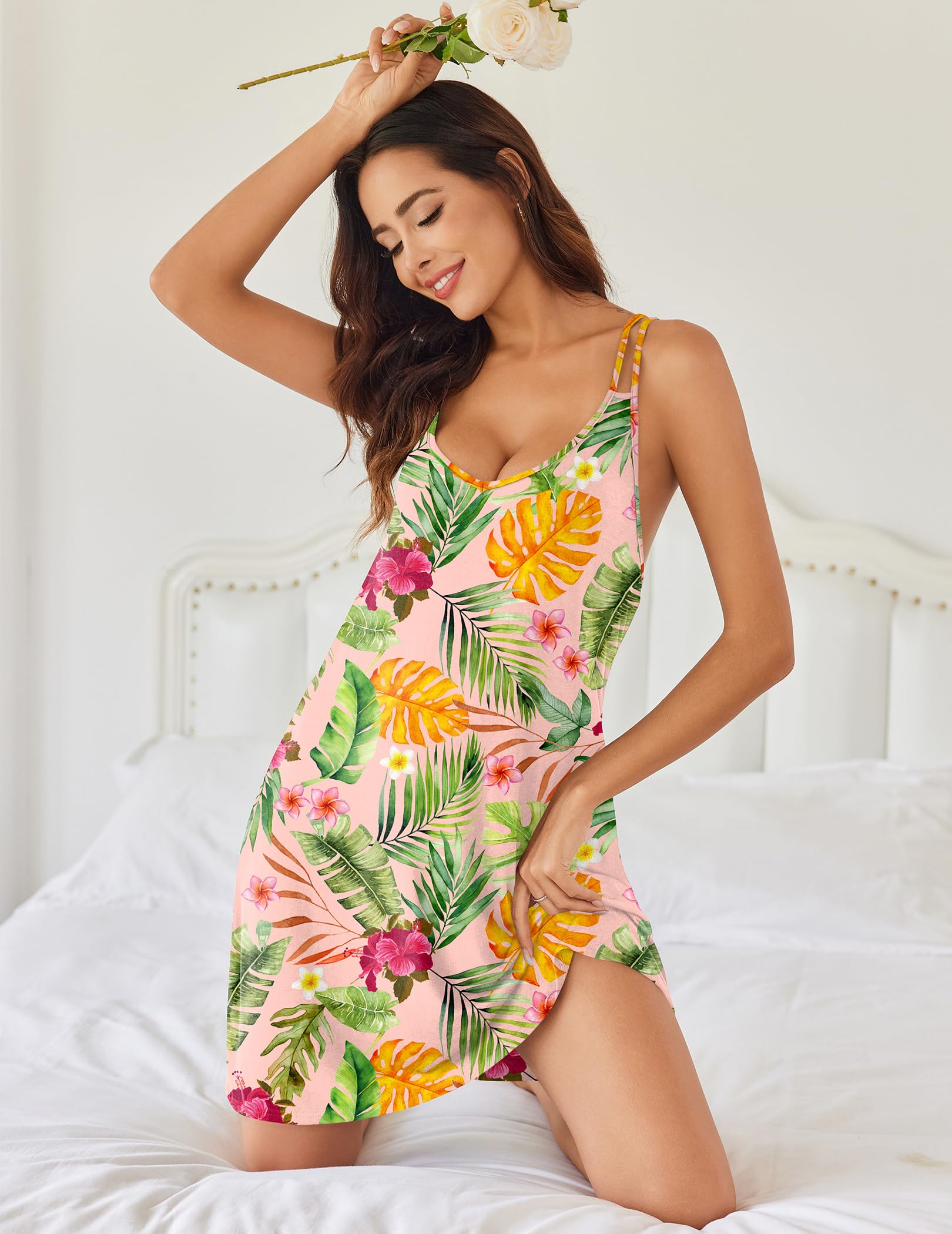 【Classic Women's Nightgown】Casual loose fitted and simple but fashion. Lightweight sleepshirt and women's pullover loungewear but the nightgown is stylish enough to bring out sensual delight. Multiple choices for you to choose the favorite. Racerback nightgown for women is soft to touch and allows comfortable and freely movement