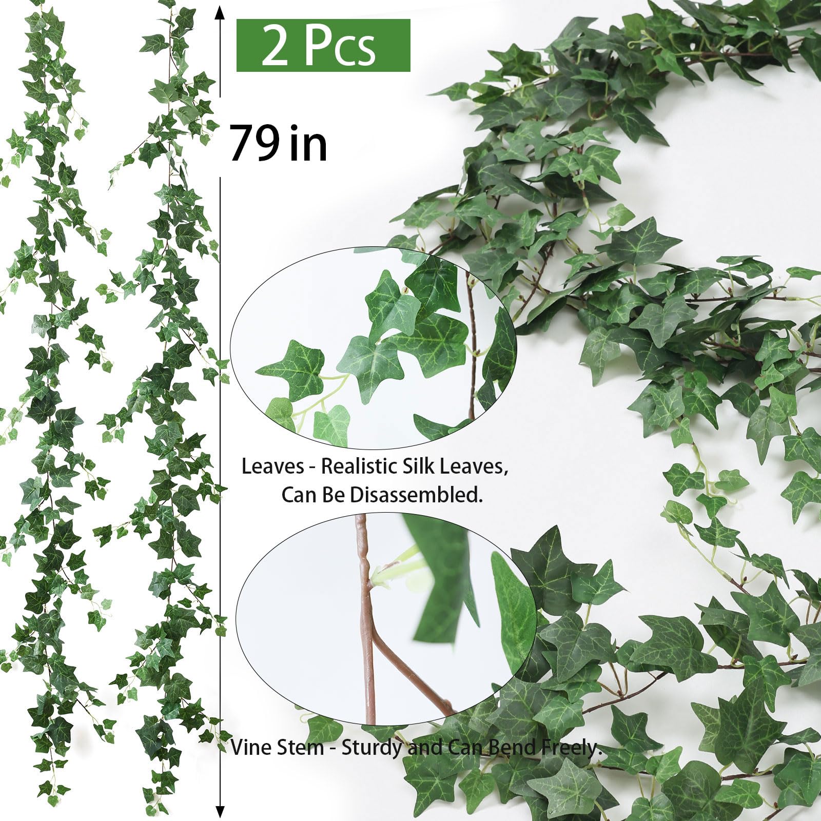 Vine Size - The packaging includes 2 bundles of artificial vines, each with a length of 79 inches. Each bundle of vines has 190 silk leaves, They have the same branching as real vines, which makes them look more realistic and full.
