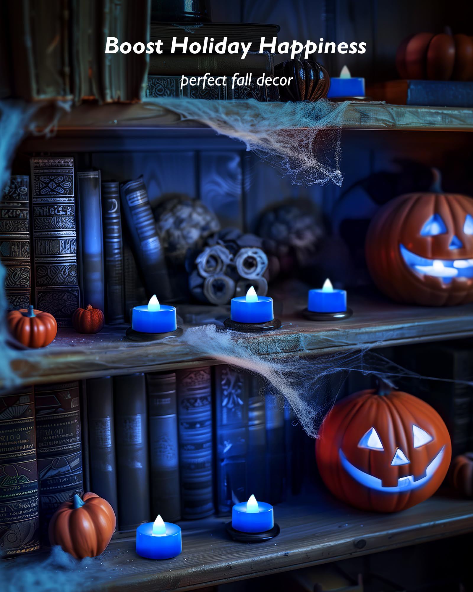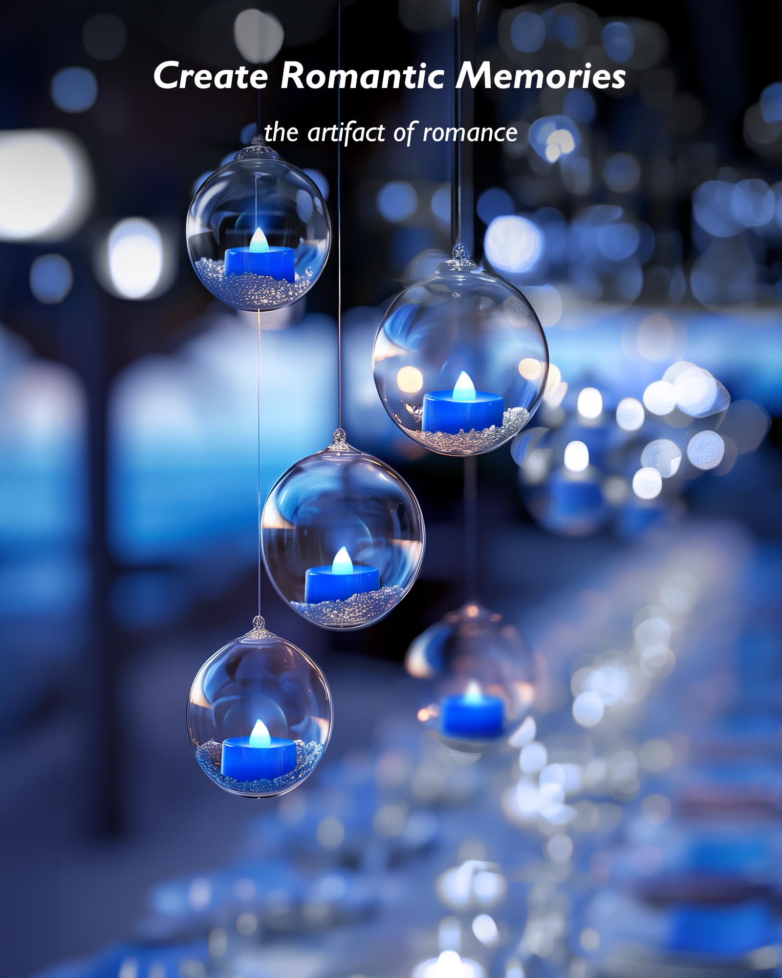 Create Atmosphere: Create a magical atmosphere with our blue flameless candles! The charming tea lights add a touch of mystery to your party or holiday gathering. Enjoy the realistic wax-like appearance and feel that will leave you amazed
