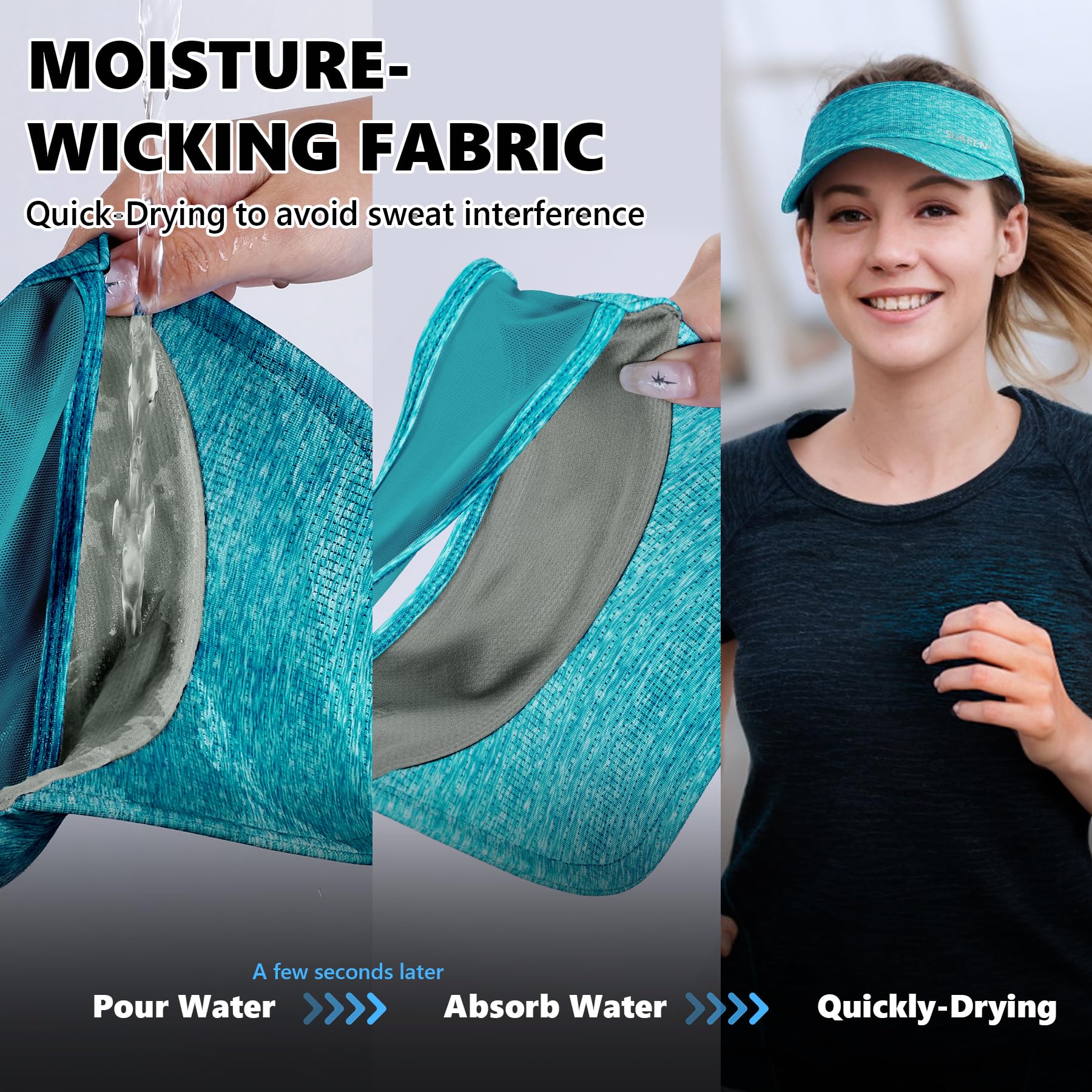 QUICK-DRYING & SWEAT-ABSORBING: This visor is designed to provide quick drying during the summer. The built-in sweatband is made of quick-drying fabric, which can quickly absorb sweat, guide moisture to the outer layer to keep you cool and dry even during intense workouts or hot summer days.