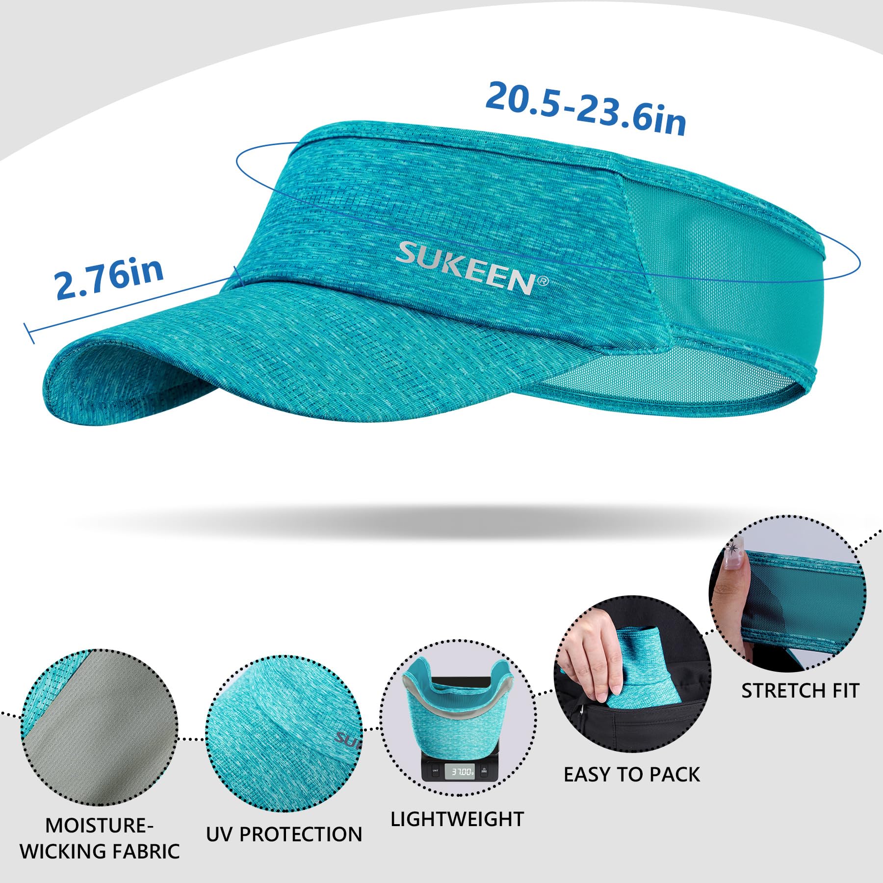 STRETCH FIT & BREATHABLE: Designed with a stretchy fabric band, the Sukeen Sports Sun Visor offers a comfortable and secure fit, with a head circumference range of 20.5-23.6in (52-60cm). The mesh design of the fabric band promotes breathability, allowing for better airflow and ventilation.