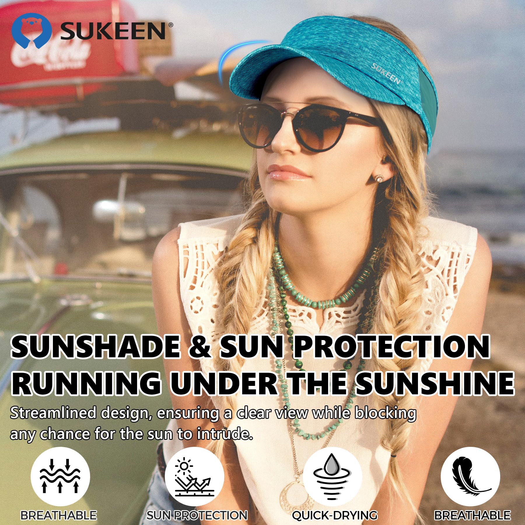 WIDELY USE & HIGH QUALITY: The Sukeen Sports Visor is suitable for a wide range of activities, including running, hiking, fishing, golf, tennis, baseball, softball, and pickleball. It is machine washable, reusable, and features a chemical-free cooling fabric technology that will never wash off. With optimal visibility and sun protection, this lightweight cooling visor allows you to focus on your activities without any distractions.