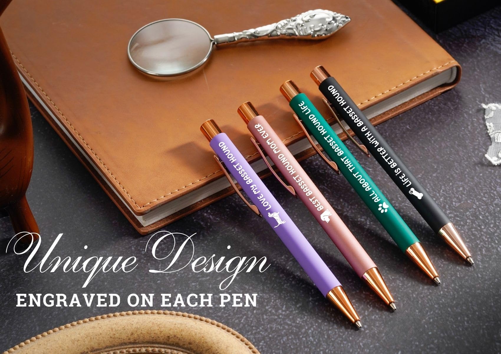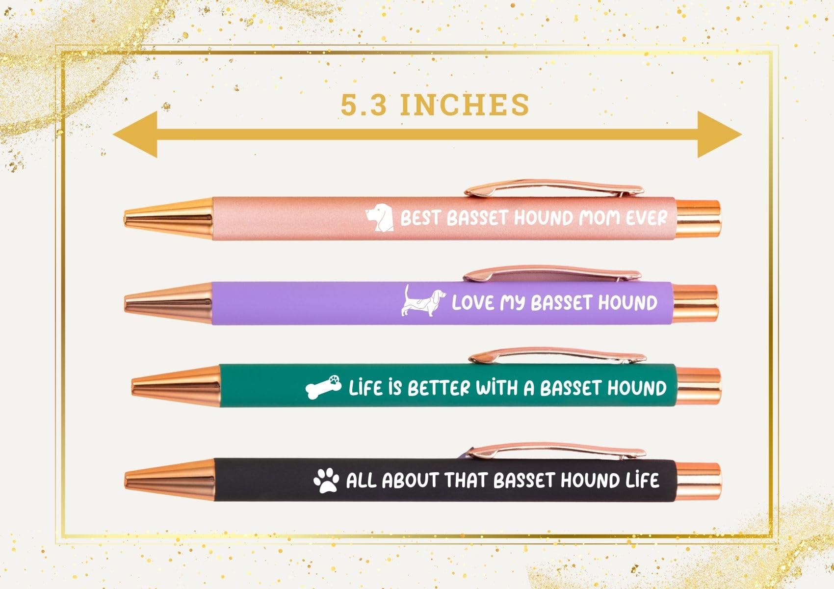 Dog Mom Gifts, Dog Lover Gifts for Women, Ballpoint Pen Set of 4, Gifts for Dog Mom for Mother's Day, Christmas, Birthday - Basset Hound Mom