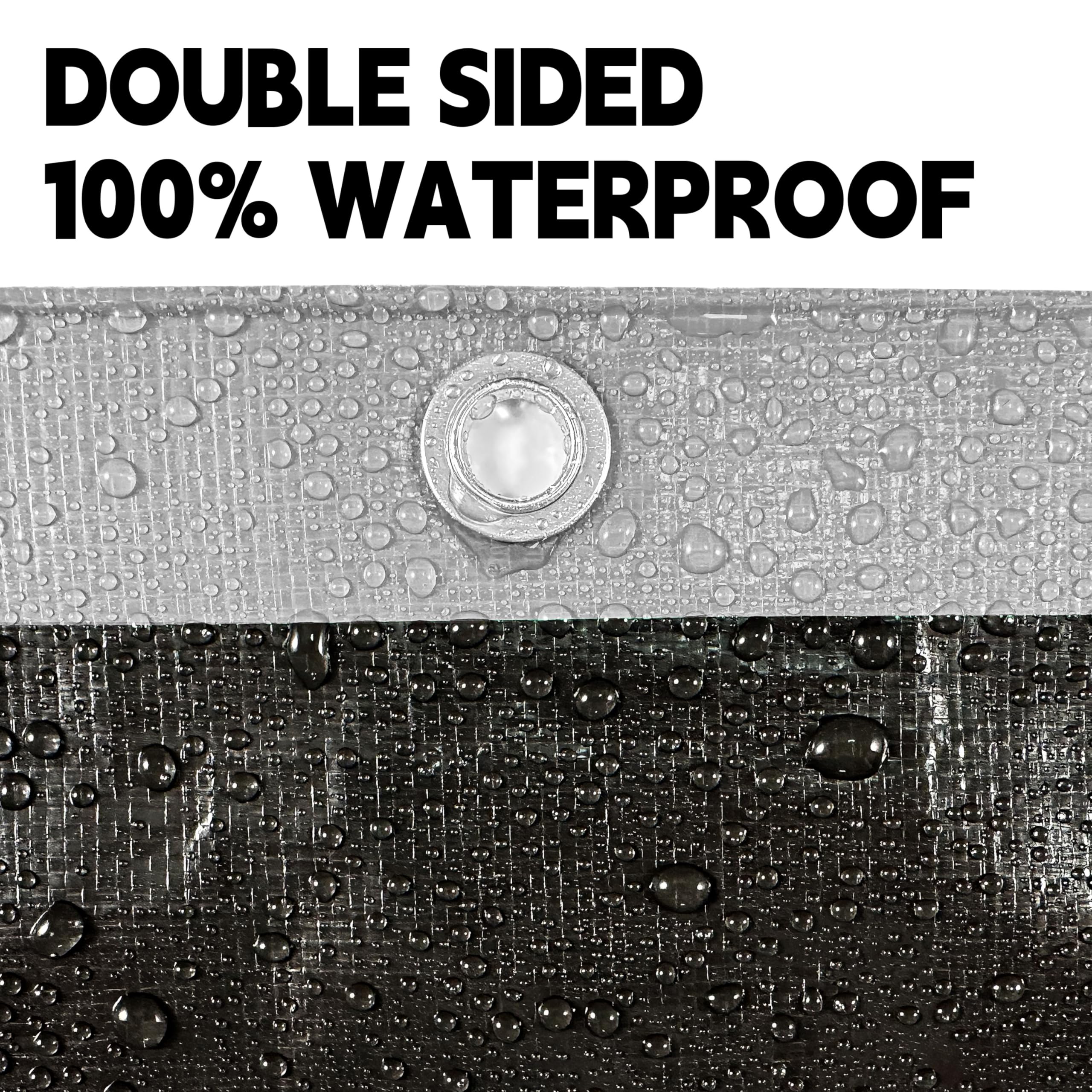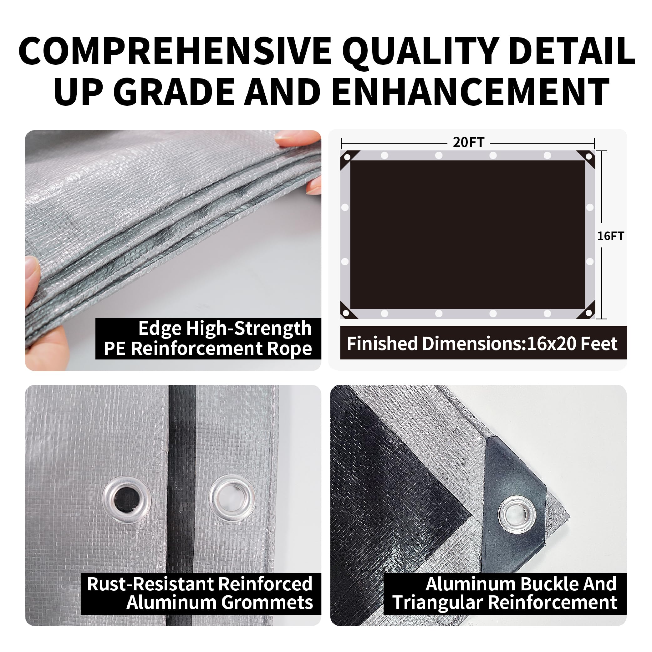 Quality: Made of high quality polyethylene, double-sided coating, can withstand extreme weather damage and can be folded at will, 10mil heavy duty tarp, this silver&black waterproof tarps weave number of 12x12, strong durability, tear resistance, easy to damage, smooth surface easy to clean